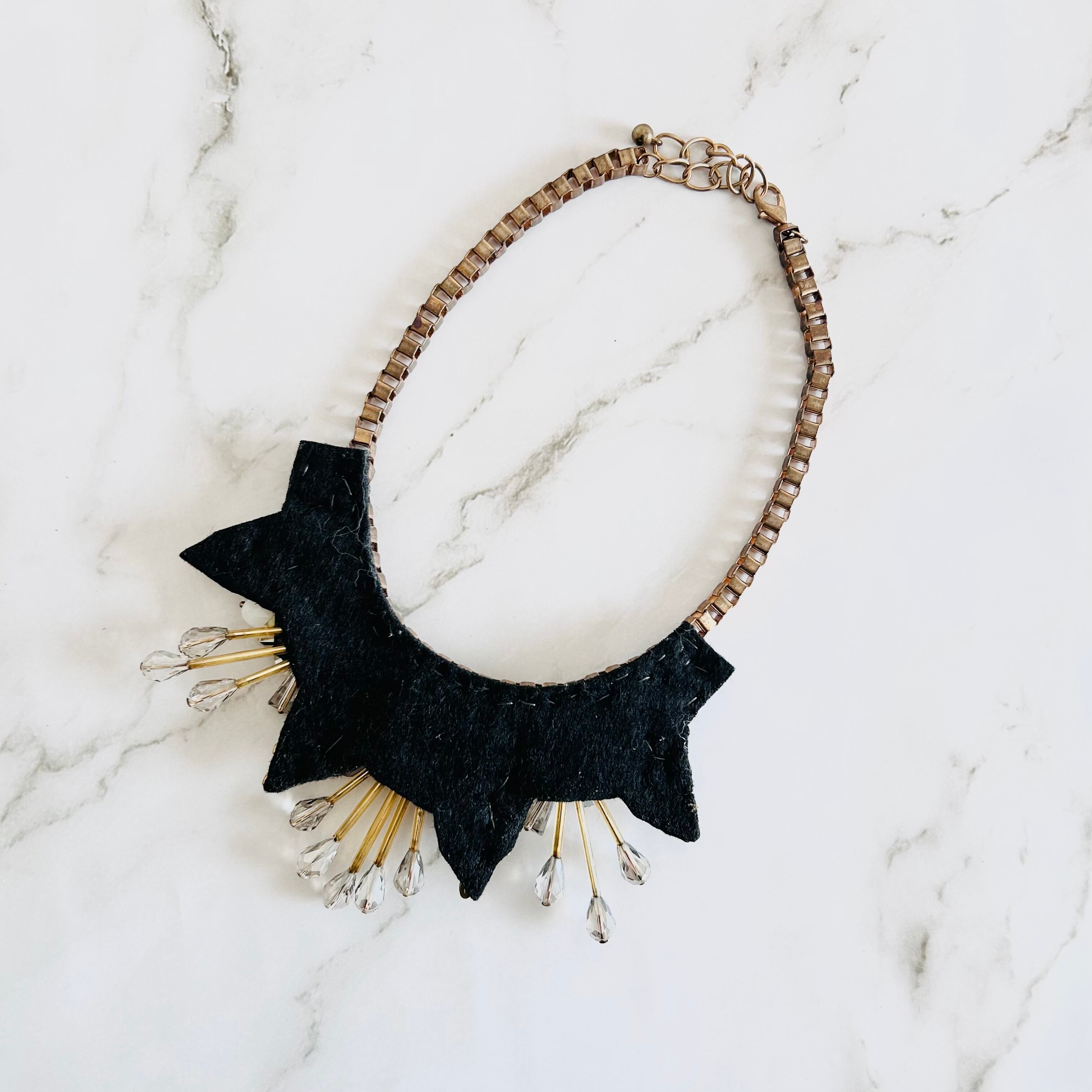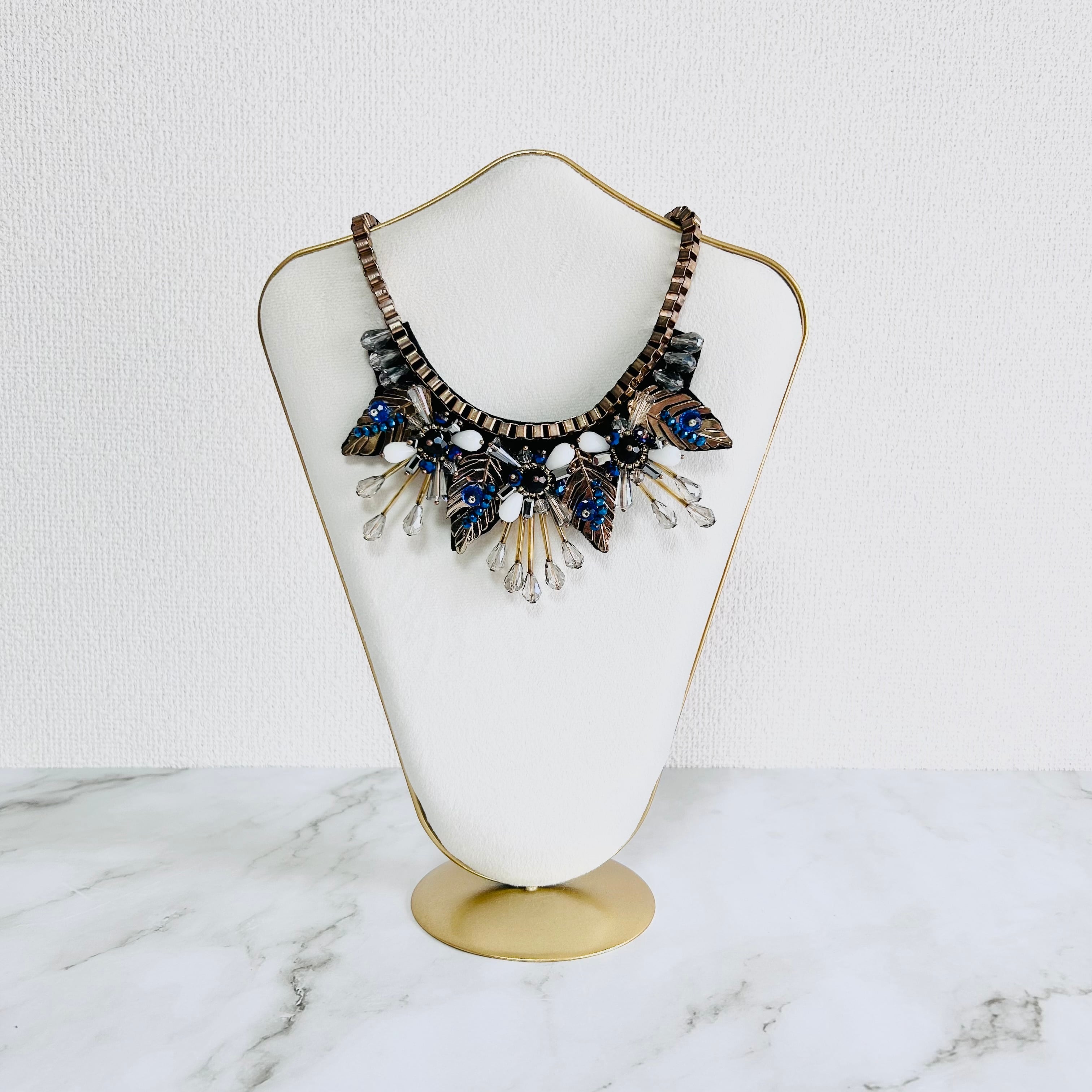 深みのある配色とリーフデザインが、大人の女性にふさわしい凛とした華やかさを演出してくれるネックレスです。
