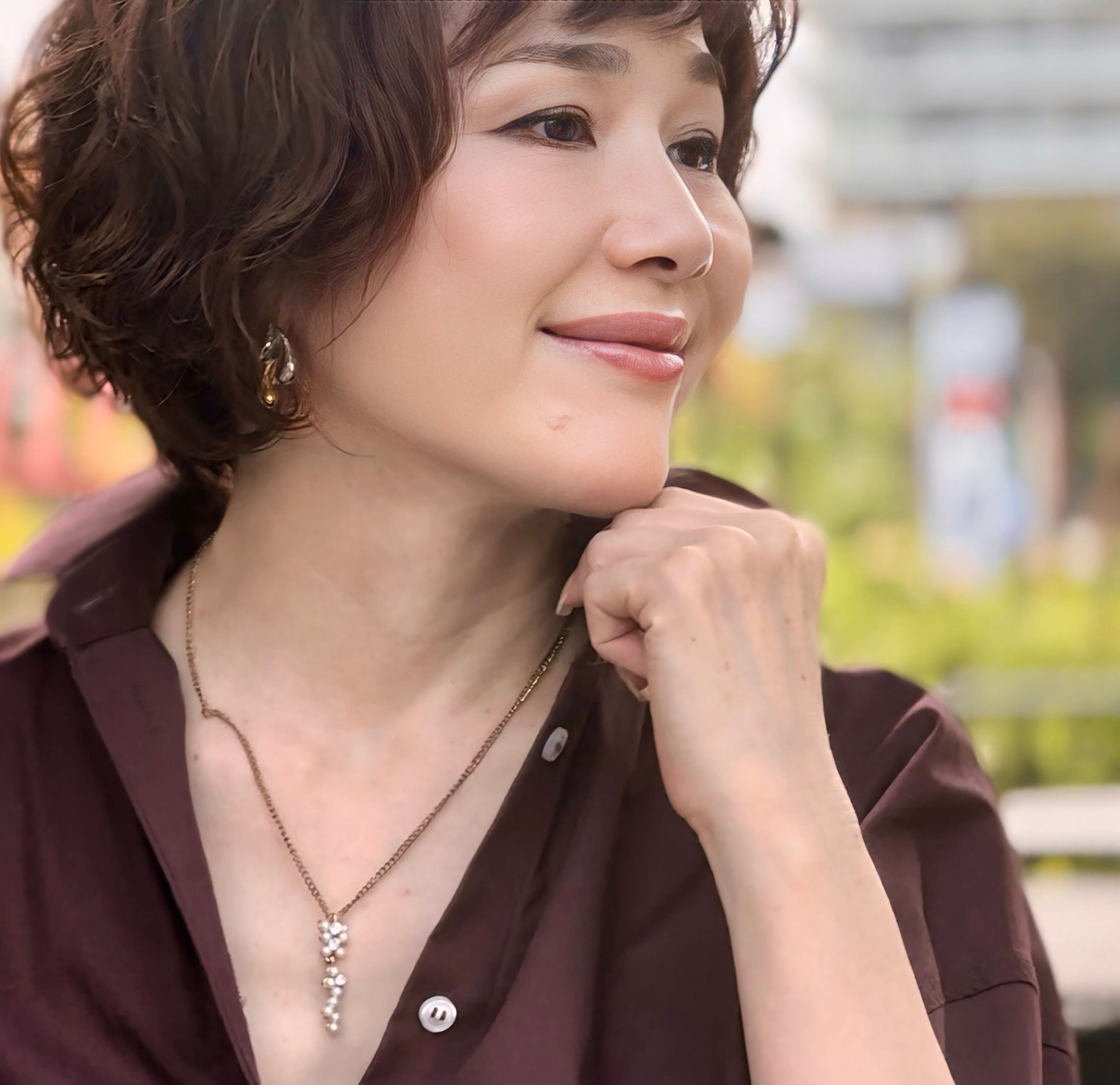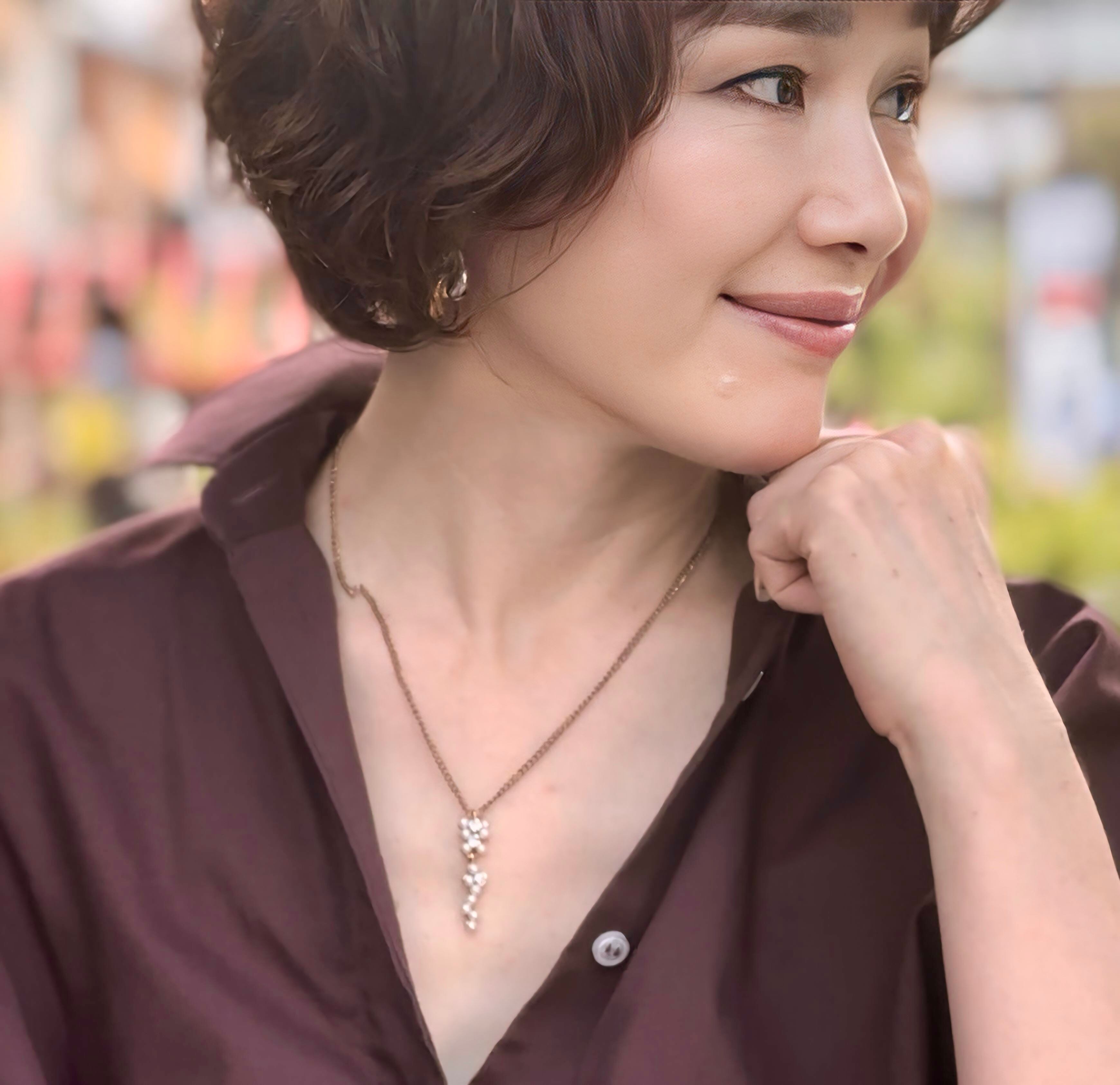 縦に流れるデザインは胸元をすっきりと見せ、シンプルな装いにもアクセントをプラスしてくれます。