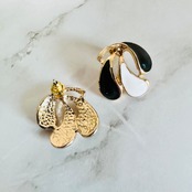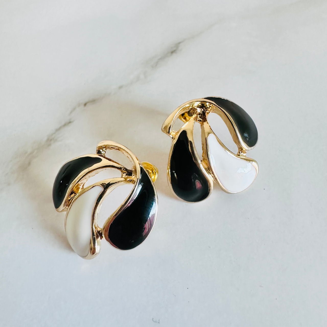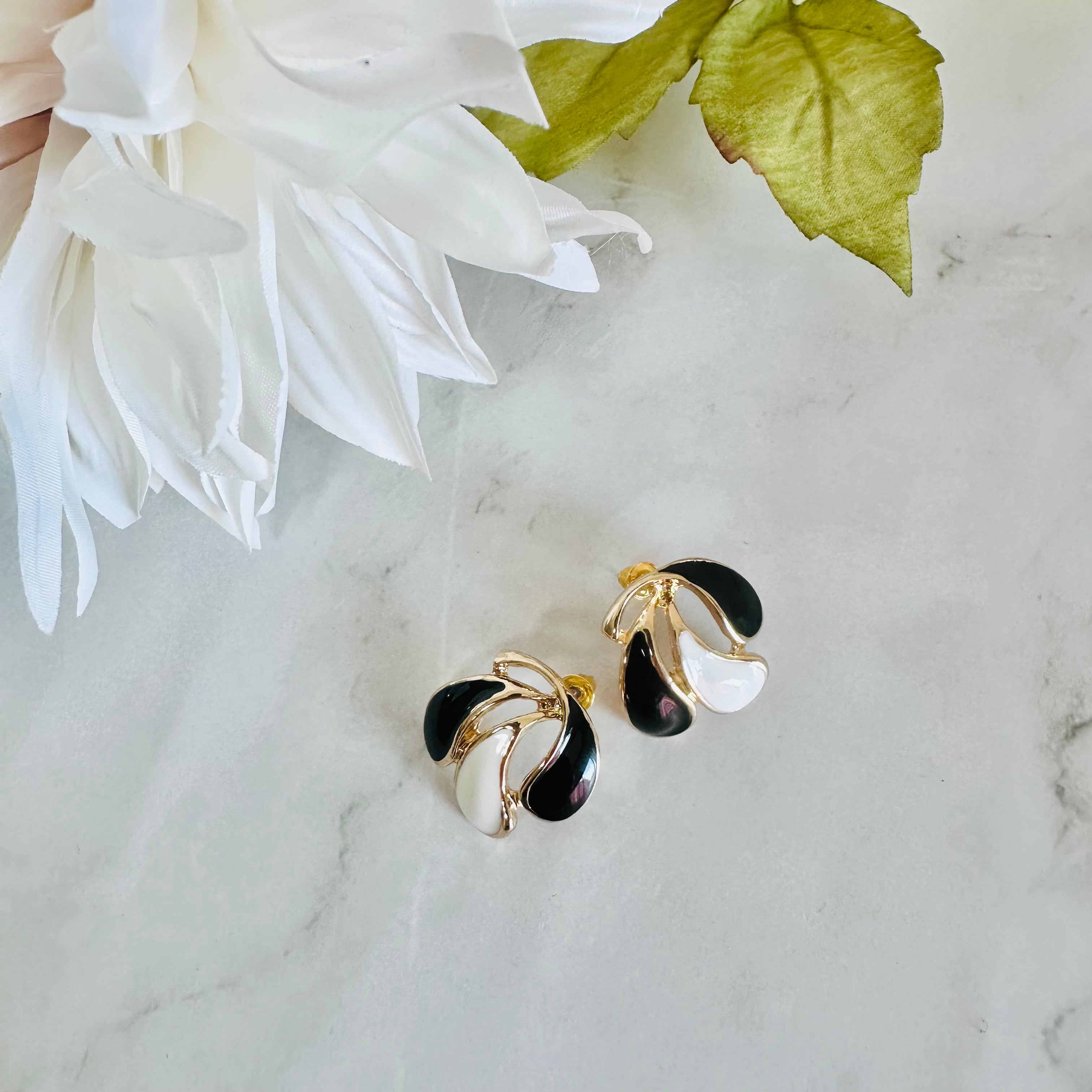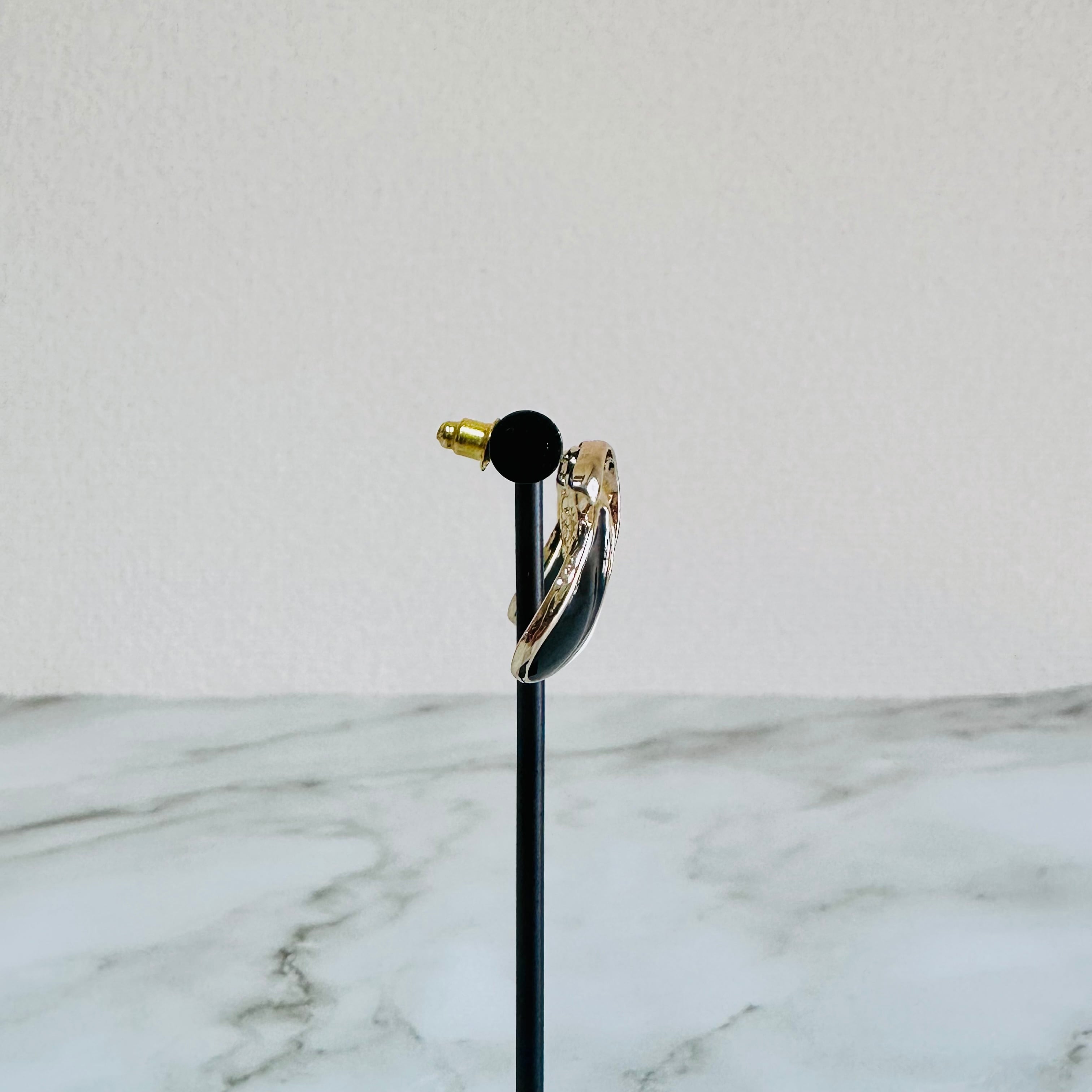エナメルトーンの艶やかなブラックとホワイトのコントラストが美しい、しずくのようなフォルムのピアスです。