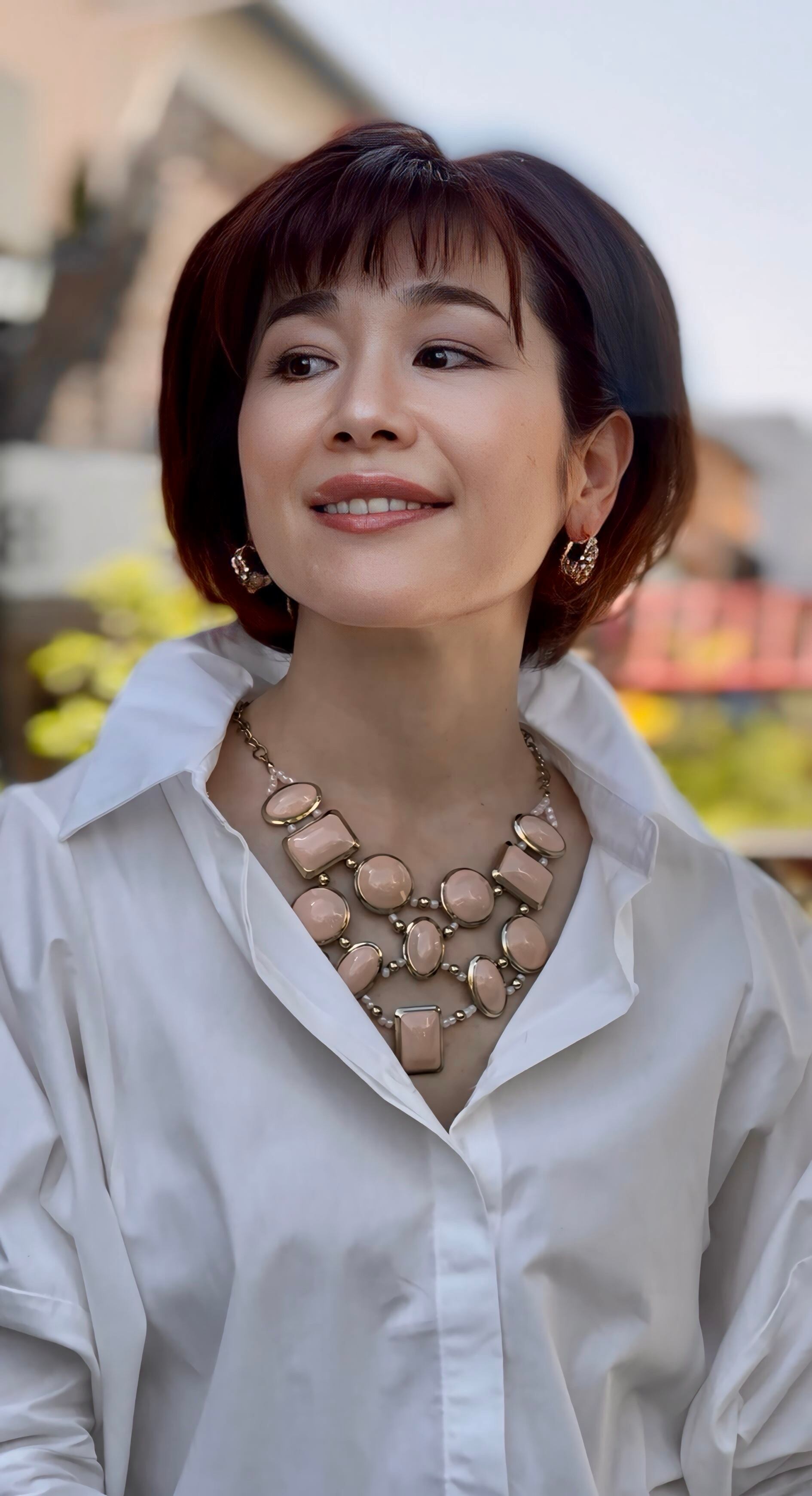 シンプルなシャツスタイルやワンピースにも、甘すぎない華やかさを添えてくれます♪