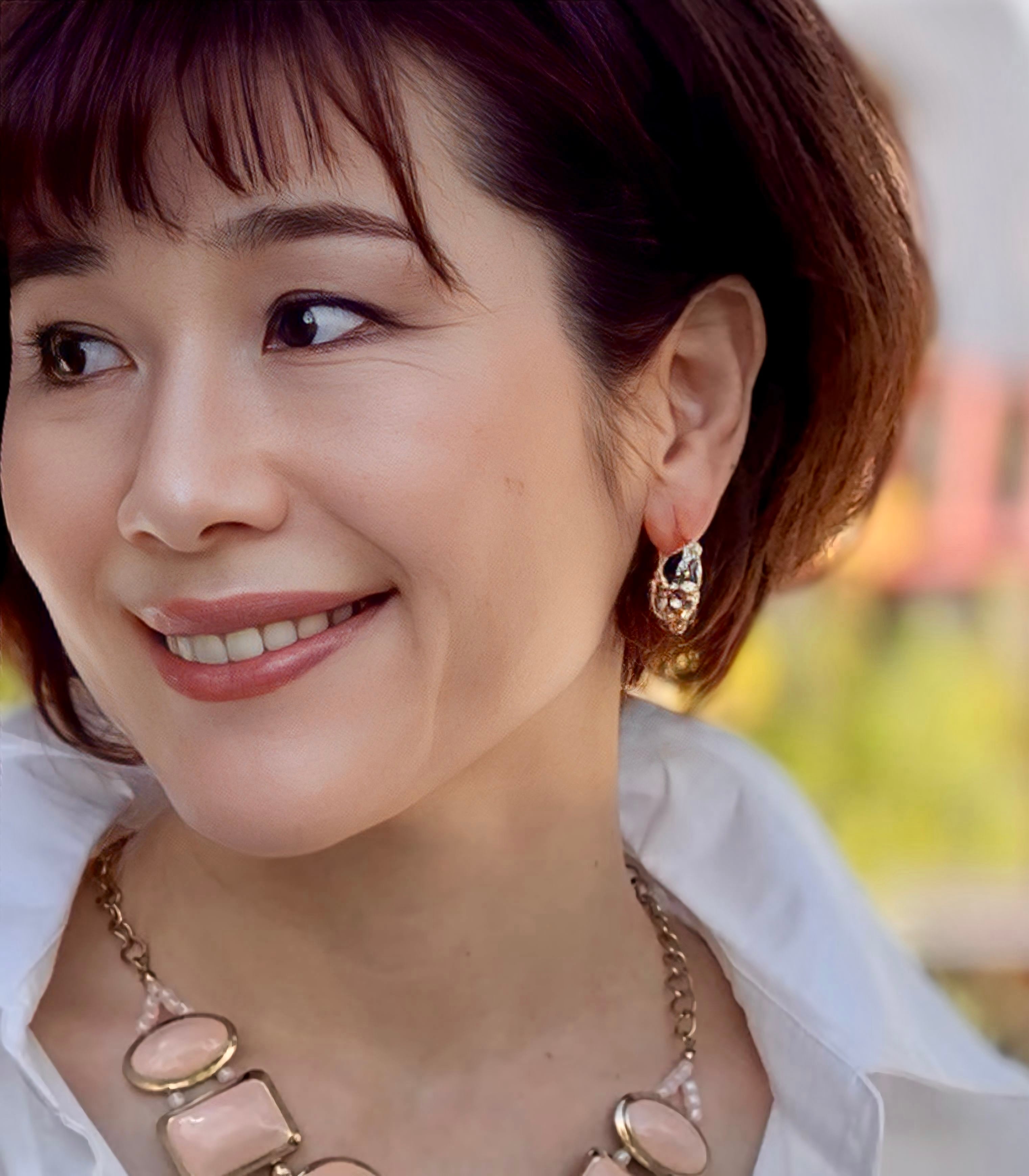 柔らかな色合いが耳元に優しい輝きを添え、女性らしさをぐっと引き立ててくれます。