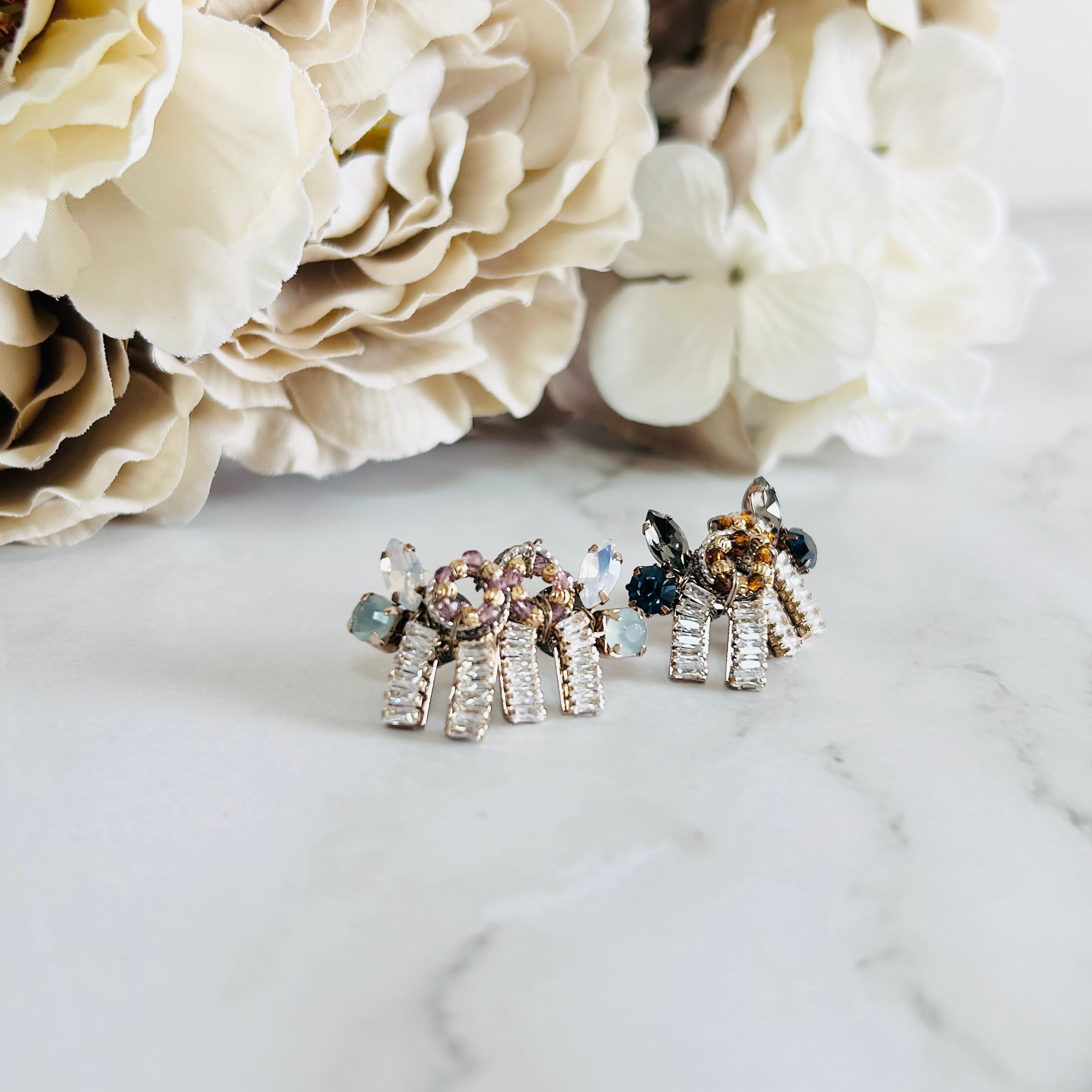 柔らかなパープルや淡いブルーのストーンを組み合わせ、可憐でフェミニンな印象に。