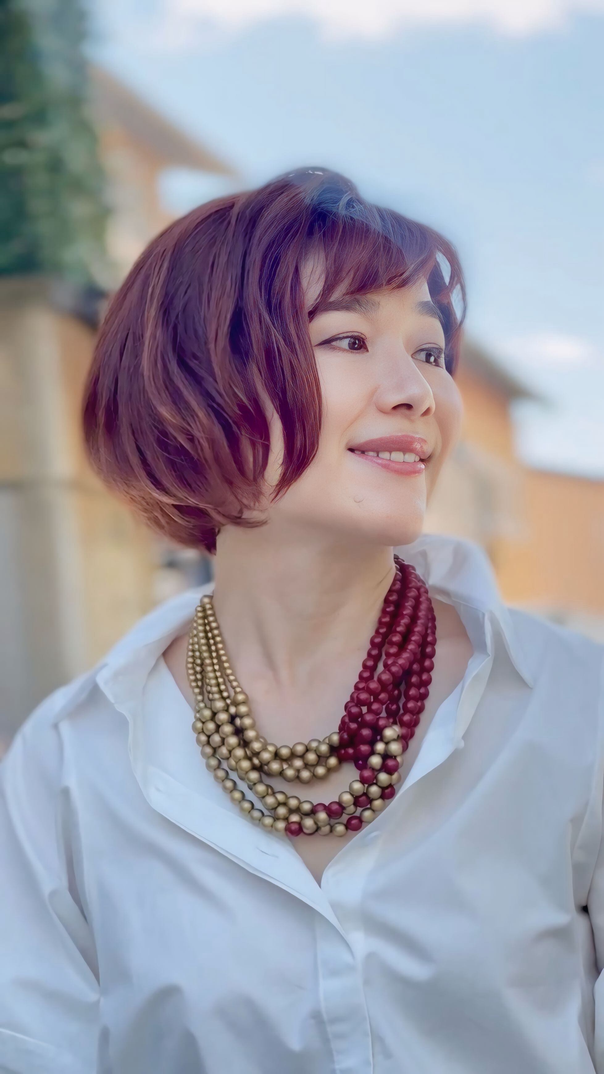 艶やかなバーガンディーの気品と、落ち着いたゴールドの輝きが絶妙に溶け合い、首元にリュクスな華やかさを演出してくれます。