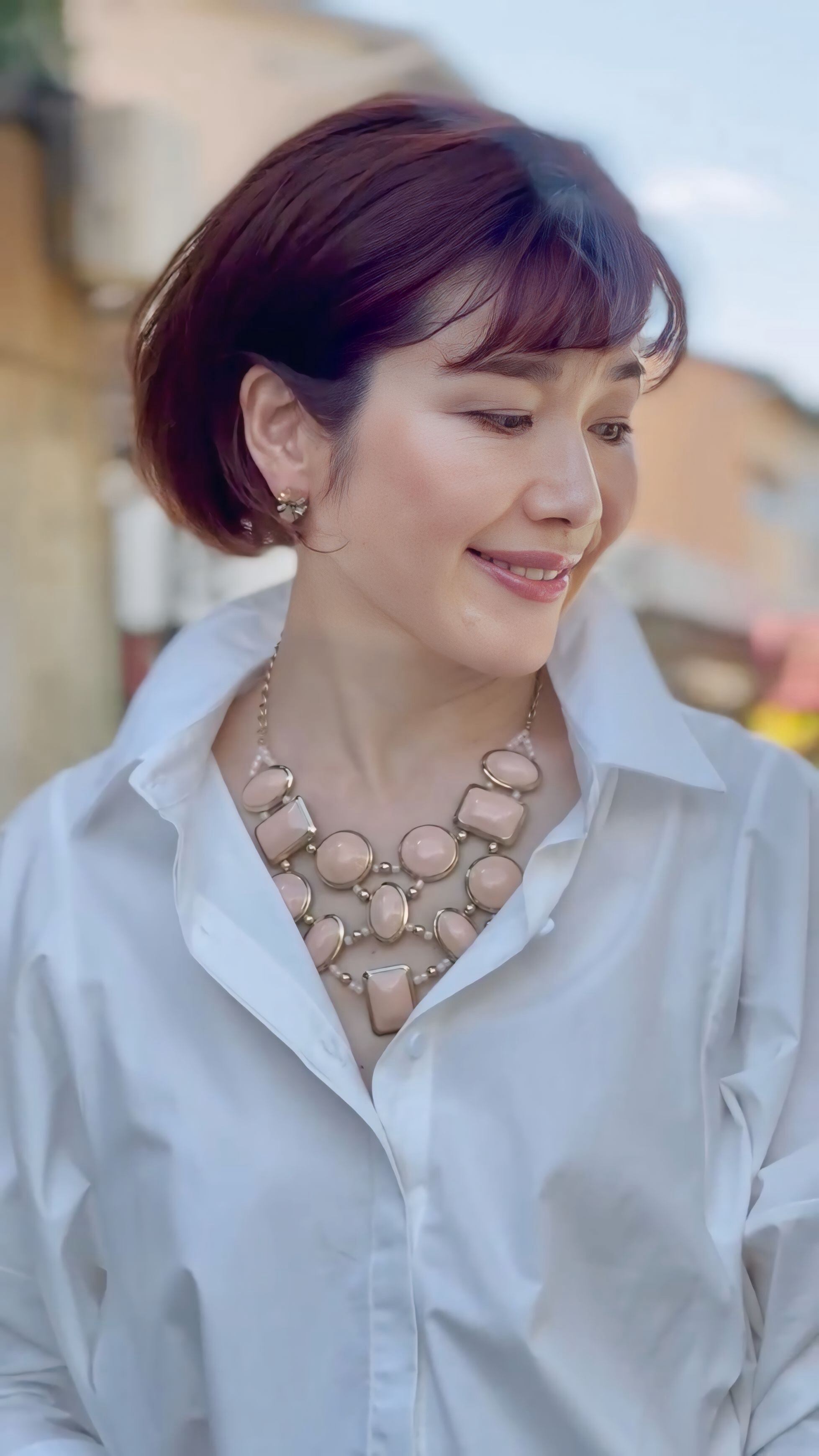 シンプルなニットやワンピースに合わせるだけで、お顔まわりが一気に華やぎます⭐︎