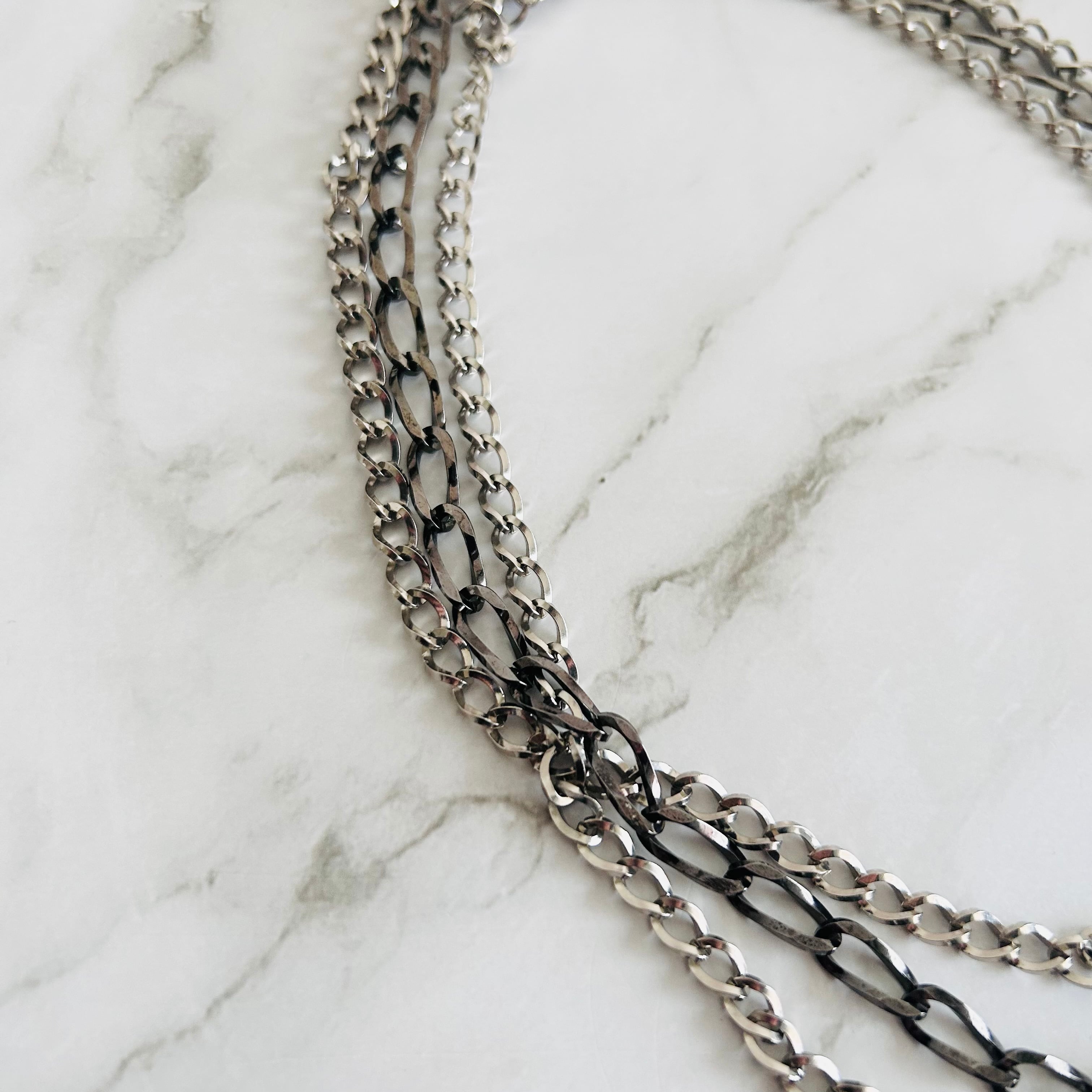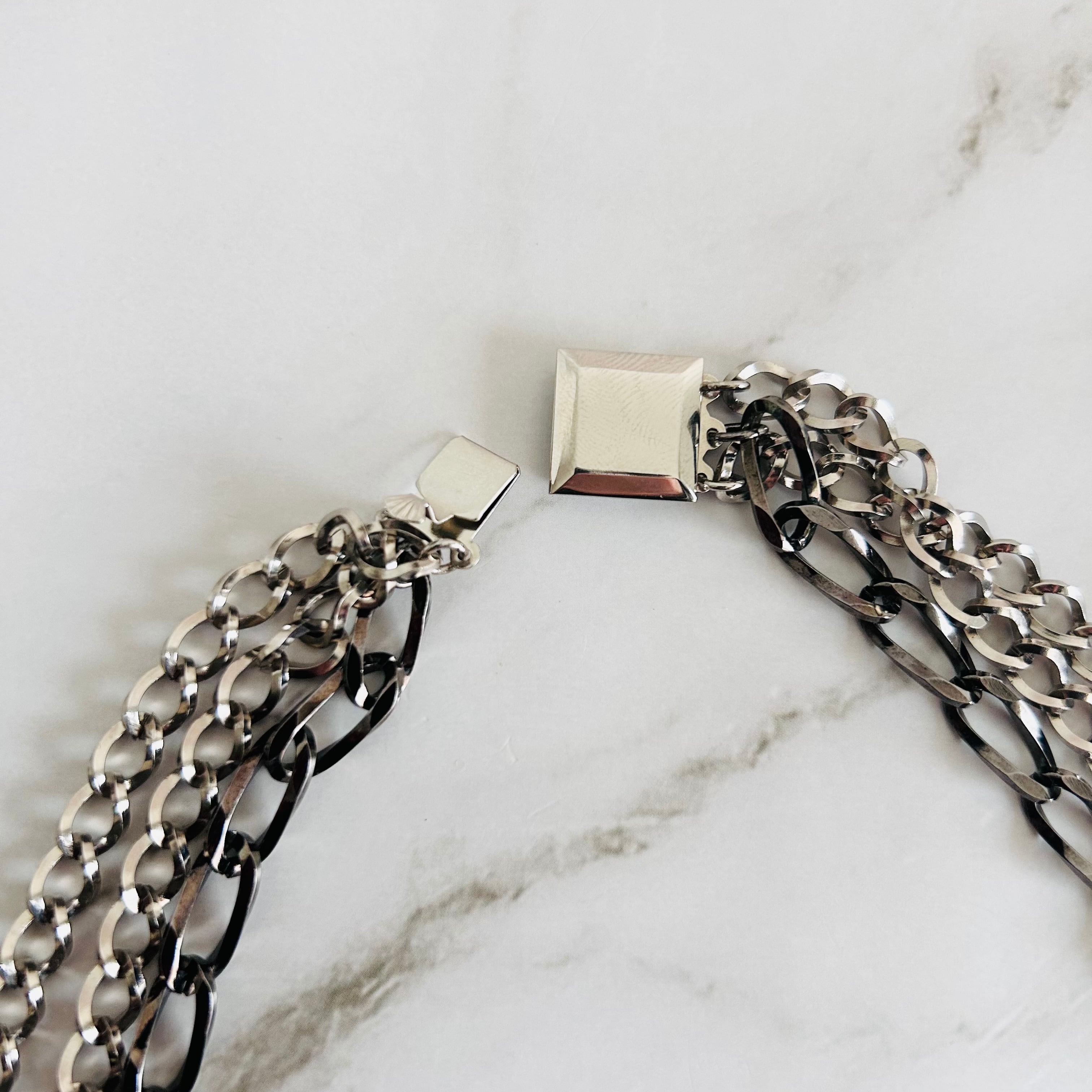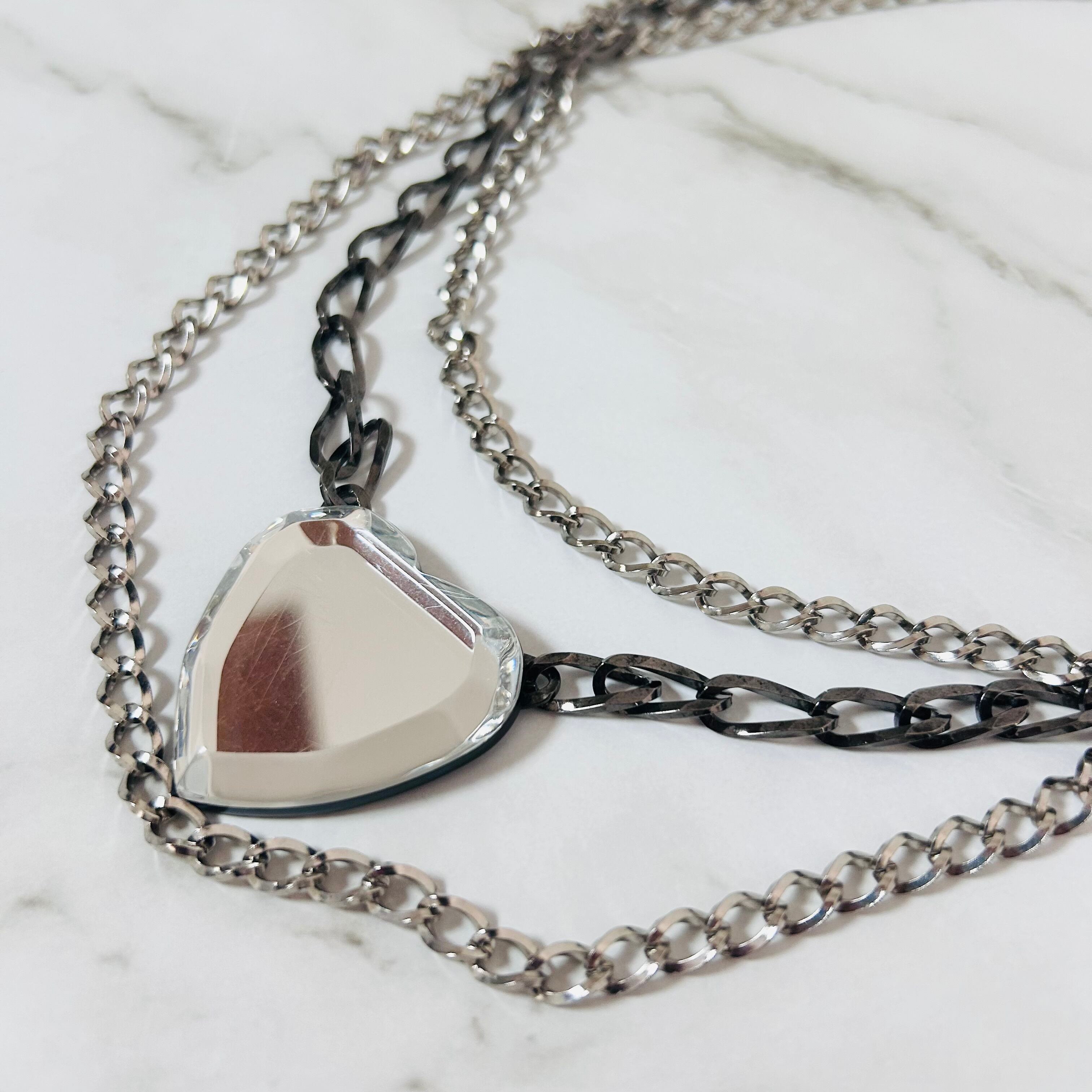 艶やかなシルバーチェーンに、ボリュームのあるハートモチーフをあしらったモードな3連ネックレスです。