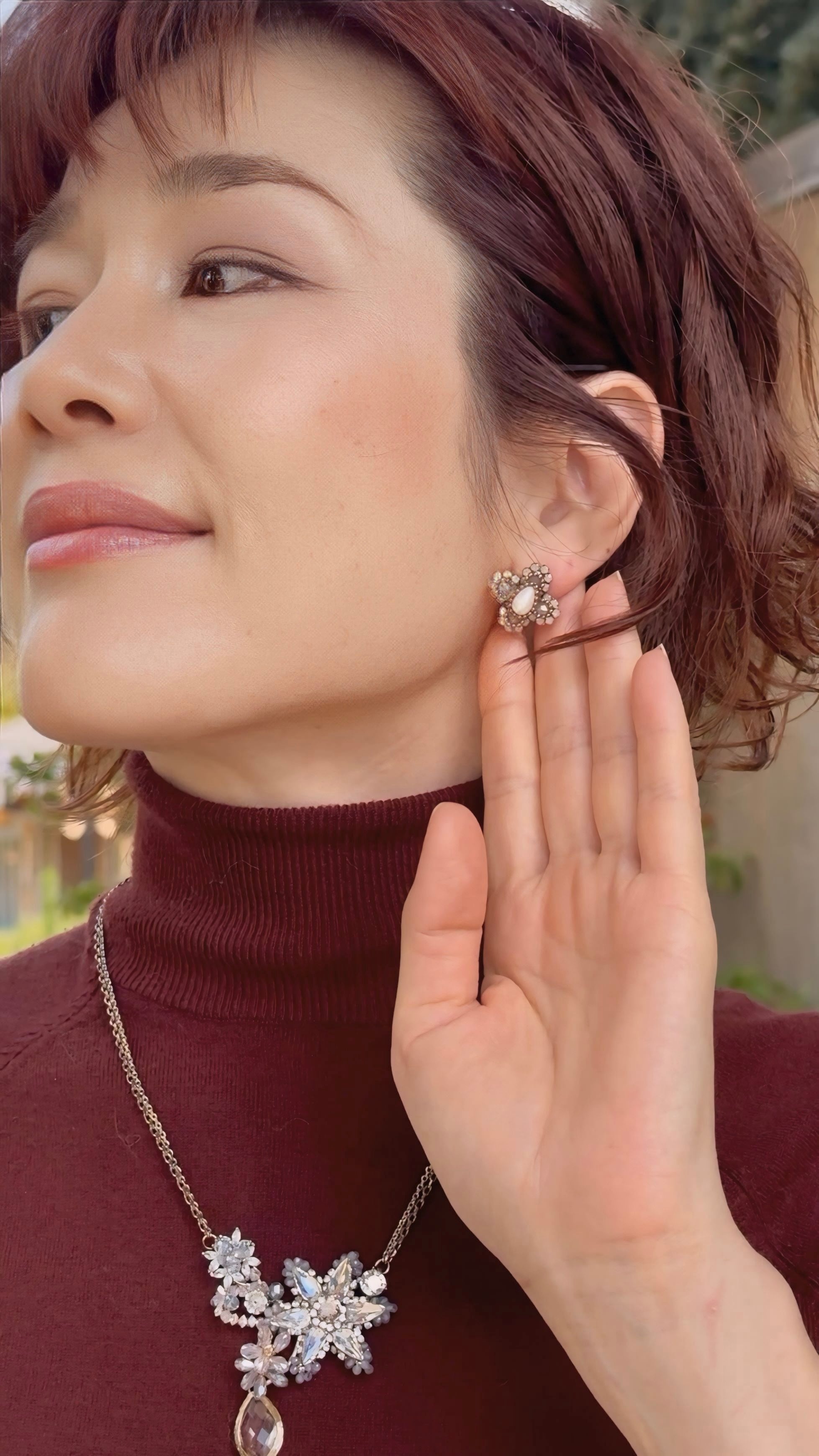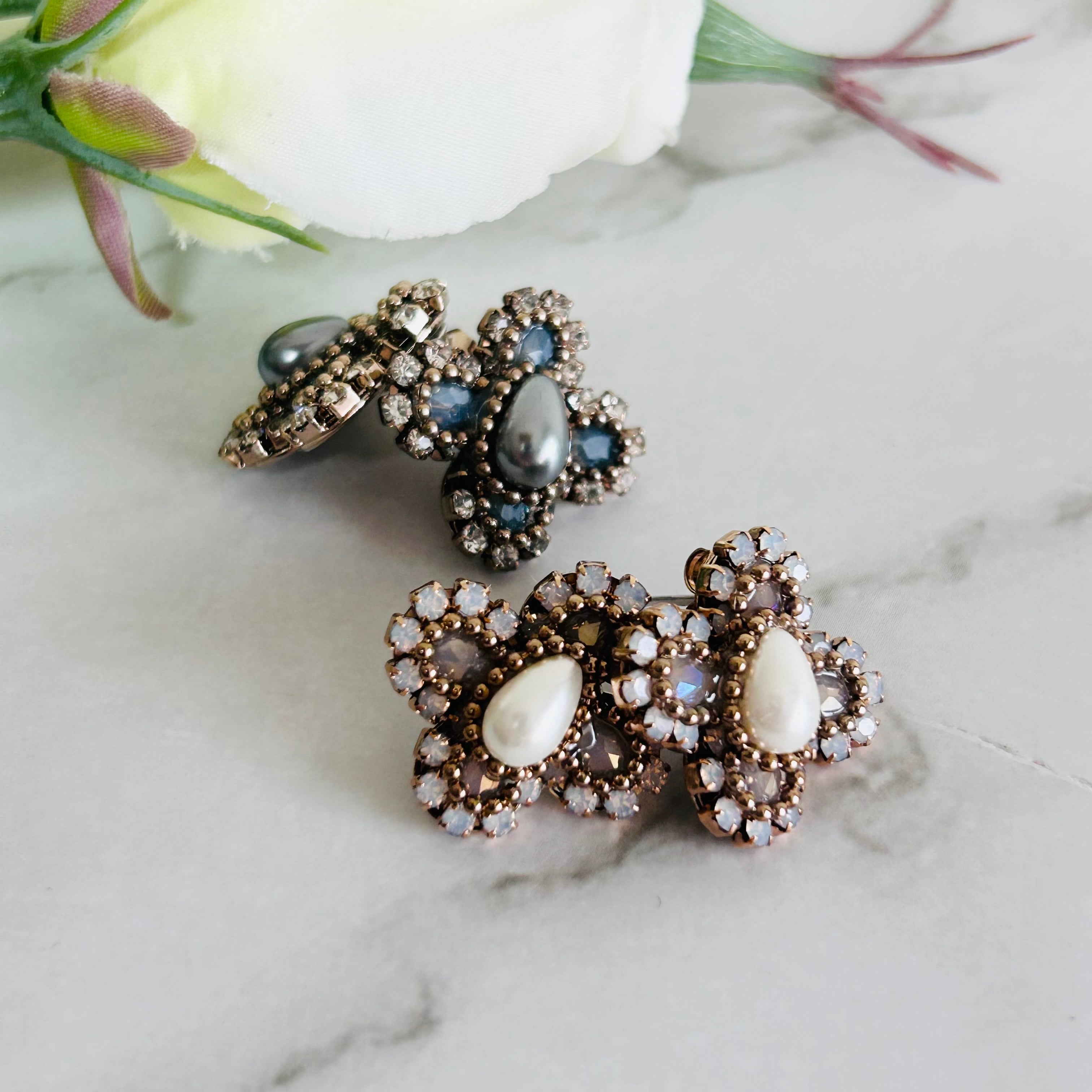 繊細なストーンが光を受けてきらめき、お耳元に上品な華やかさを添えます。