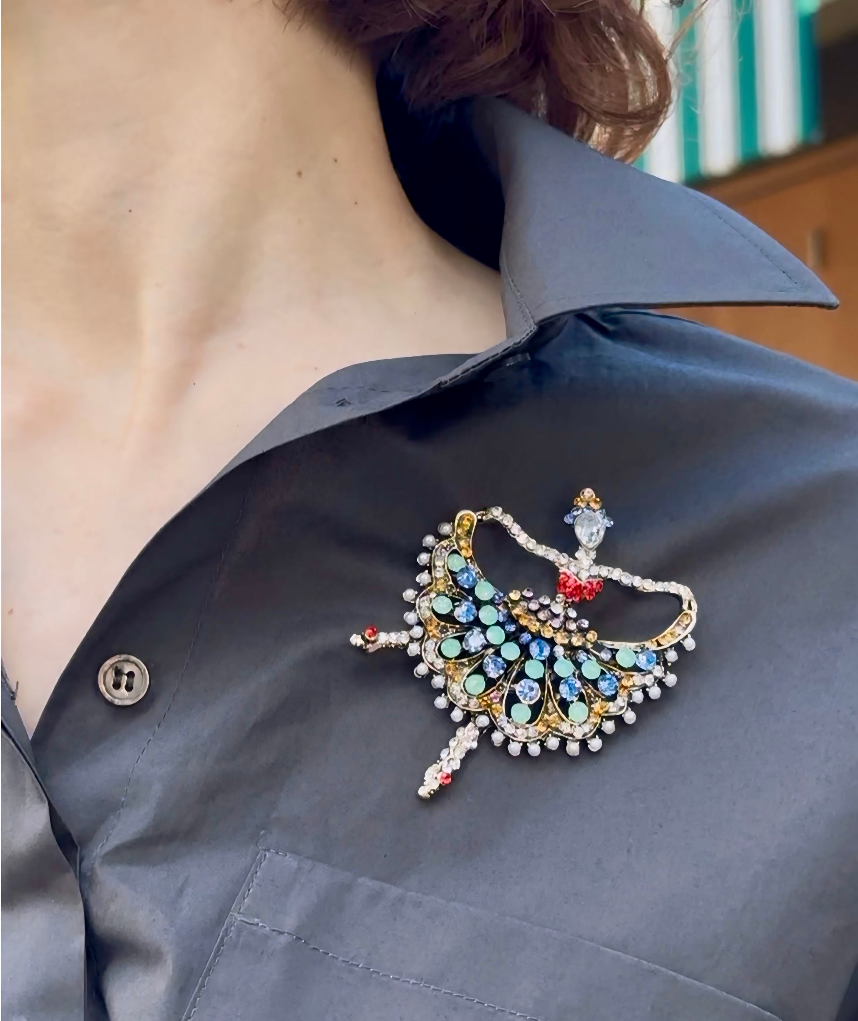見るたびに心がときめく、美しい舞踊を纏うようなブローチです。
