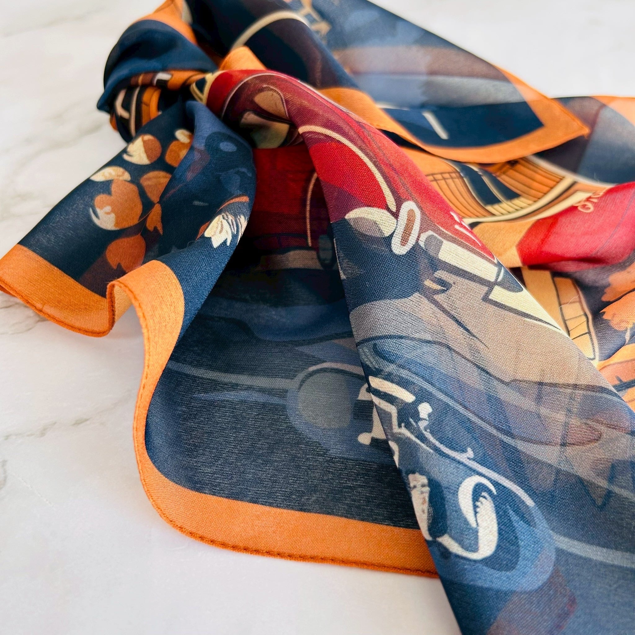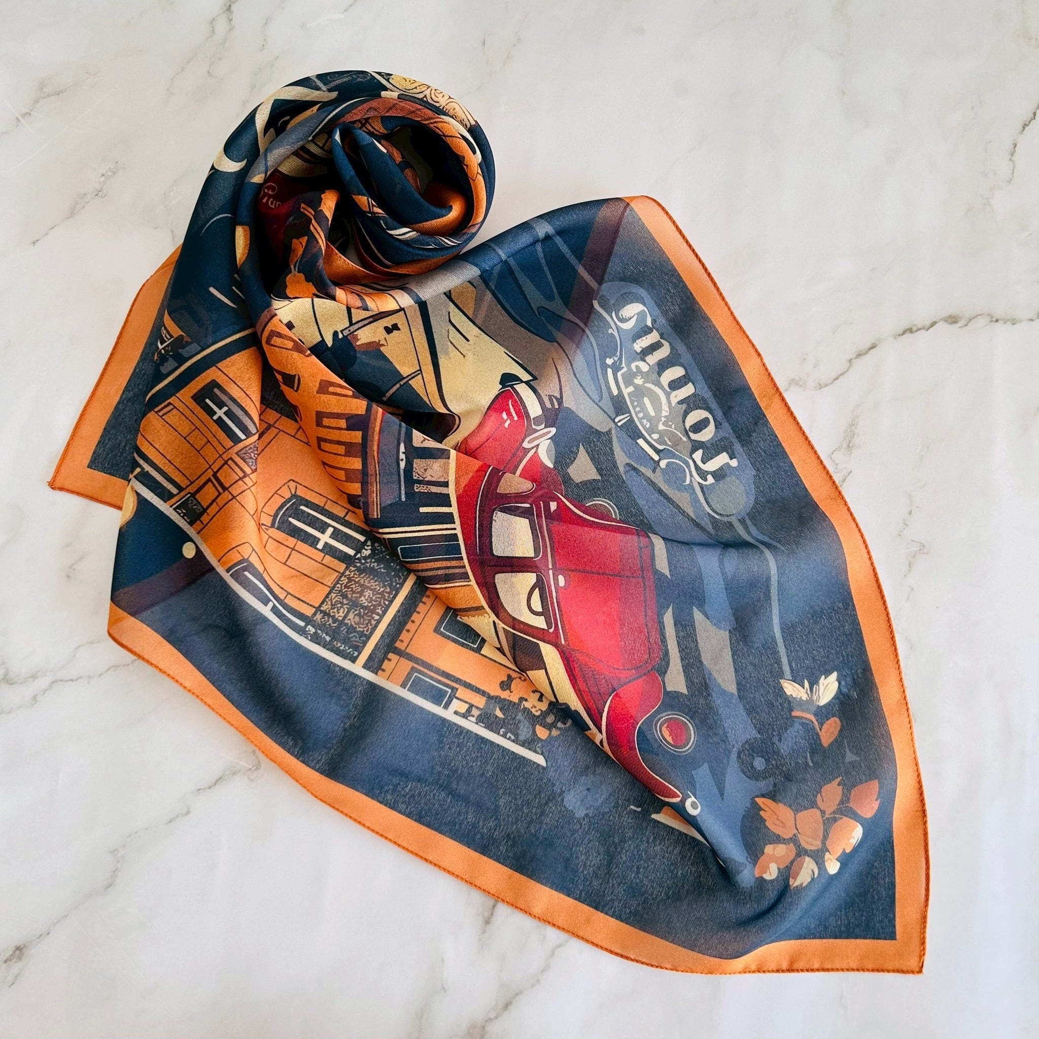 日常の装いに、旅のエッセンスと物語を添えてくれる心踊るスカーフです。