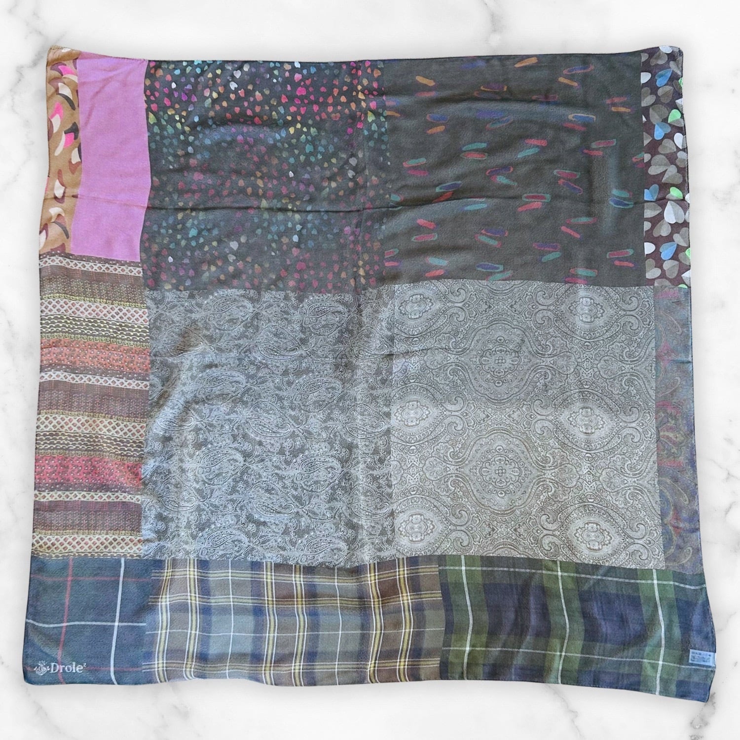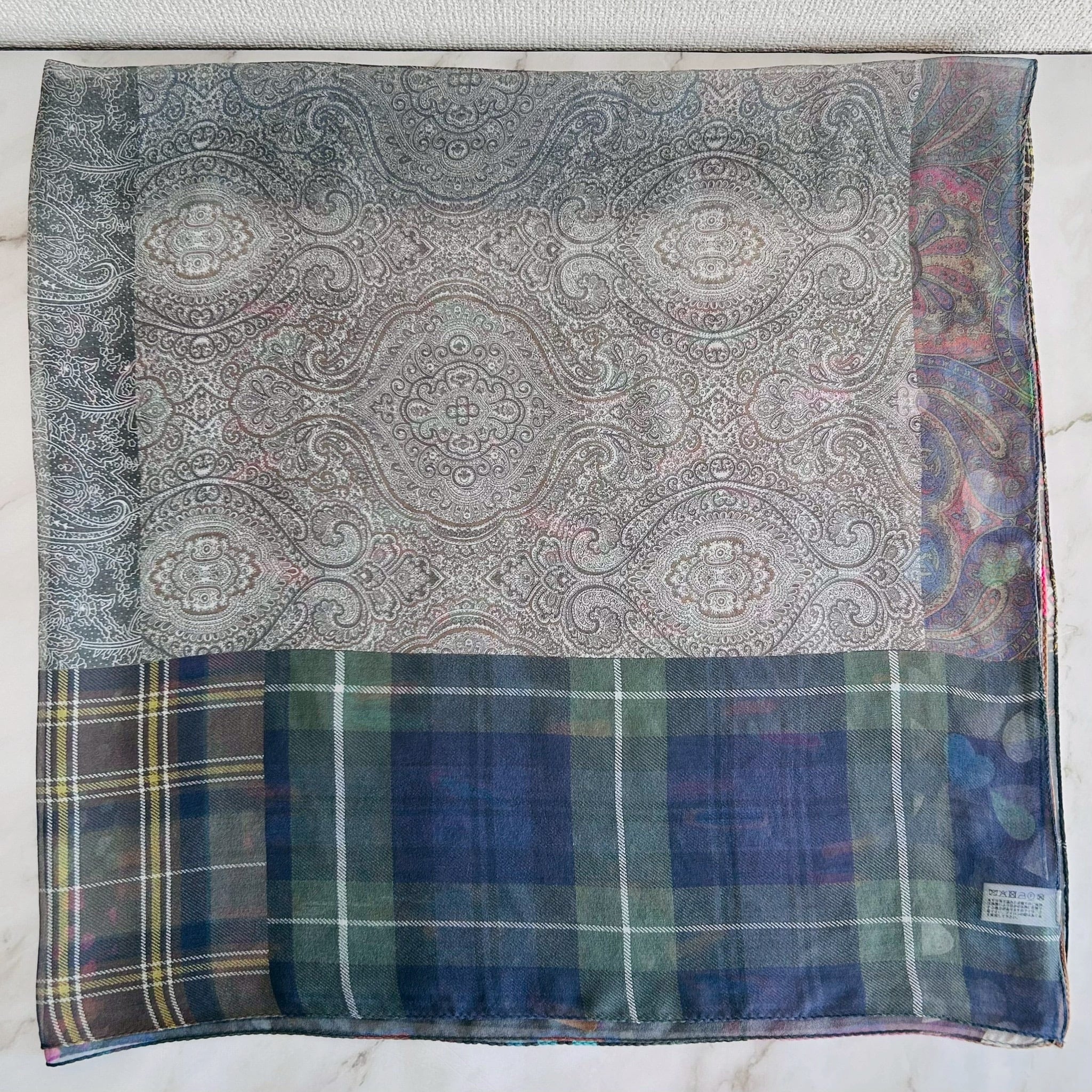 ゆったりとしたサイズに、異なる柄を贅沢に組み合わせたアソートデザインが印象的な一枚です。
