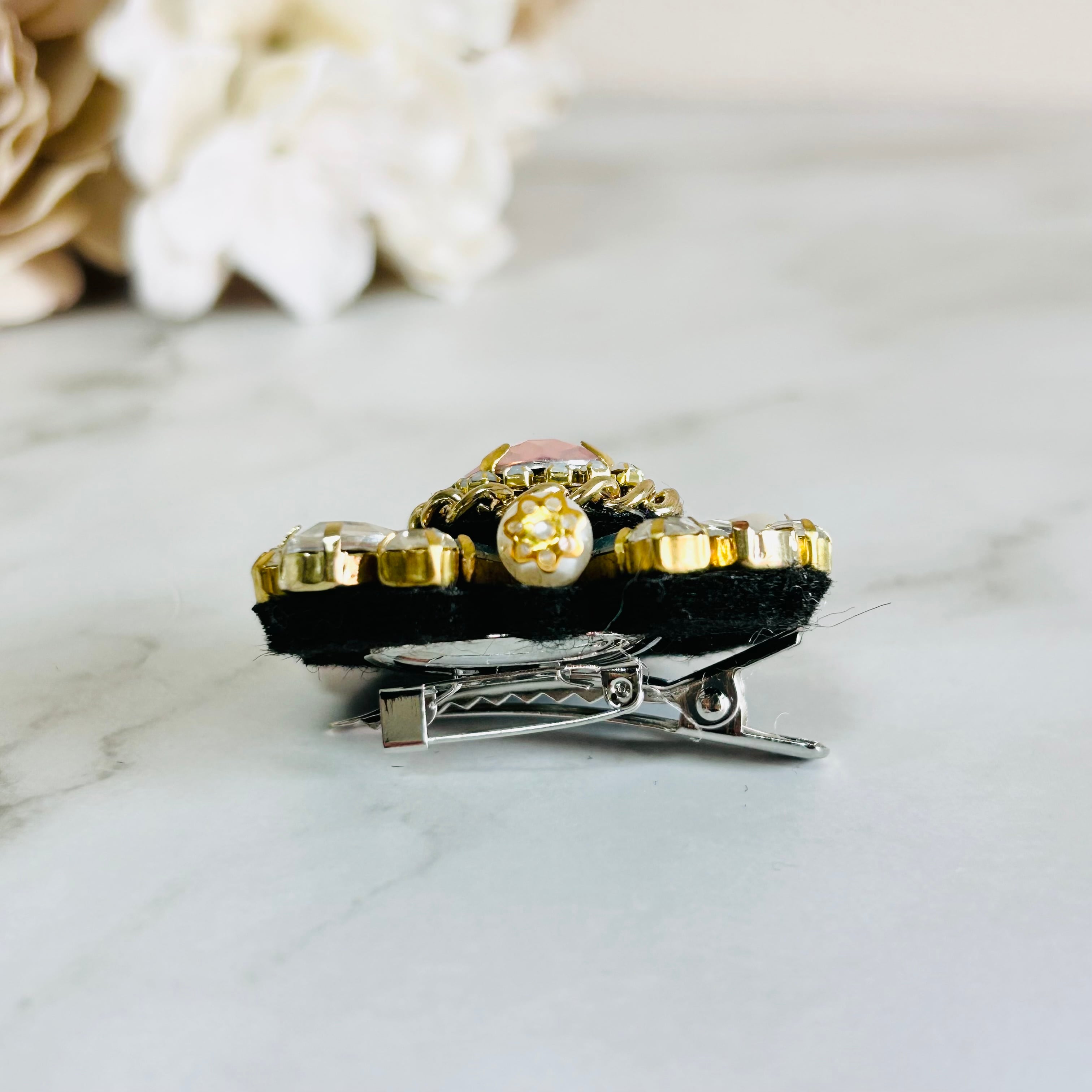 秋冬のニットやコートの襟元に添えると、ふんわりした質感の上でビジューの輝きが際立ち、季節らしい華やぎをプラス⭐︎