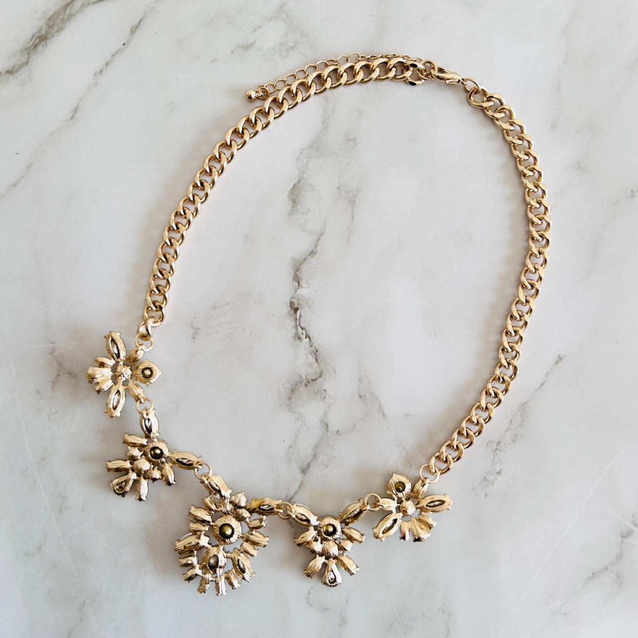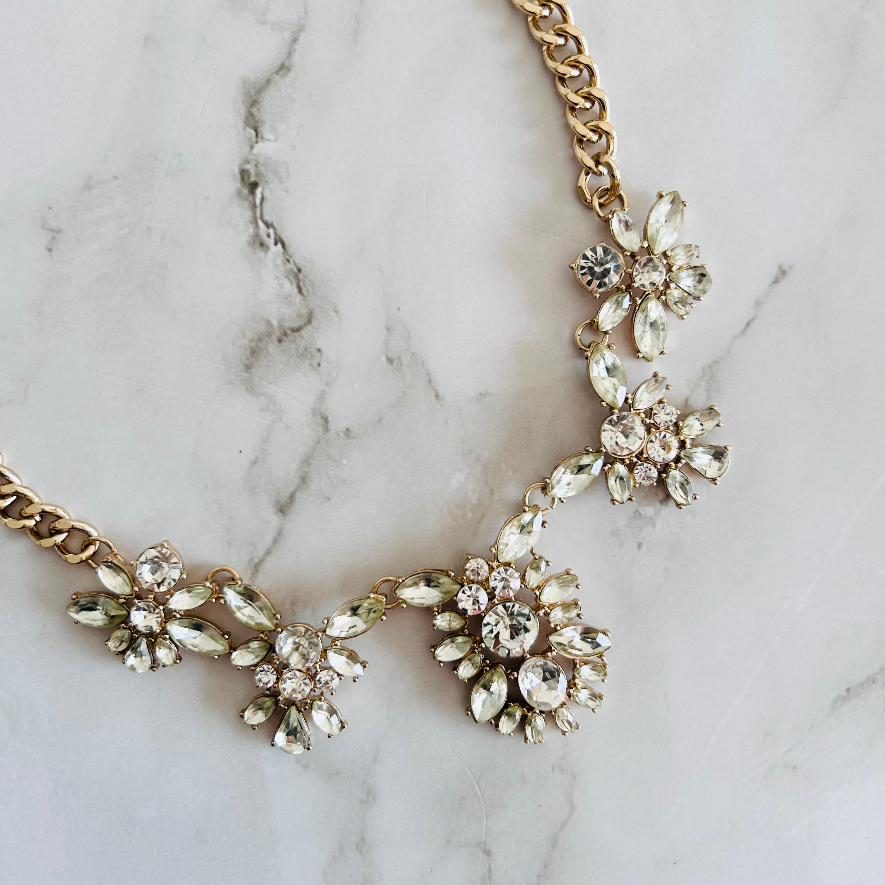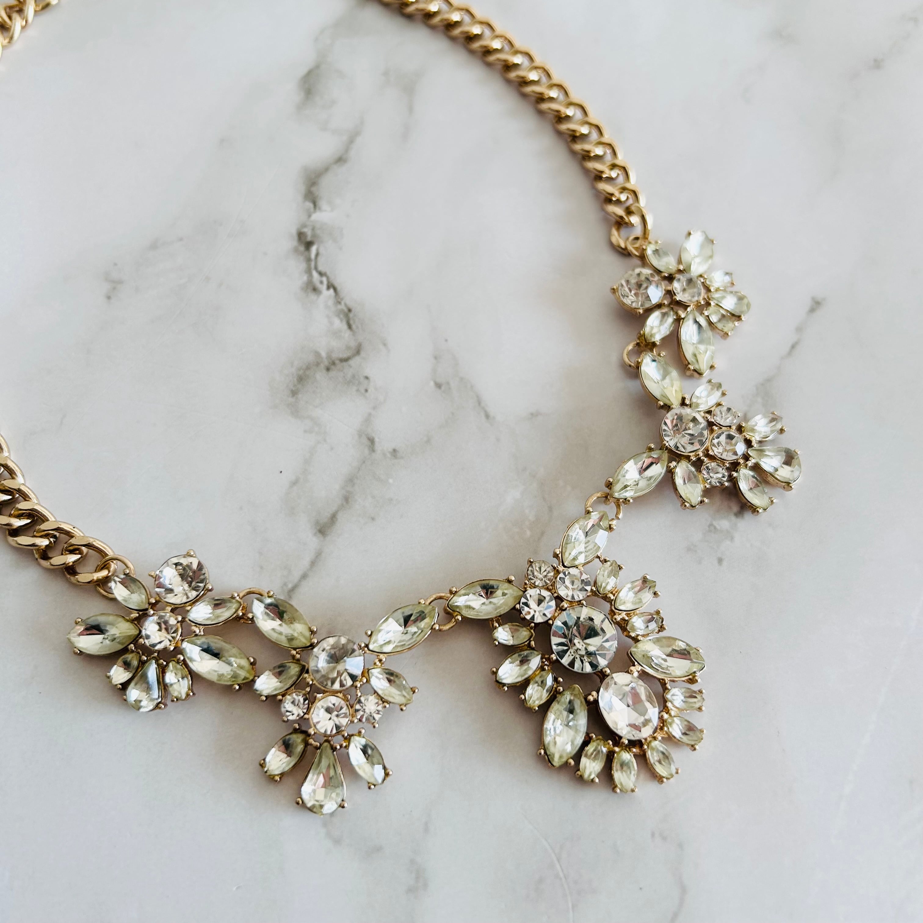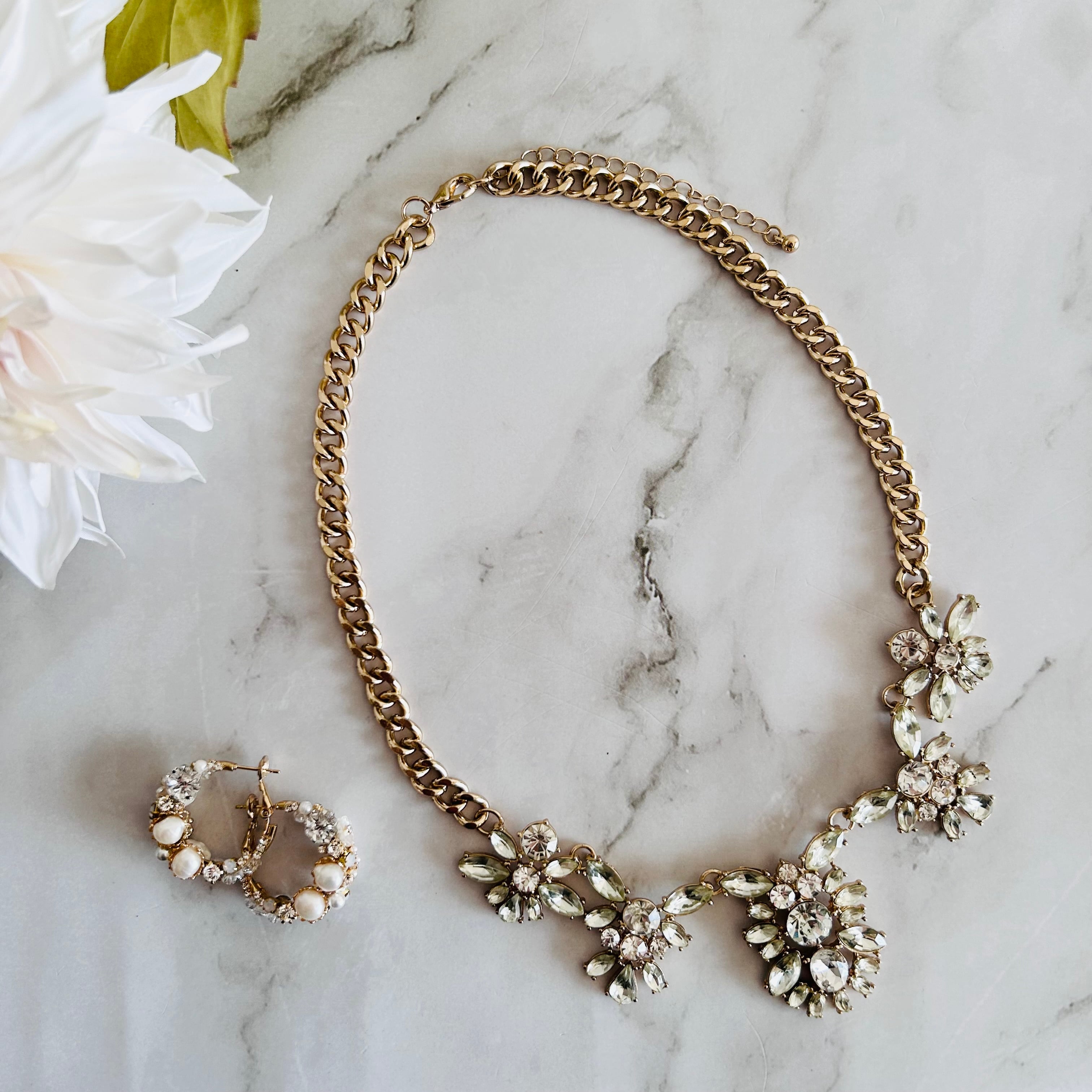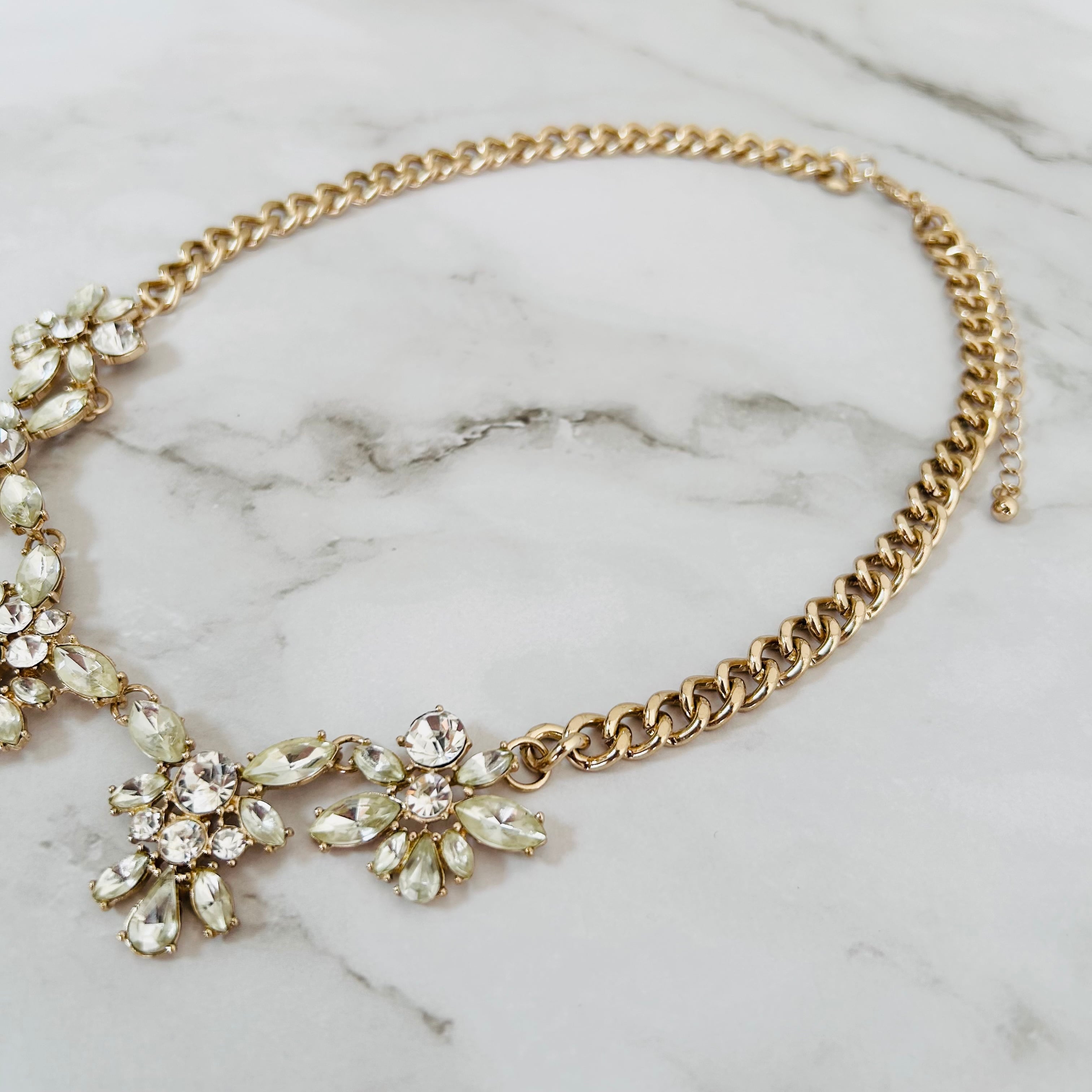 透明感あふれるクリスタルビジューを贅沢に連ねた、華やかさと上品さを兼ね備えたモチーフネックレスです。