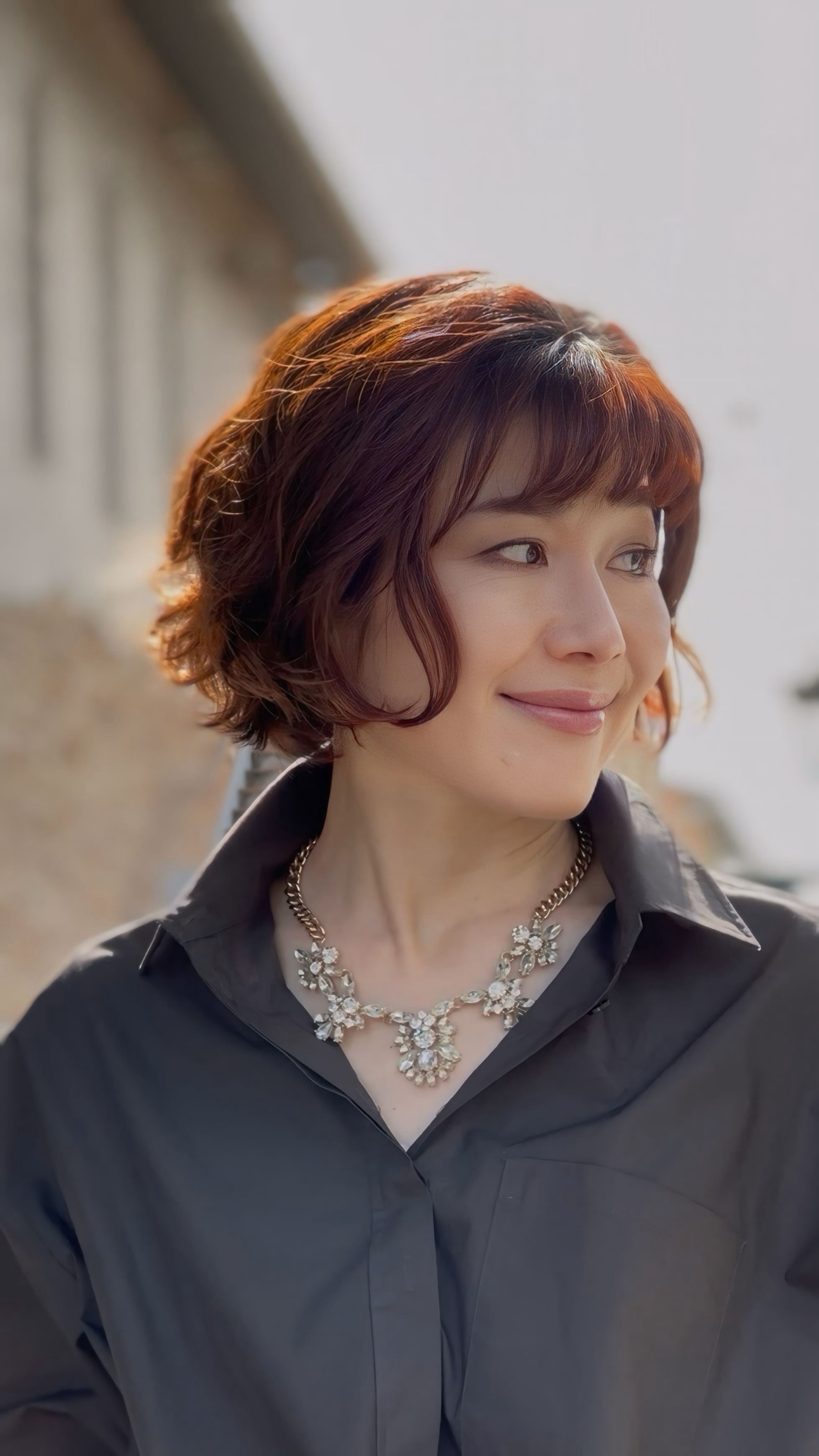タートルニットの上に重ねると、ネックレスの輝きが立体的に浮かび上がり、特別感のあるスタイリングに♪