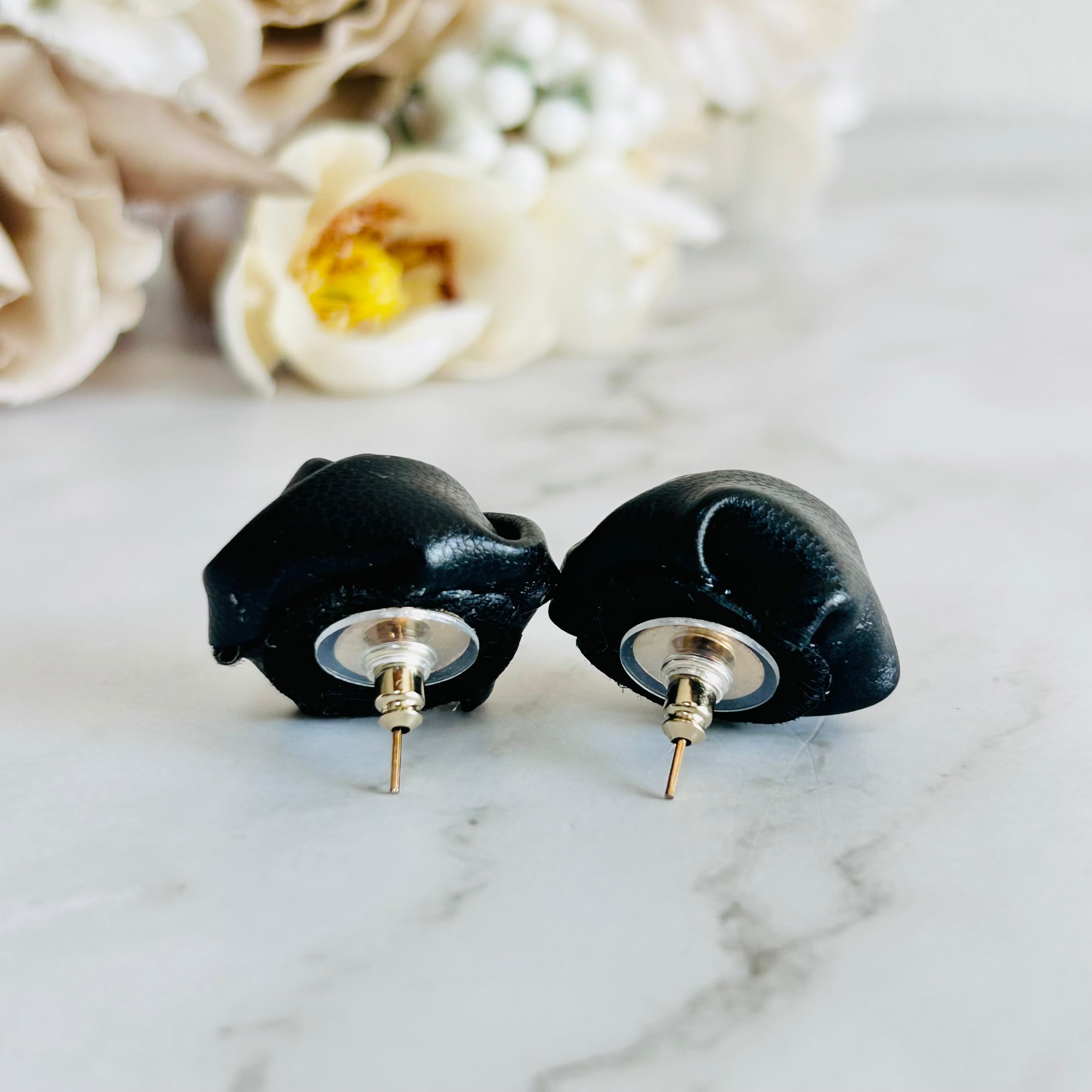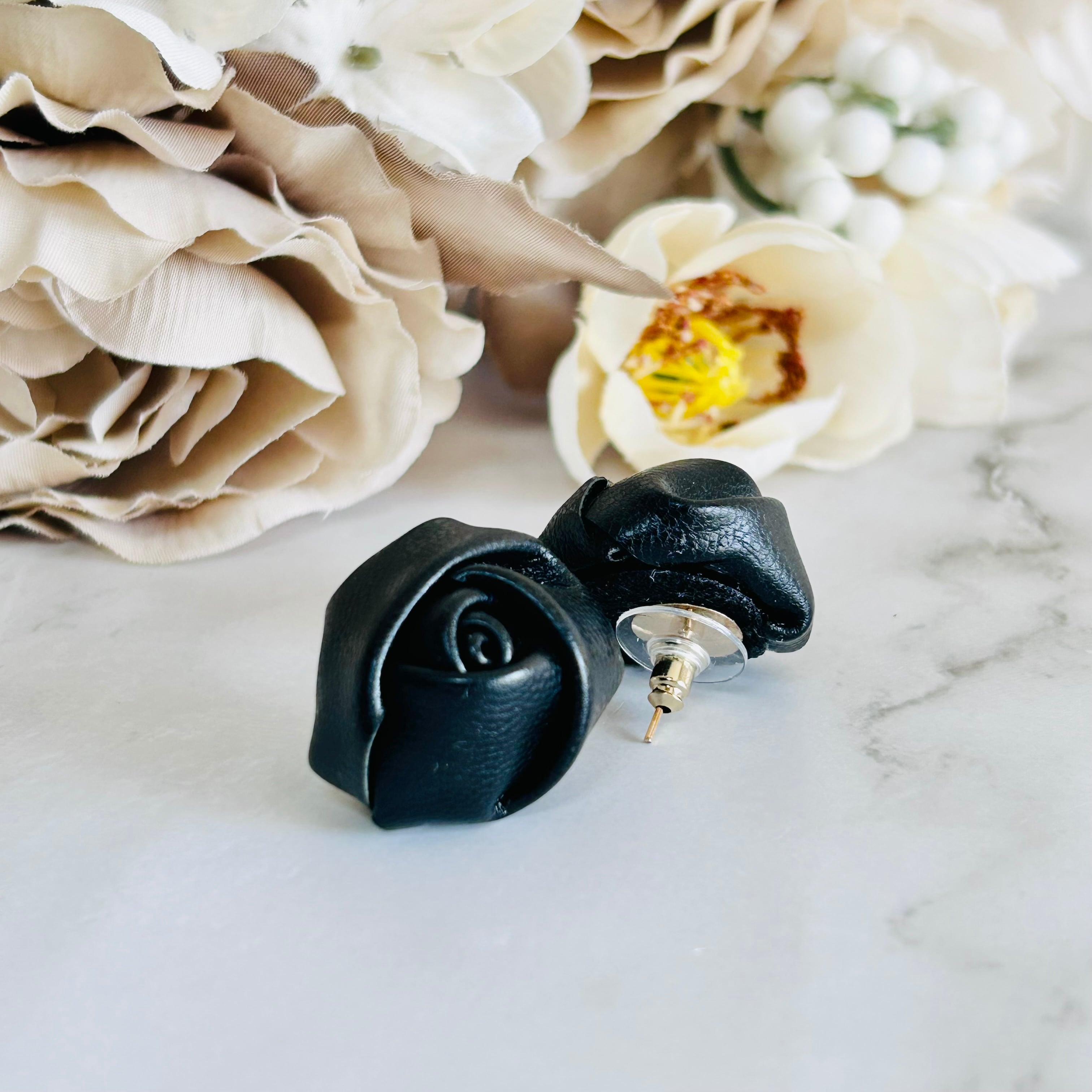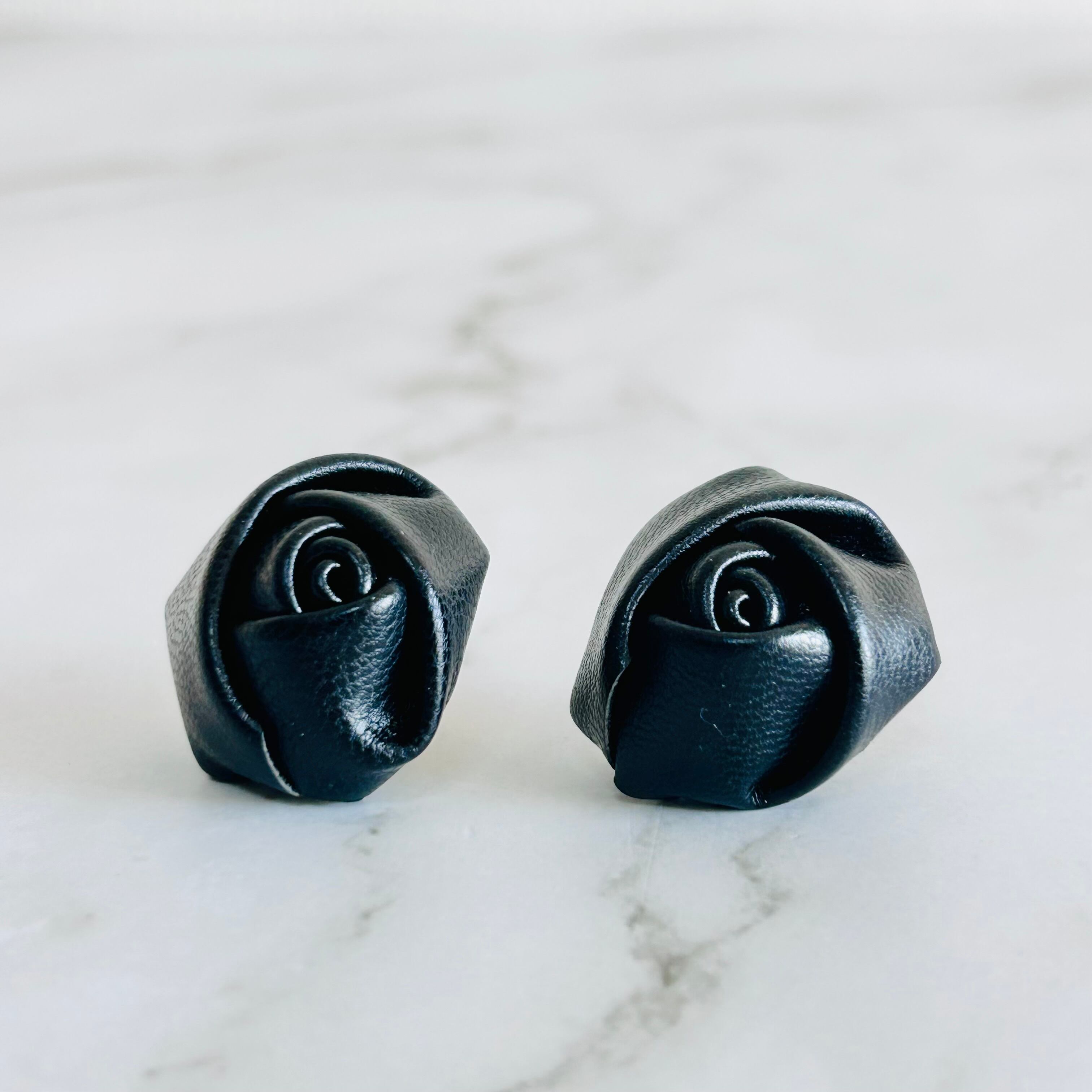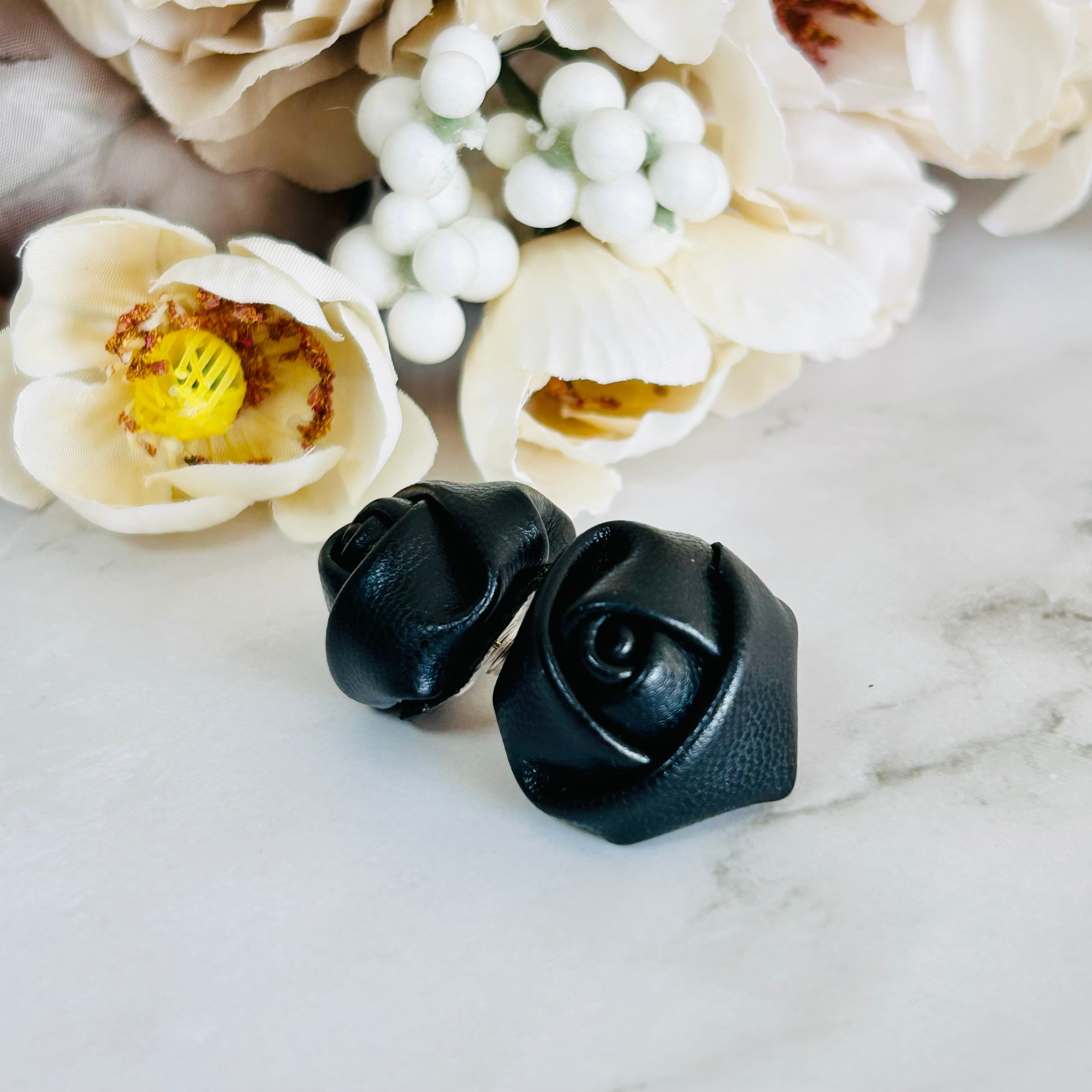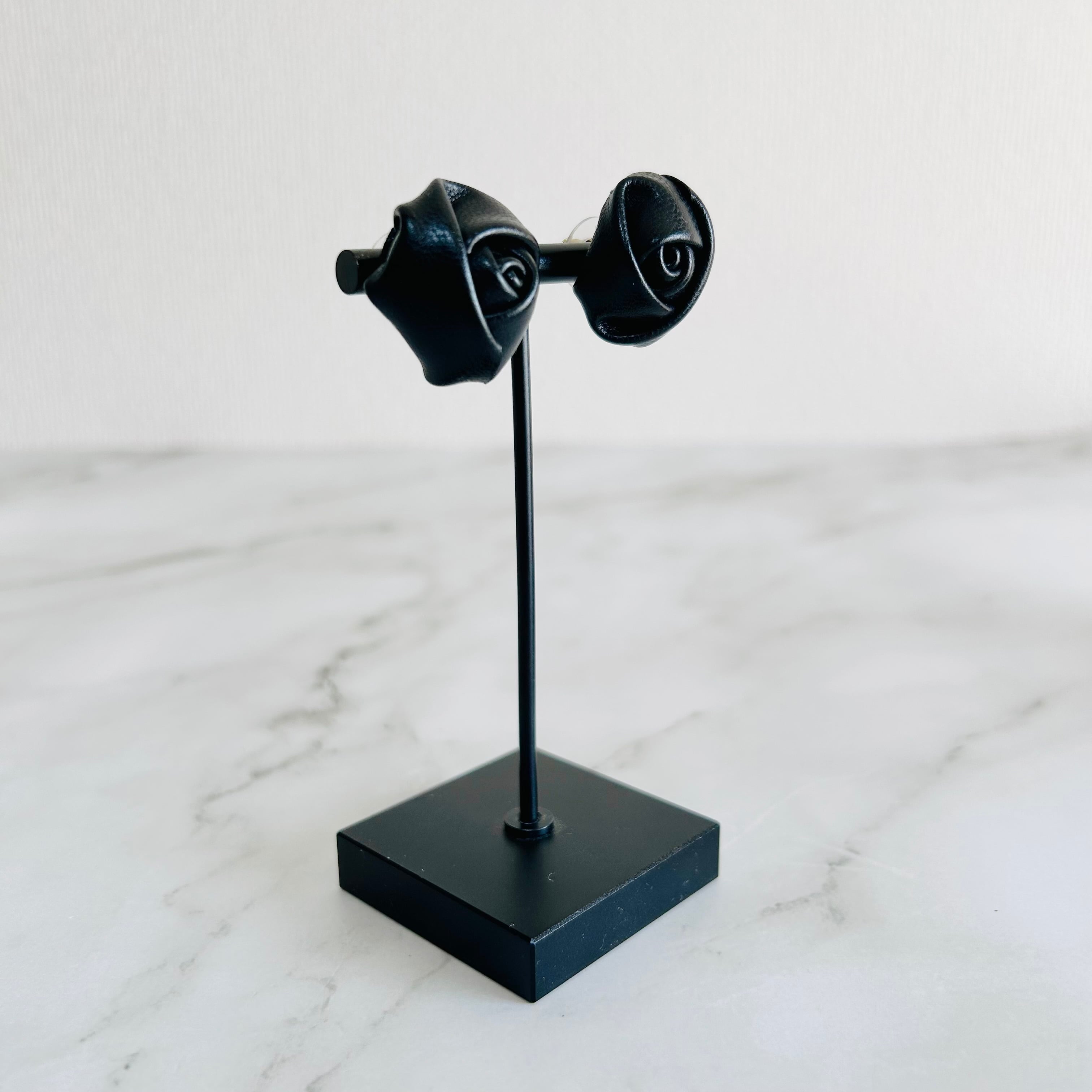 柔らかなレザー調素材を華やかなローズの形に仕上げた、ピアス・イヤリングです。