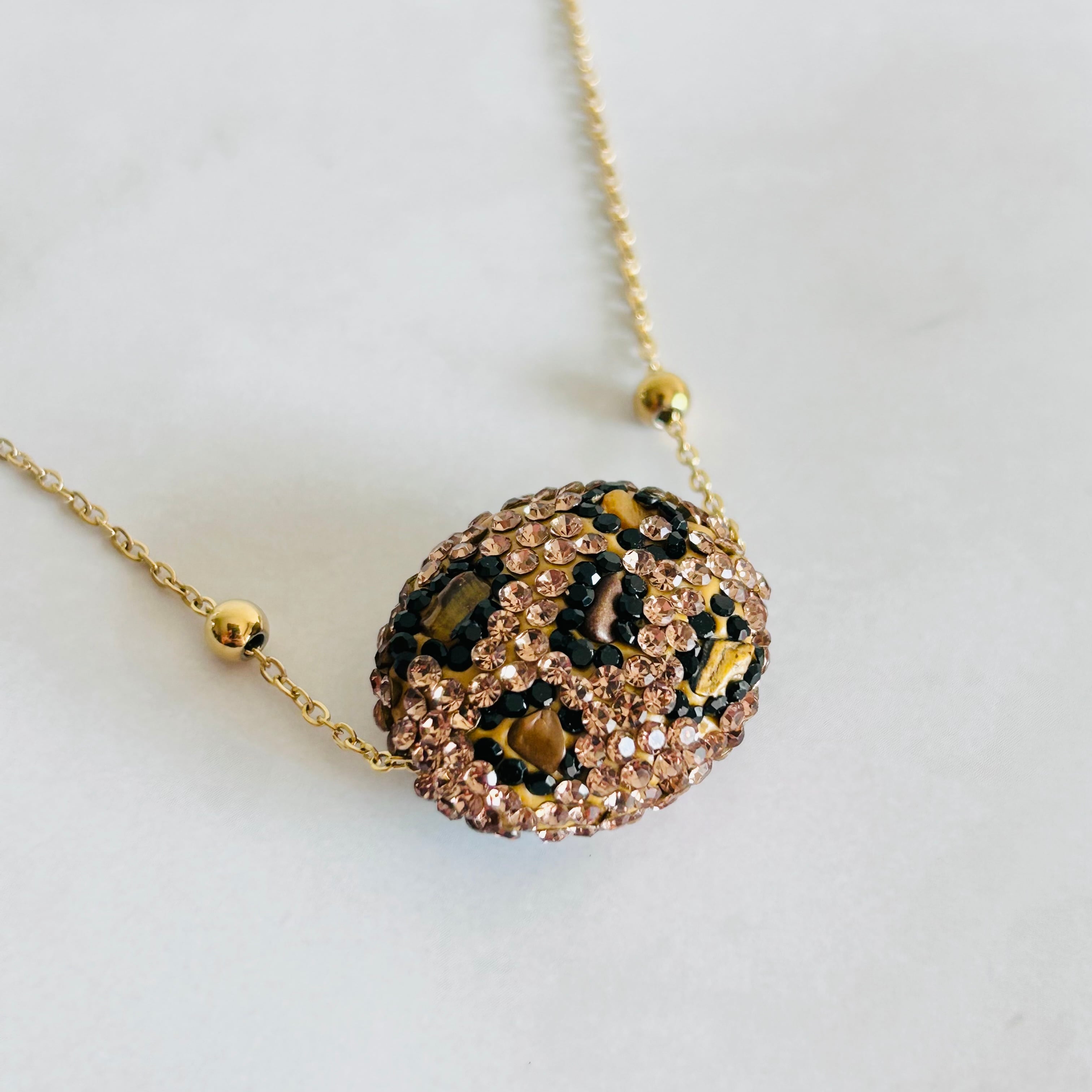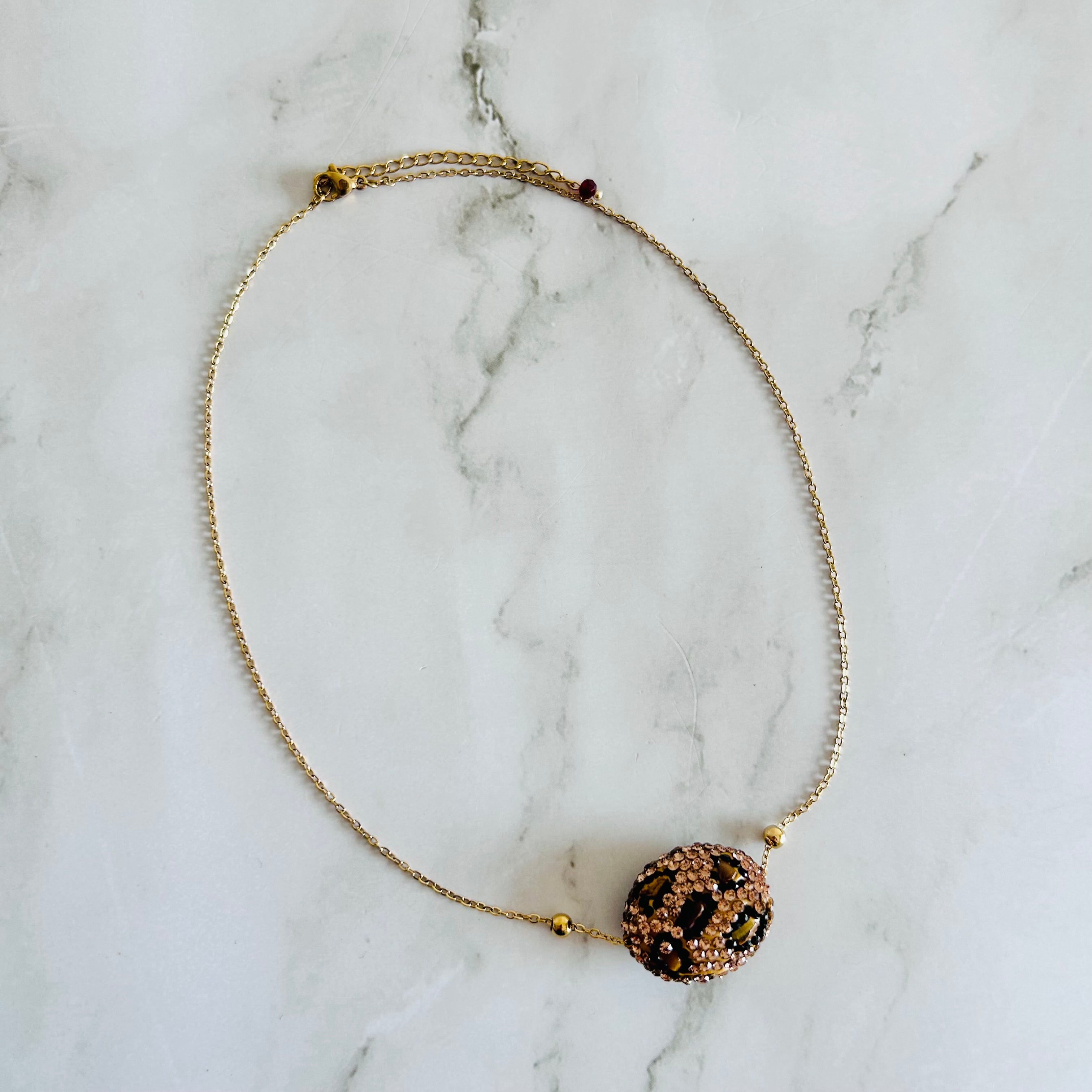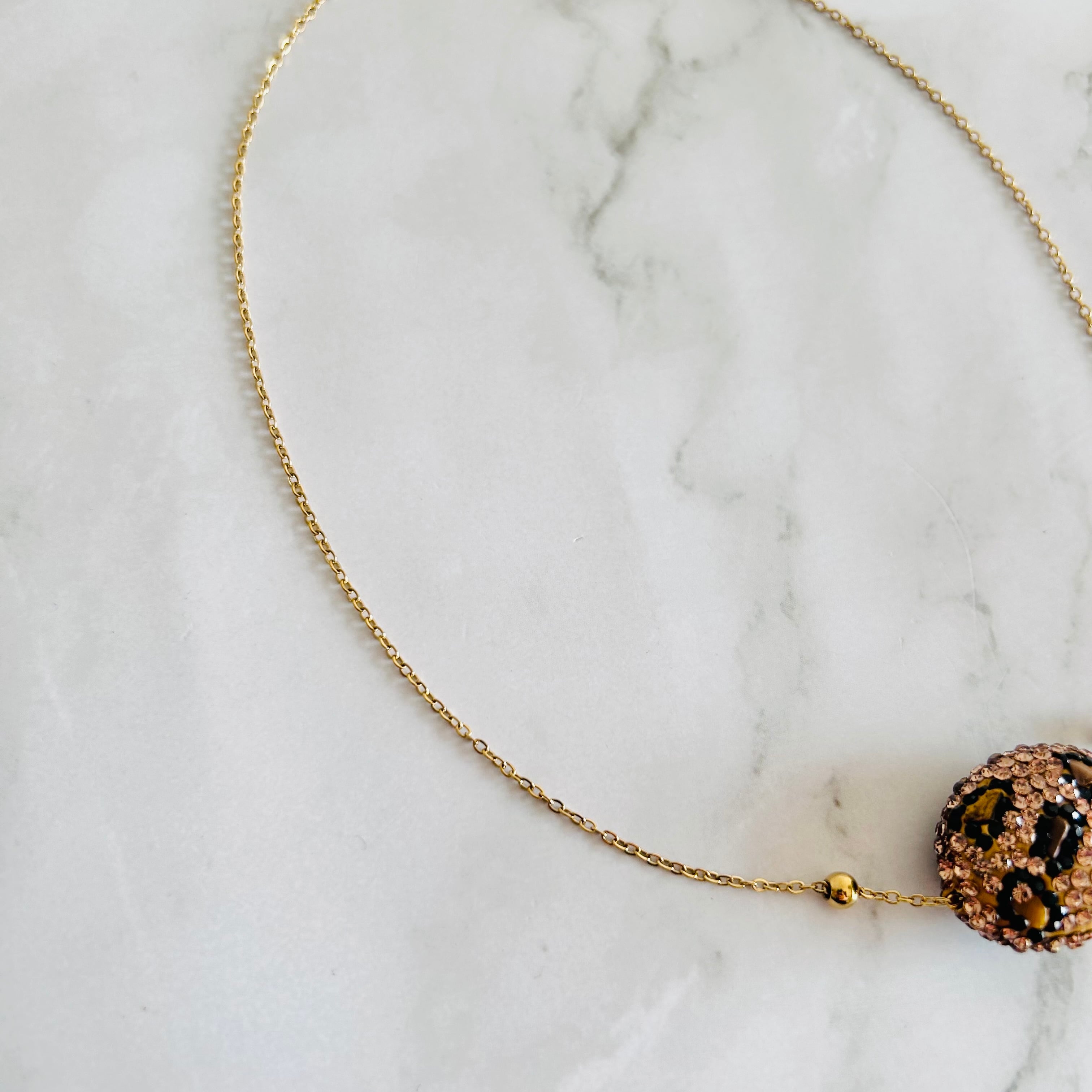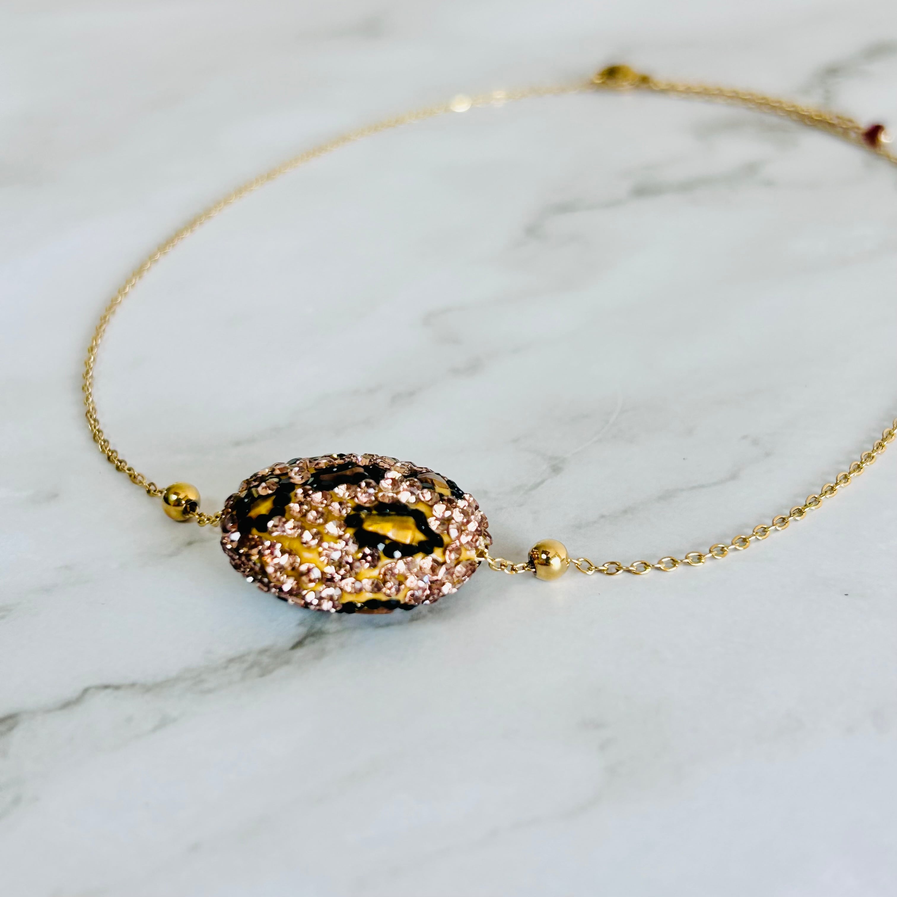 繊細なゴールドチェーンに、レオパード柄をモチーフにしたラウンドトップが輝くネックレスです。