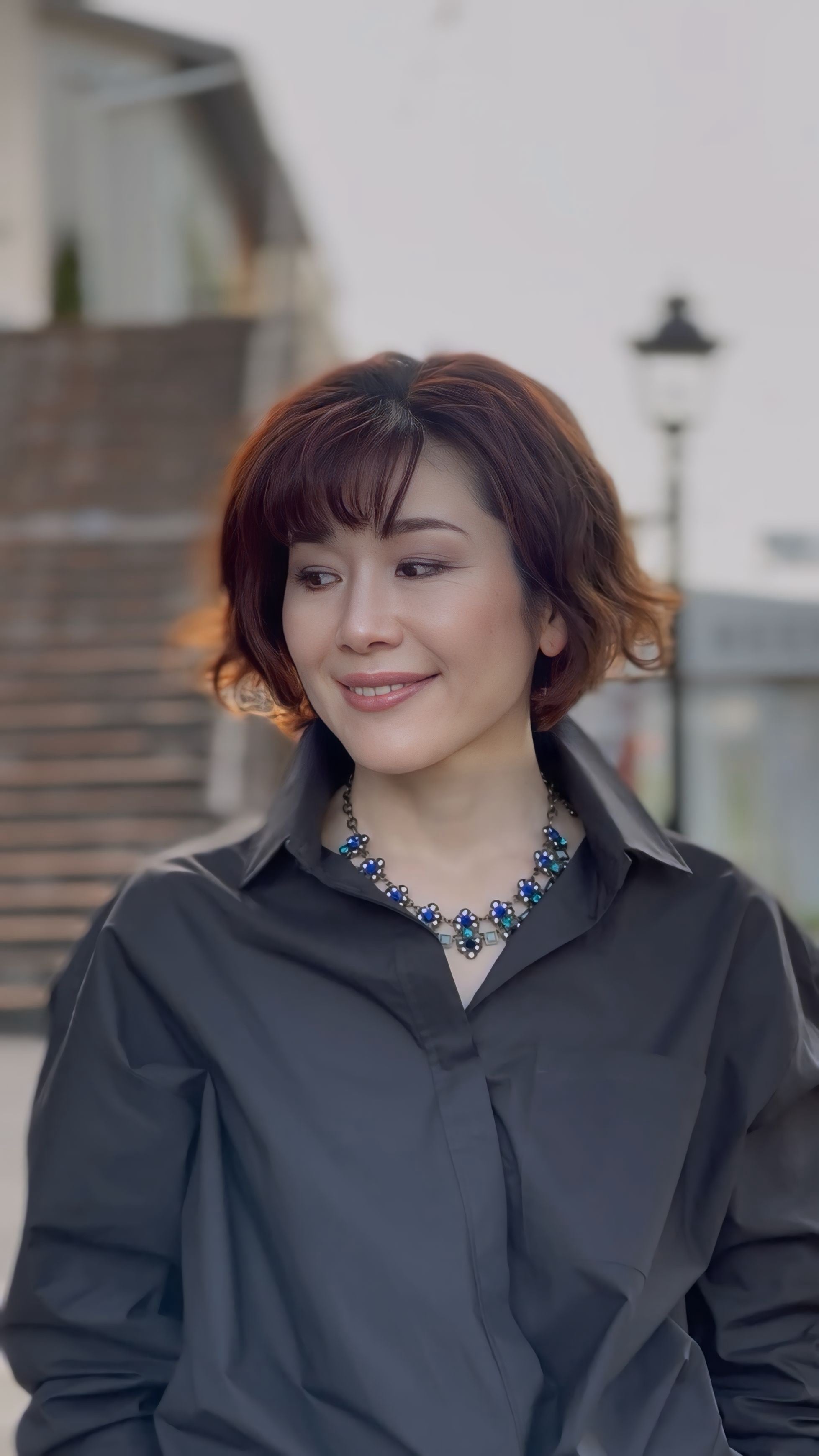 凛としたブルーの輝きが、冬の装いに静かな華やぎを添えるネックレスです。
