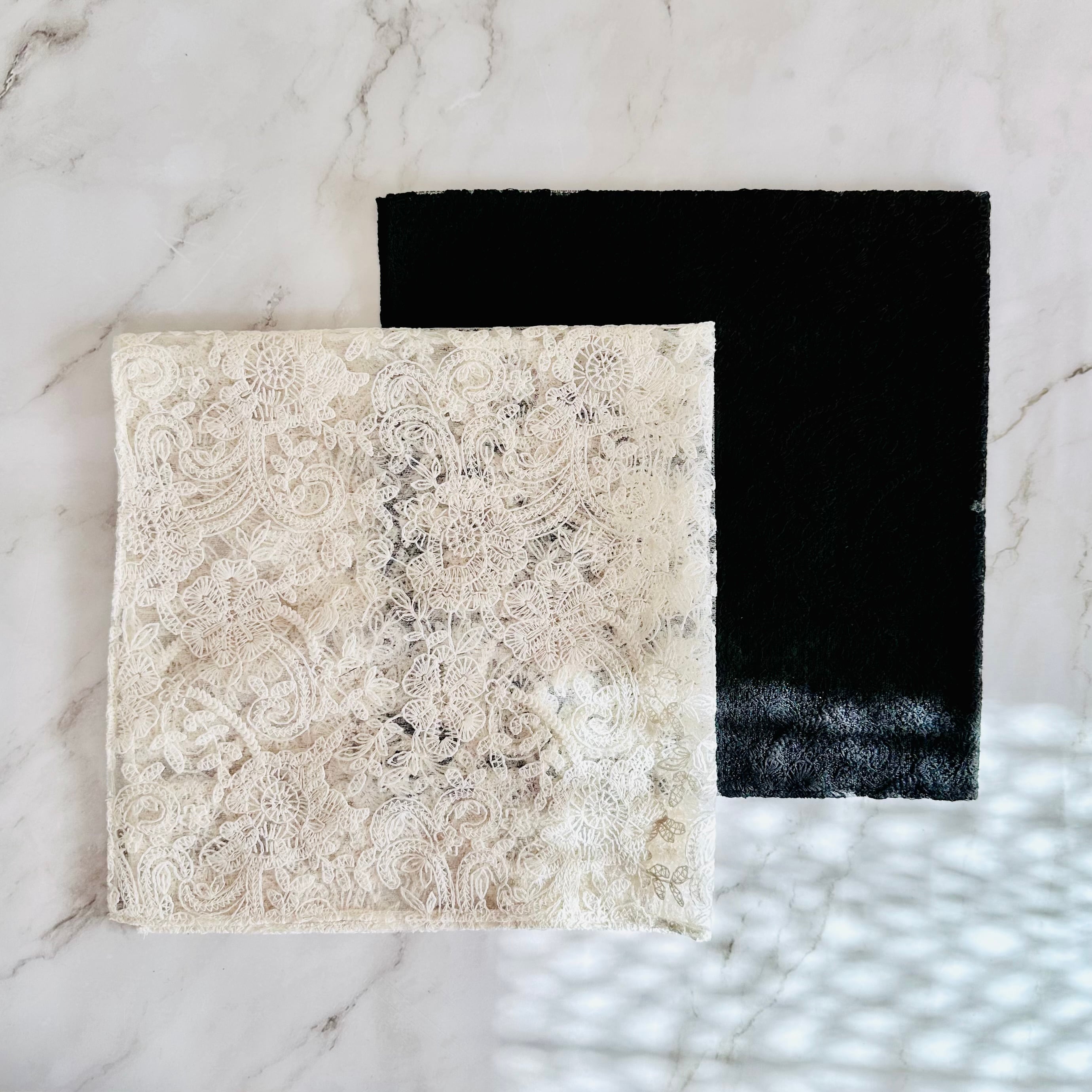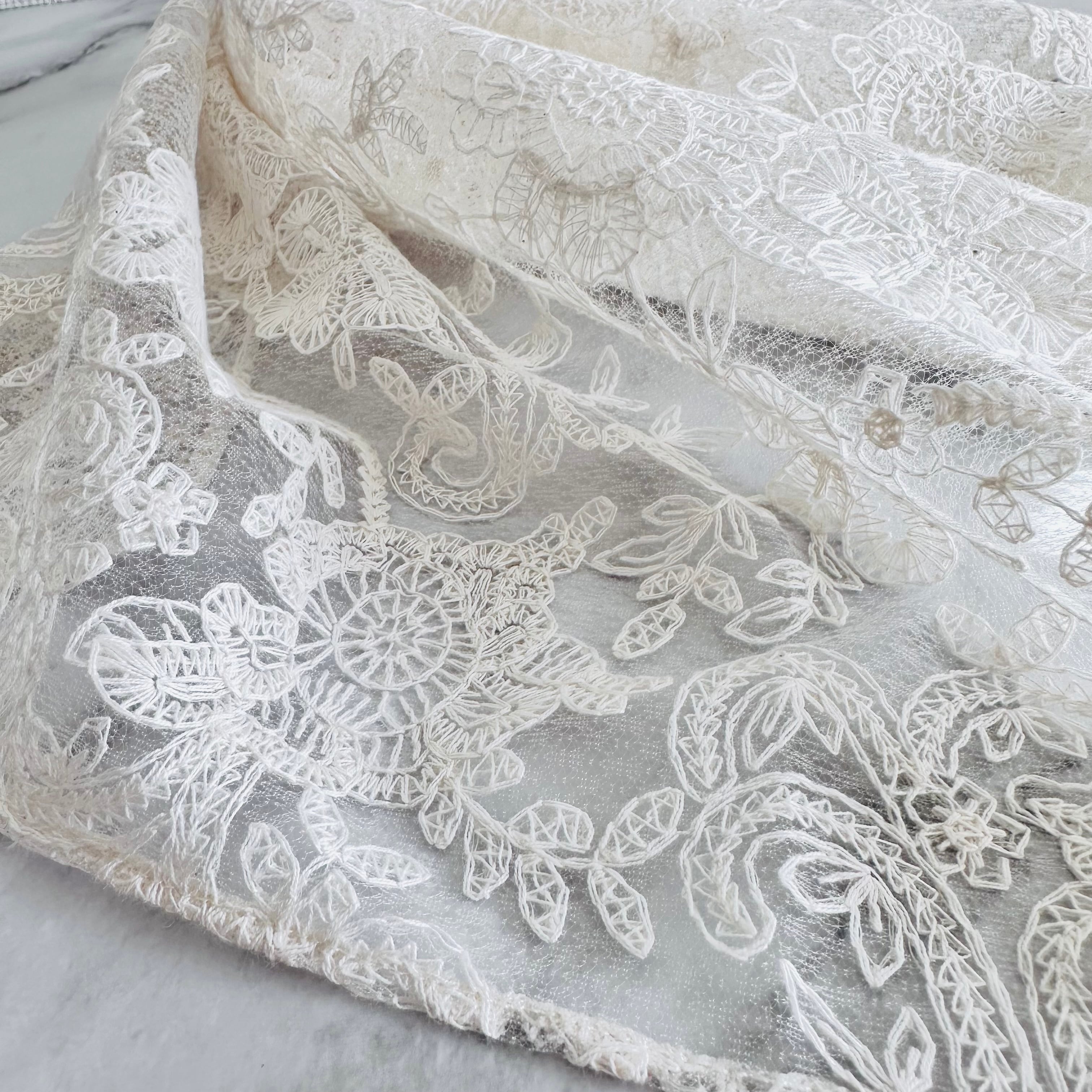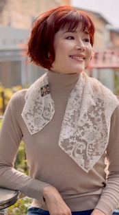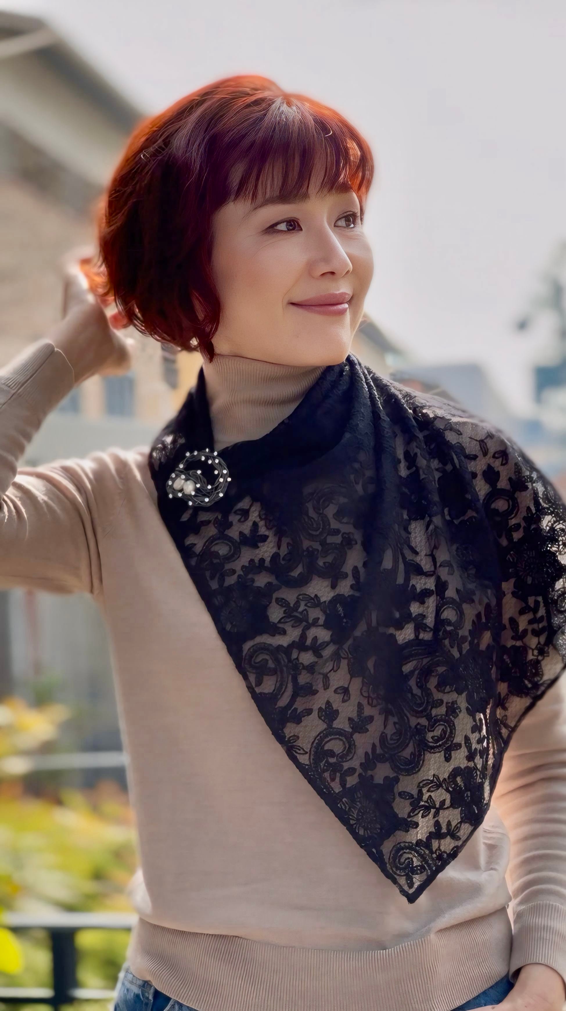 繊細なレースがふわりと光をまとう、エレガントなレーススカーフ。