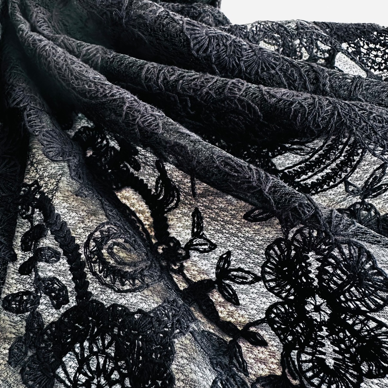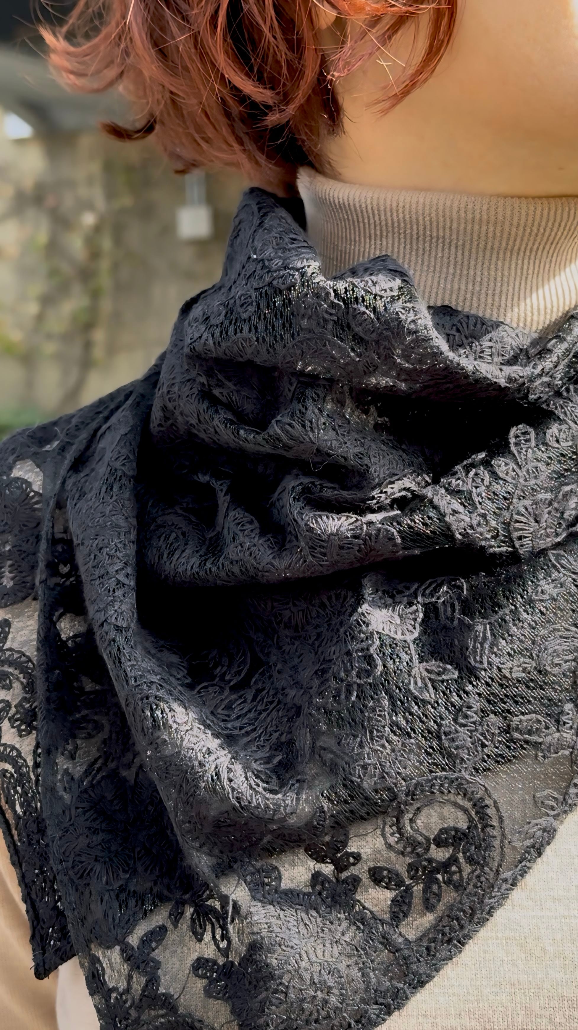 エレガントさと程よいモード感を併せ持つ、ベラジェンテらしいレーススカーフ。