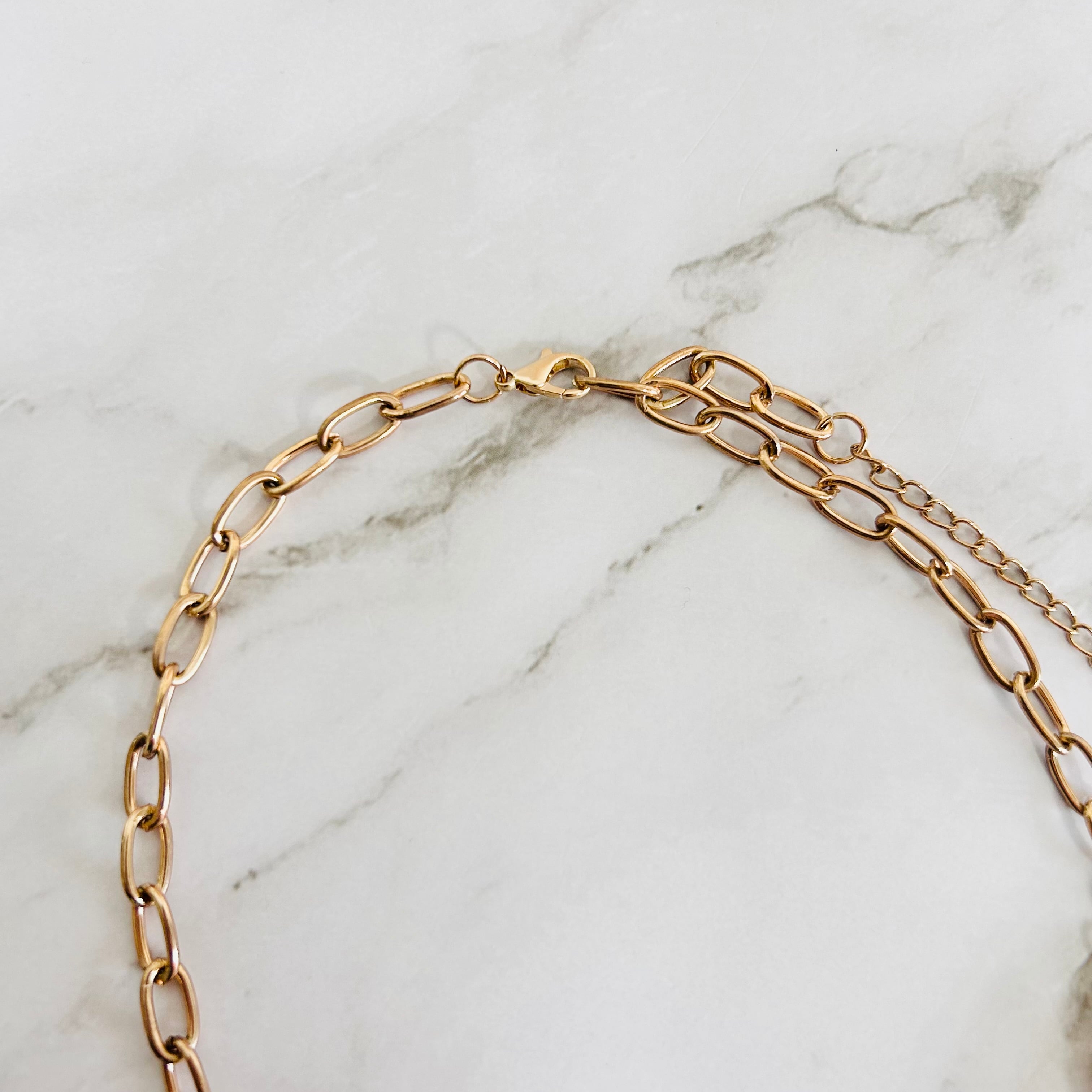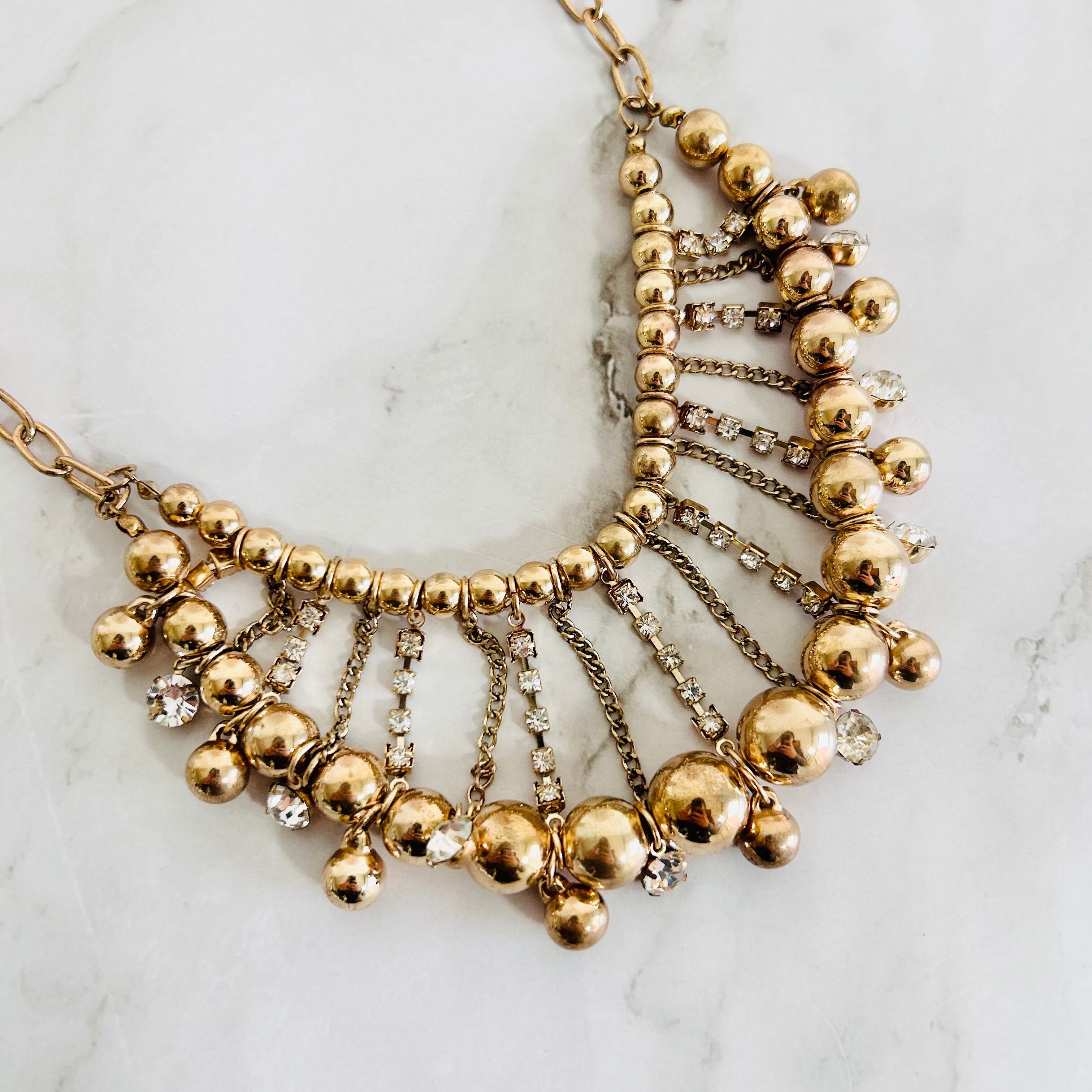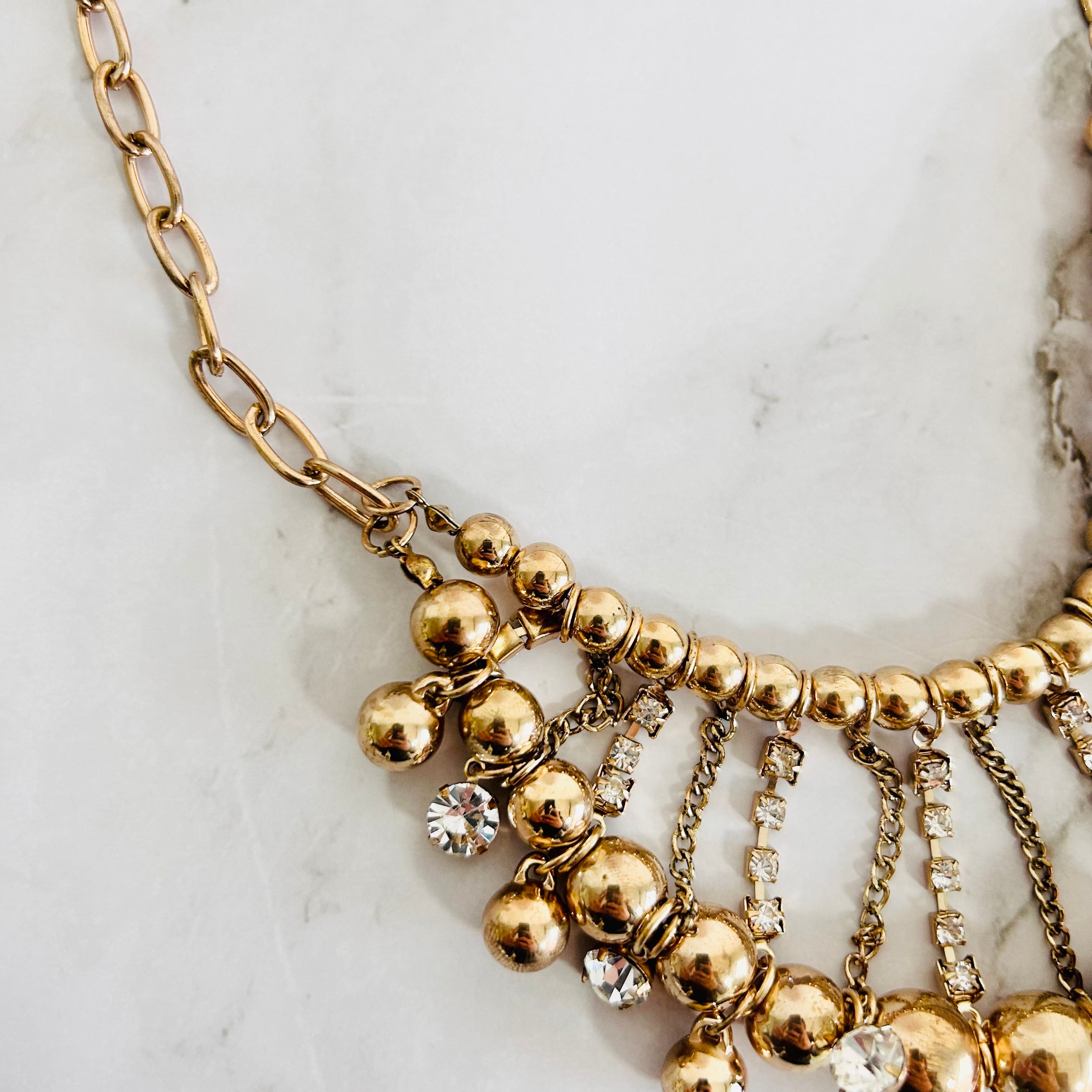 アンティークゴールドのボールパーツが連なり、華やかなリズムを描くように揺れるデザインネックレスです。