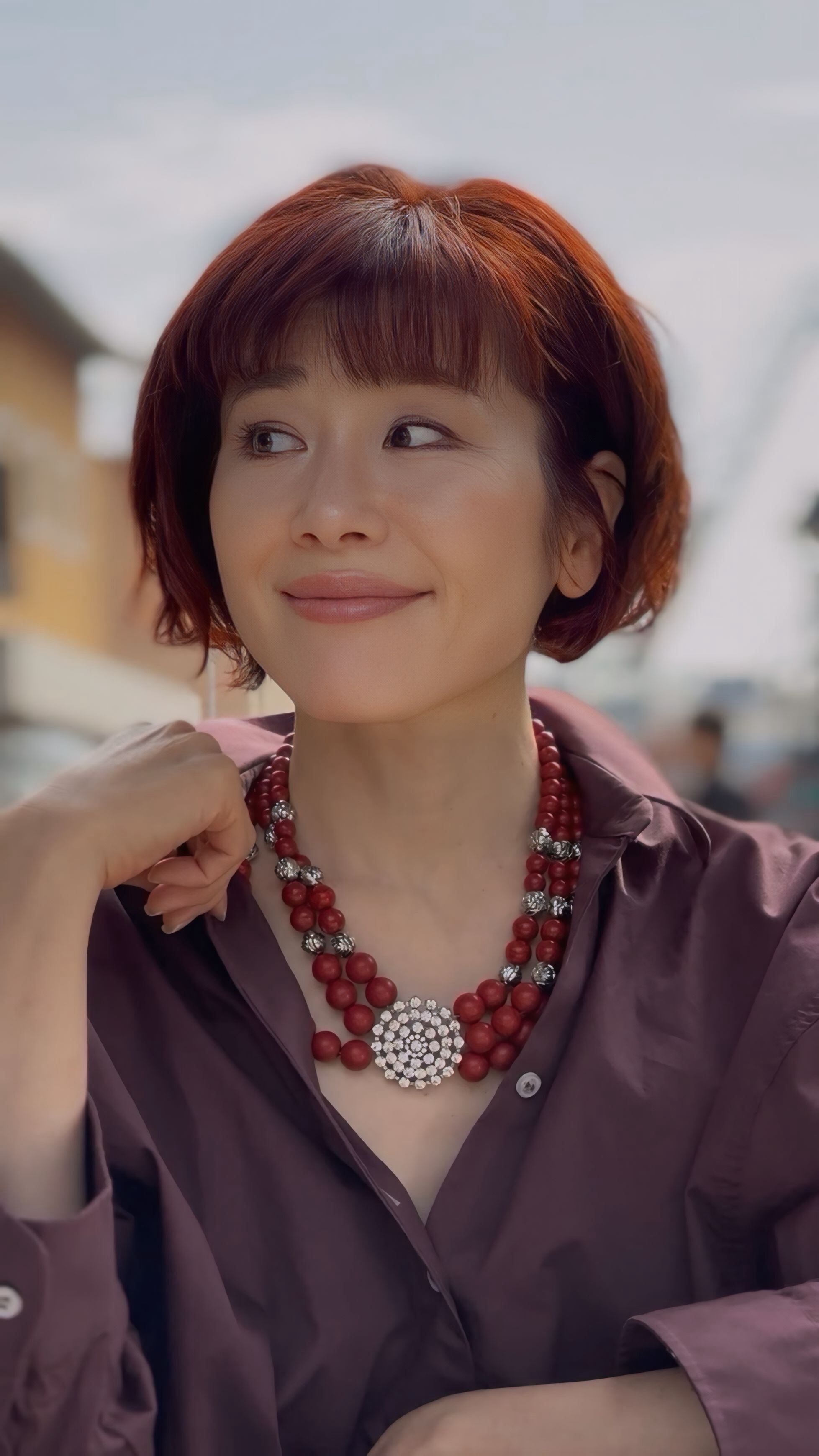 しっかりとしたボリュームがありながら、深い赤の発色が上品なため強すぎず、大人の女性の装いに美しいアクセントを添えてくれます。