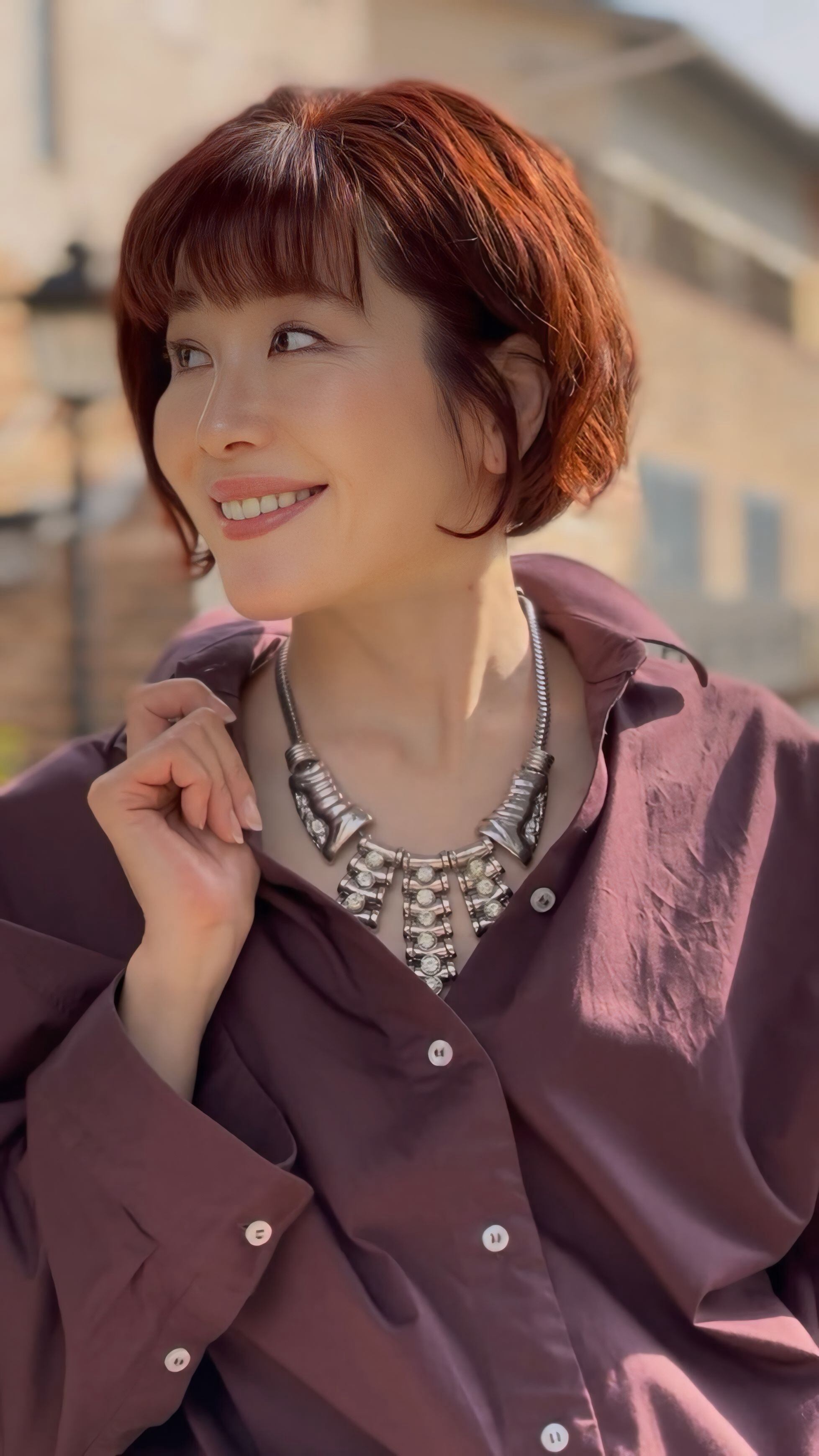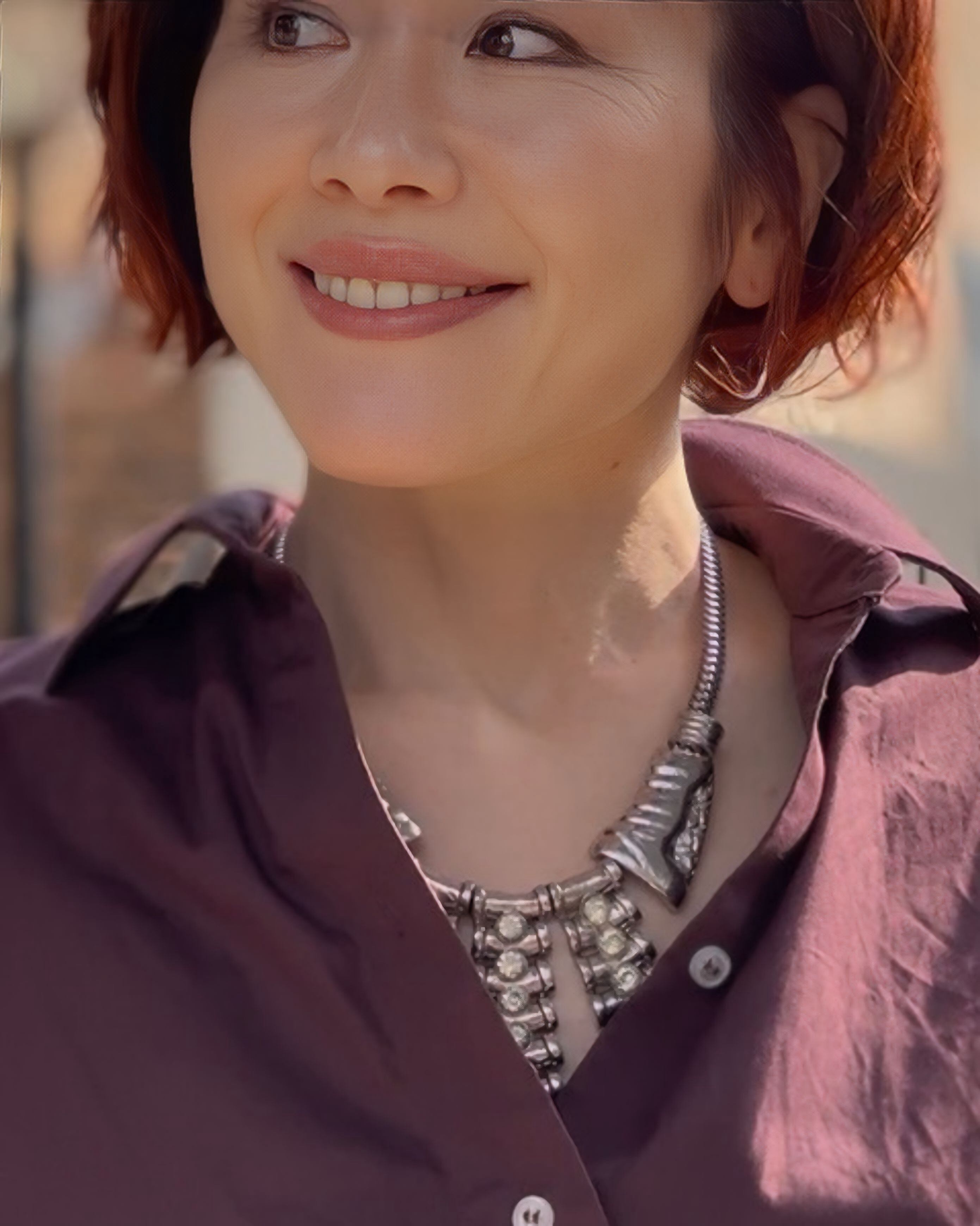 シンプルなニットに合わせると、メタルの質感が際立ち、スタイル全体に深みのあるアクセントをプラスできます♡