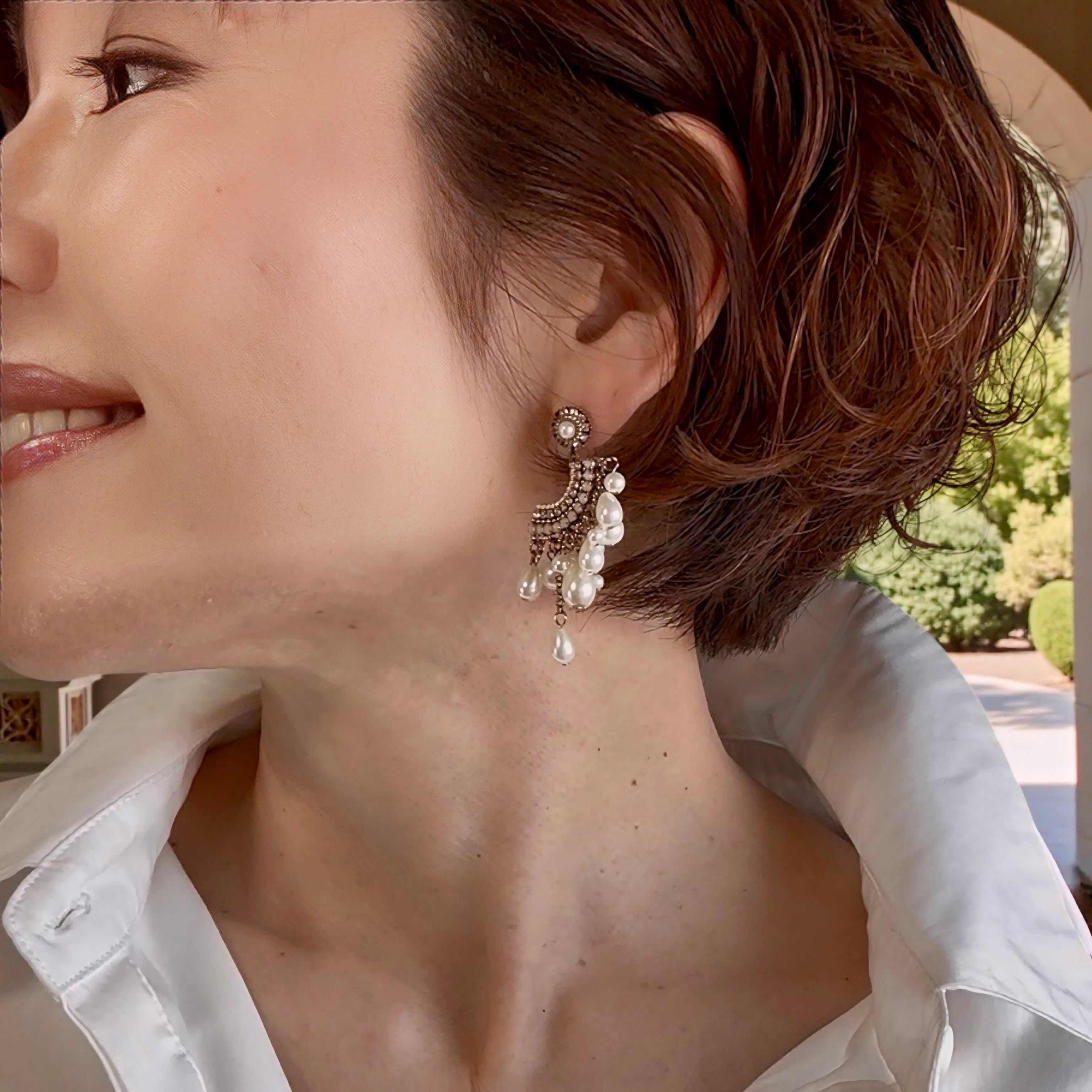 繊細なビジューラインと、艶やかなファッションパールを贅沢にあしらったピアス・イヤリングです。