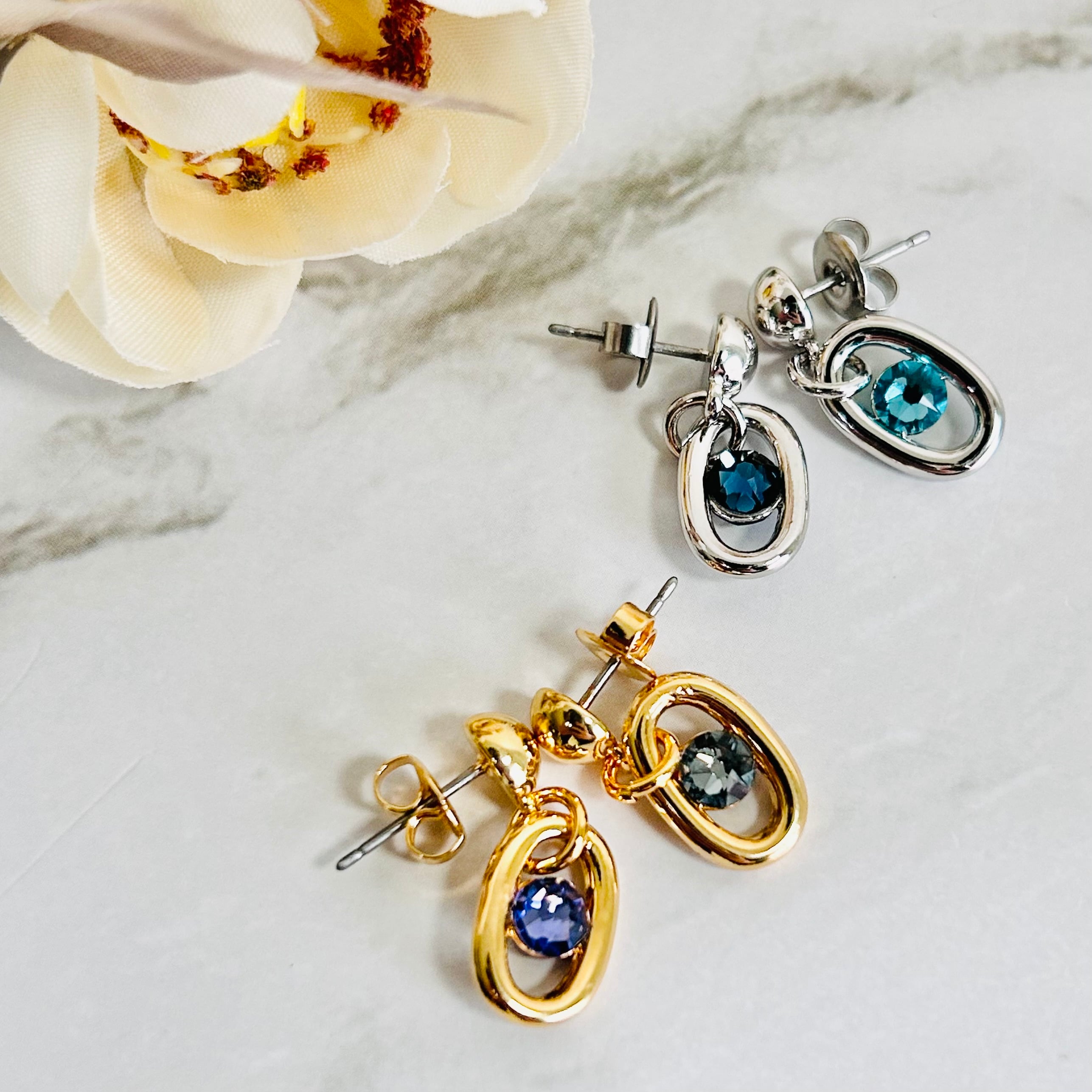 ネックレスと同じデザインエッセンスを落とし込み、統一感のあるスタイリングが完成します。