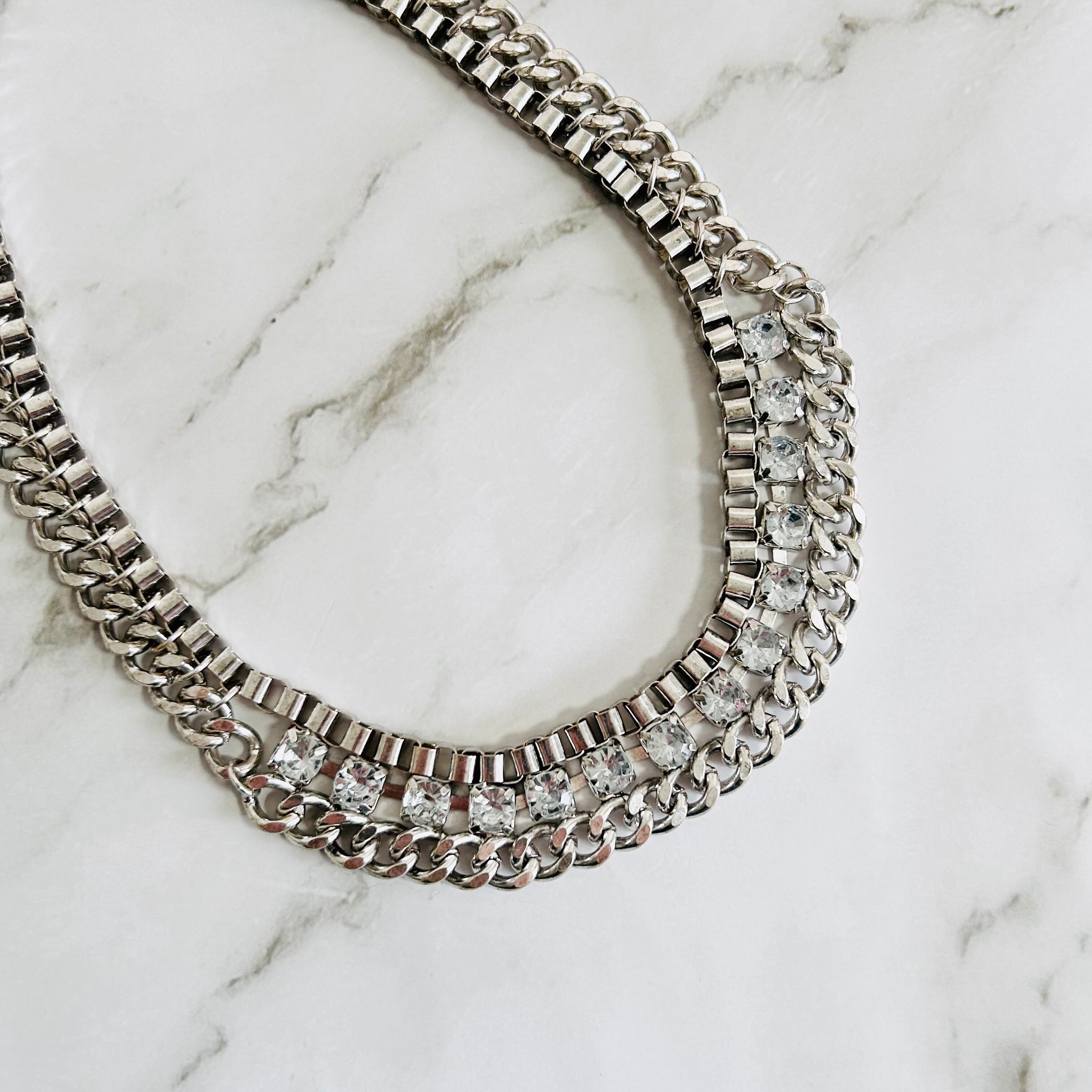 異なる表情のチェーンを組み合わせることで、奥行きと立体感のある仕上がりになっています。