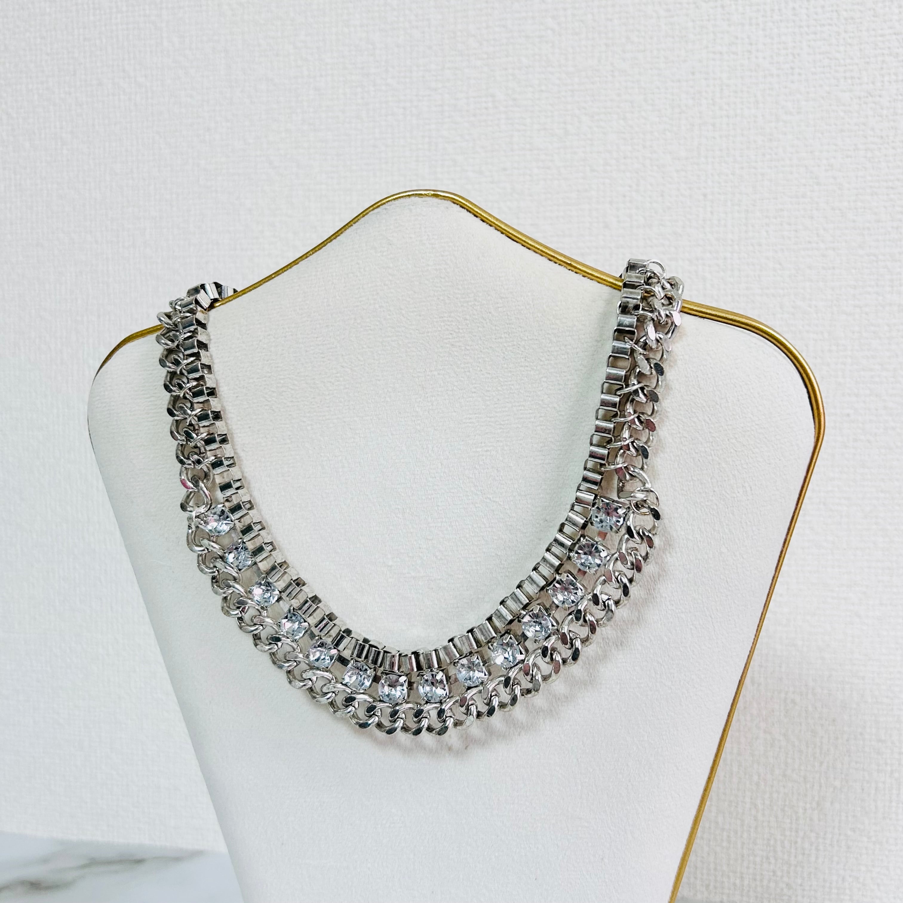 いつもの装いにさクールな華やかさを添えてくれるネックレスです。