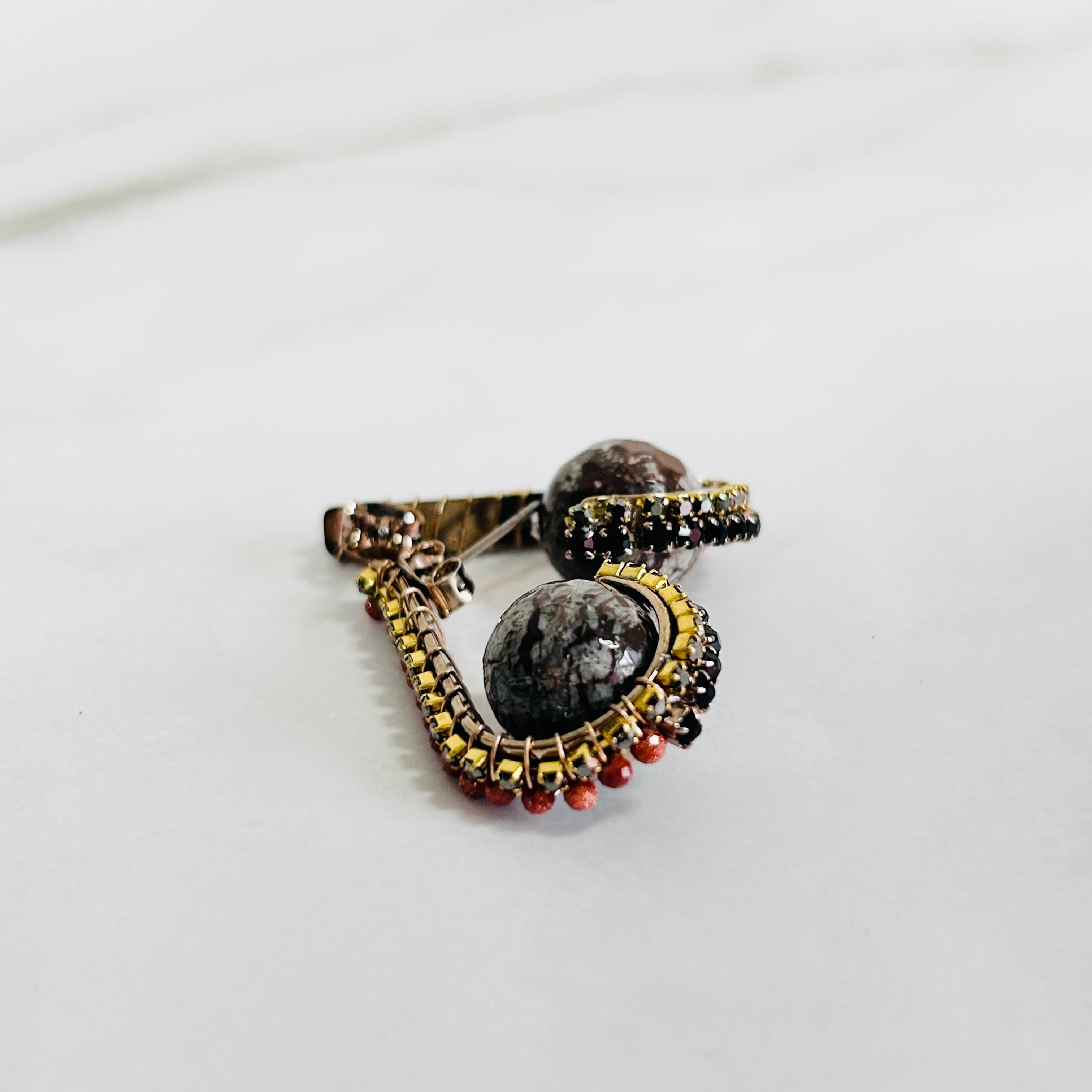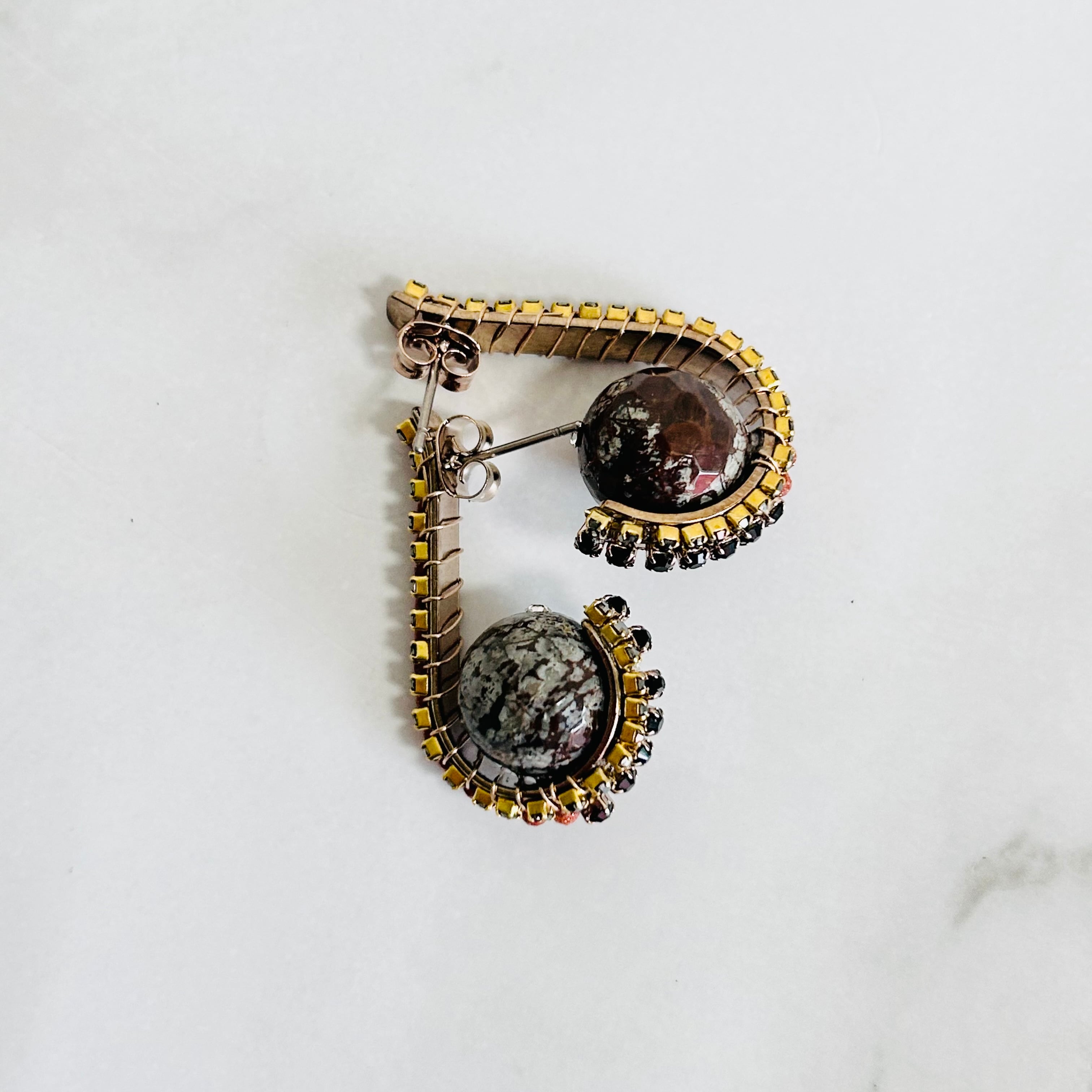 天然石タイプは、落ち着き落ち着いたオレンジ系のクリスタルに深みのある表情を持つ天然石を使用し、個性を感じさせる仕上がりに。