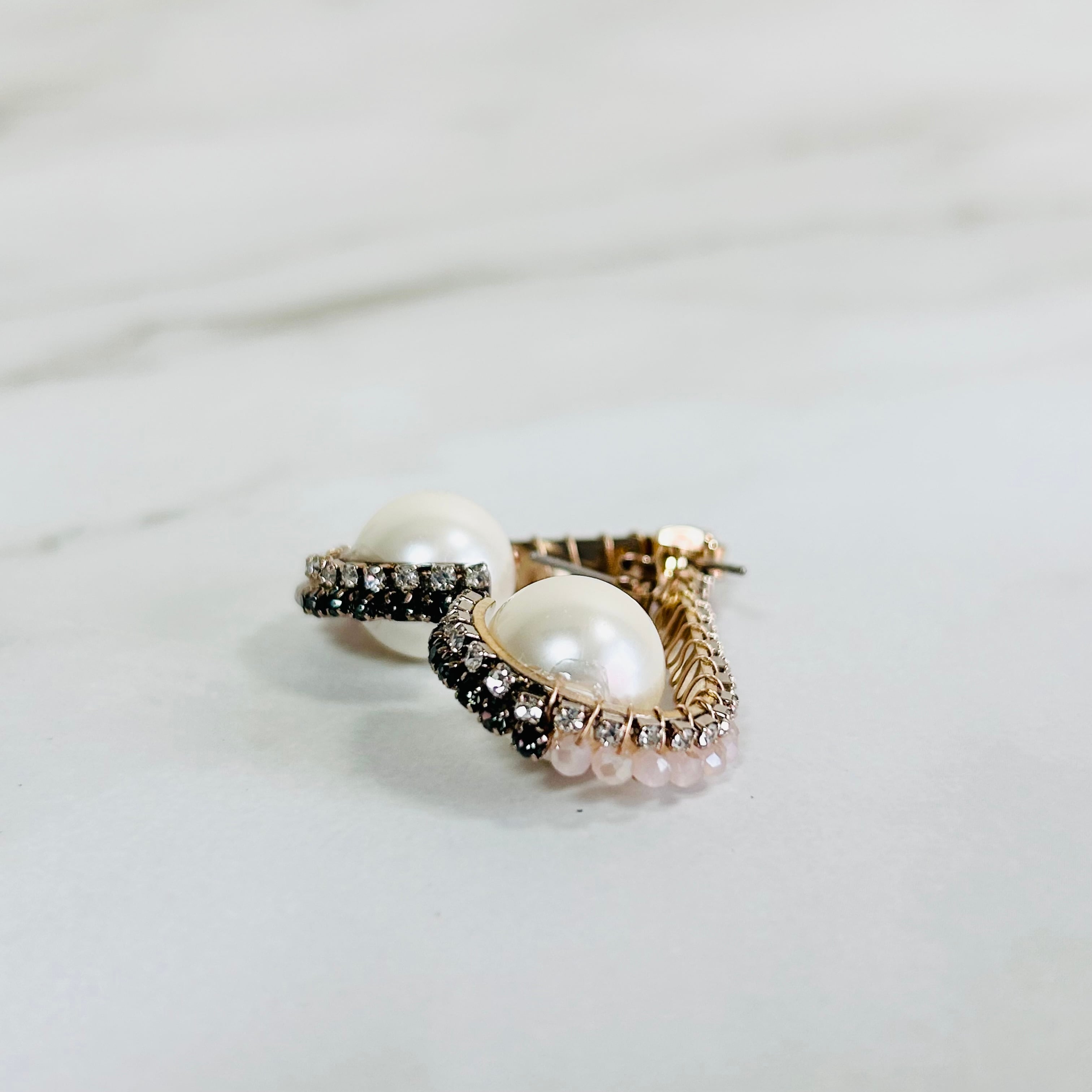 パールタイプは、優しいピンクのクリスタルで、中央には艶やかなパールをあしらい、やわらかく上品な印象に。