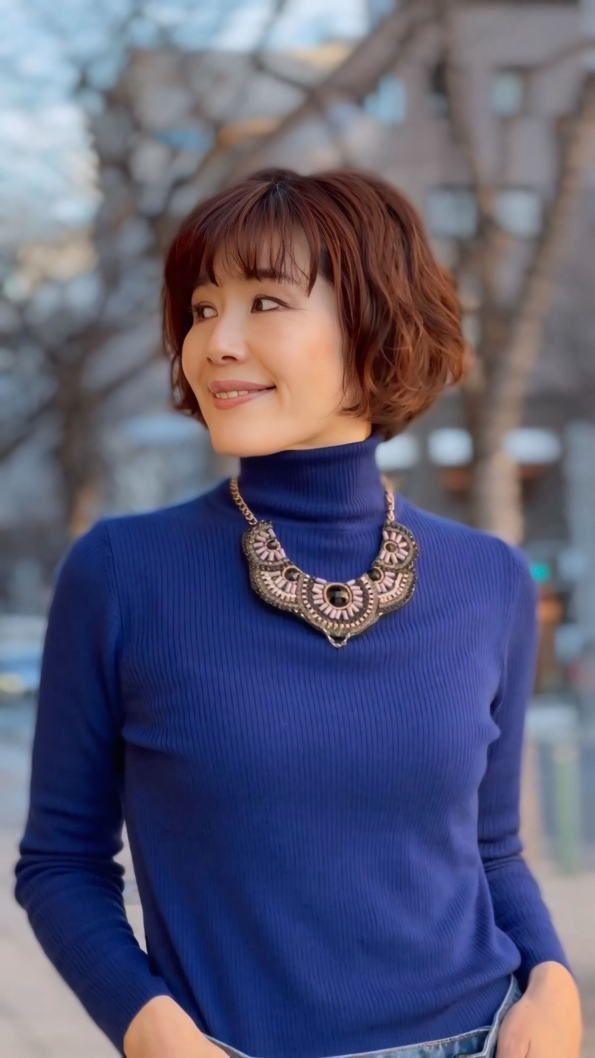 深みのあるブラックと柔らかなグレージュ、ゴールドのコントラストが首元に自然な立体感を与え、装い全体を引き締めながらも華やかさを添えてくれます。