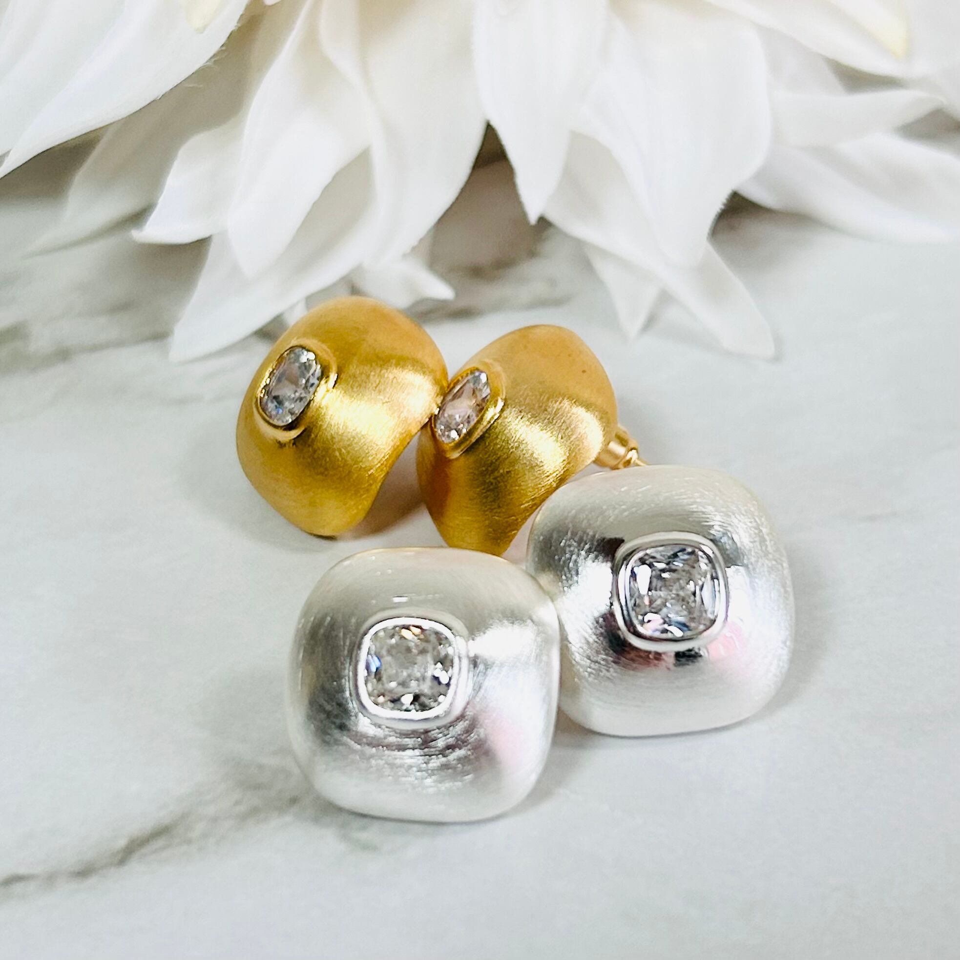 マットゴールドとシルバーの2色展開でご用意したピアス・イヤリングです。