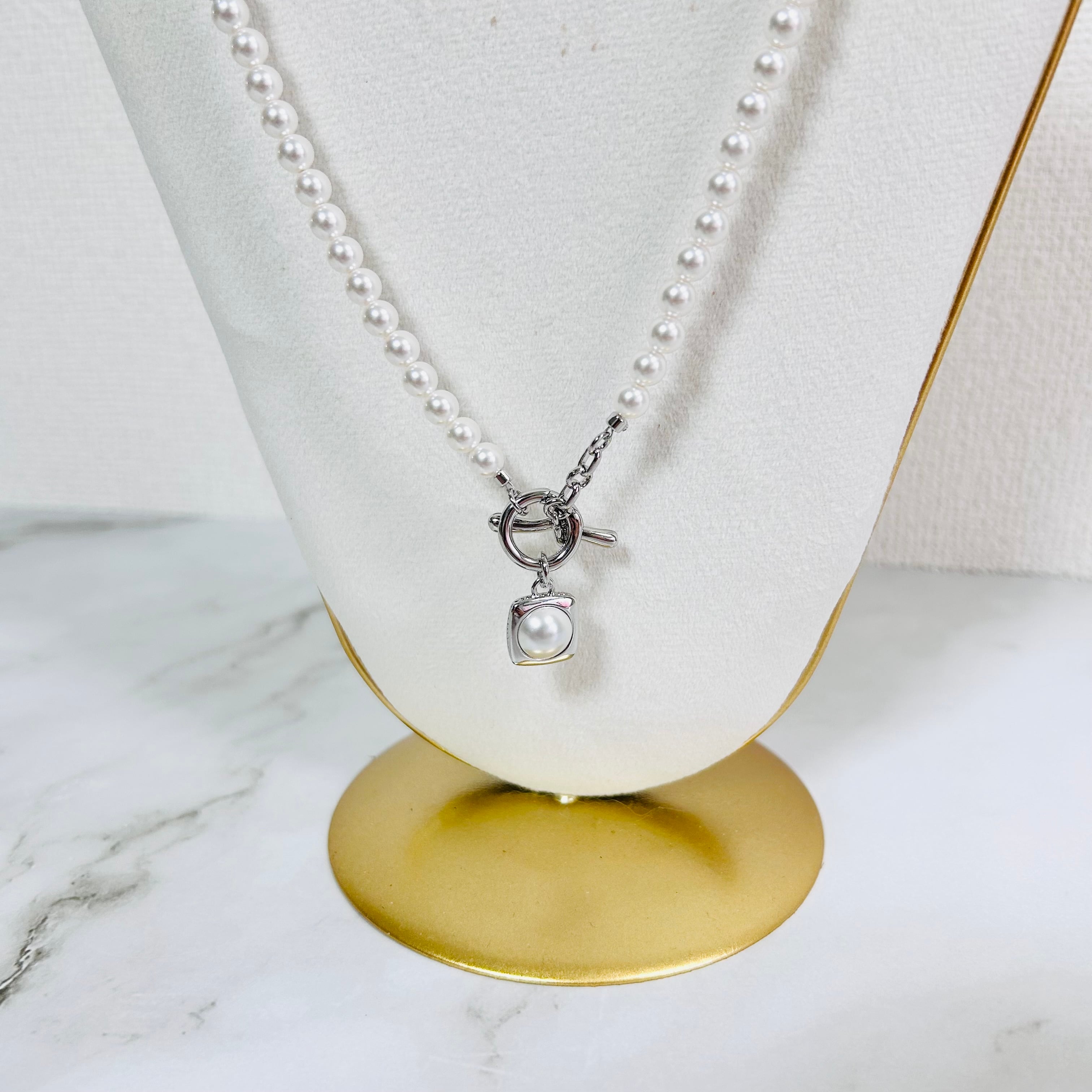 トップのスクエアモチーフは取り外しが可能で、シンプルなパールネックレスとしてもお楽しみいただける2Way仕様!