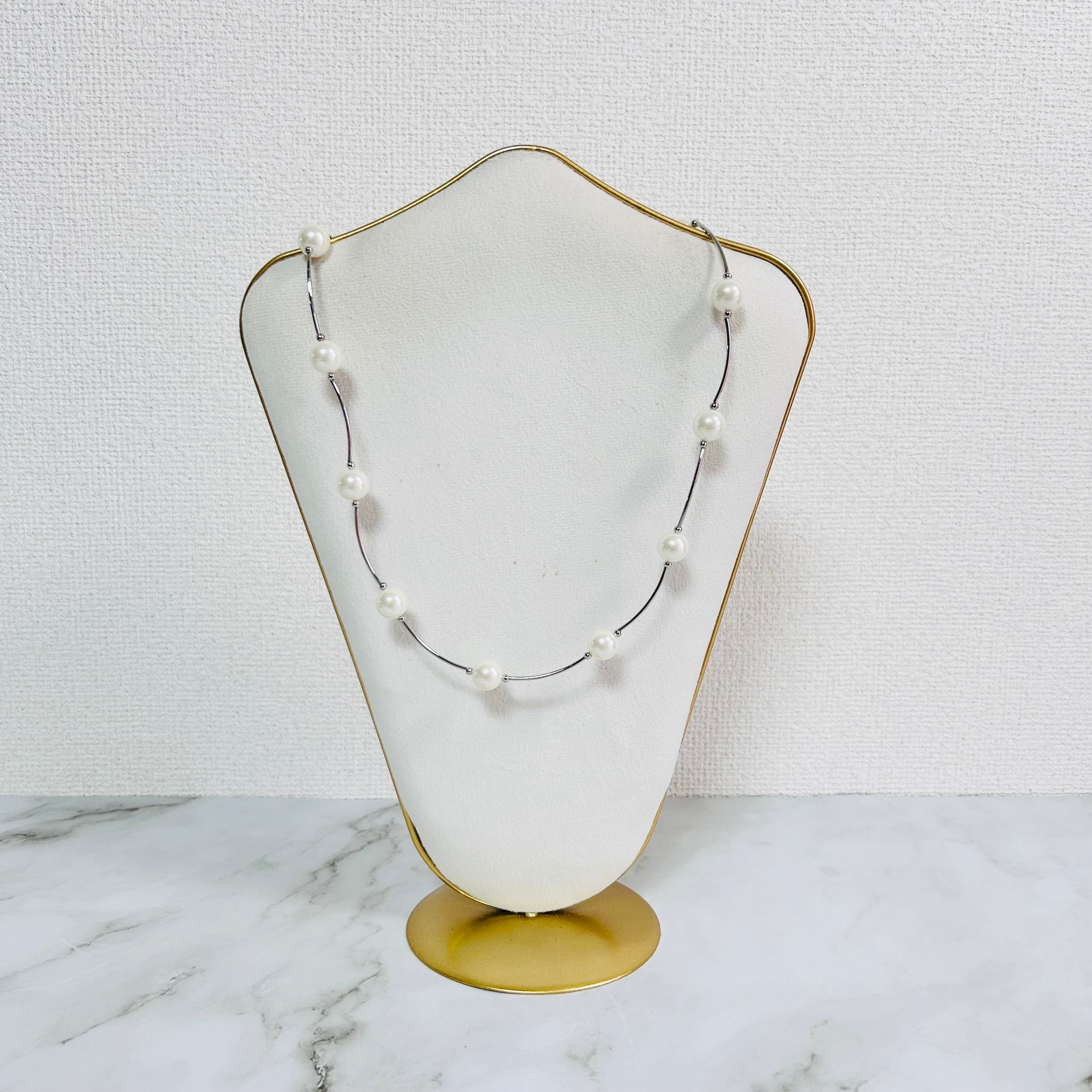 直線ではなく緩やかなカーブを描くデザインのため、首元に自然に沿い、動くたびに美しいリズムを感じさせてくれます。