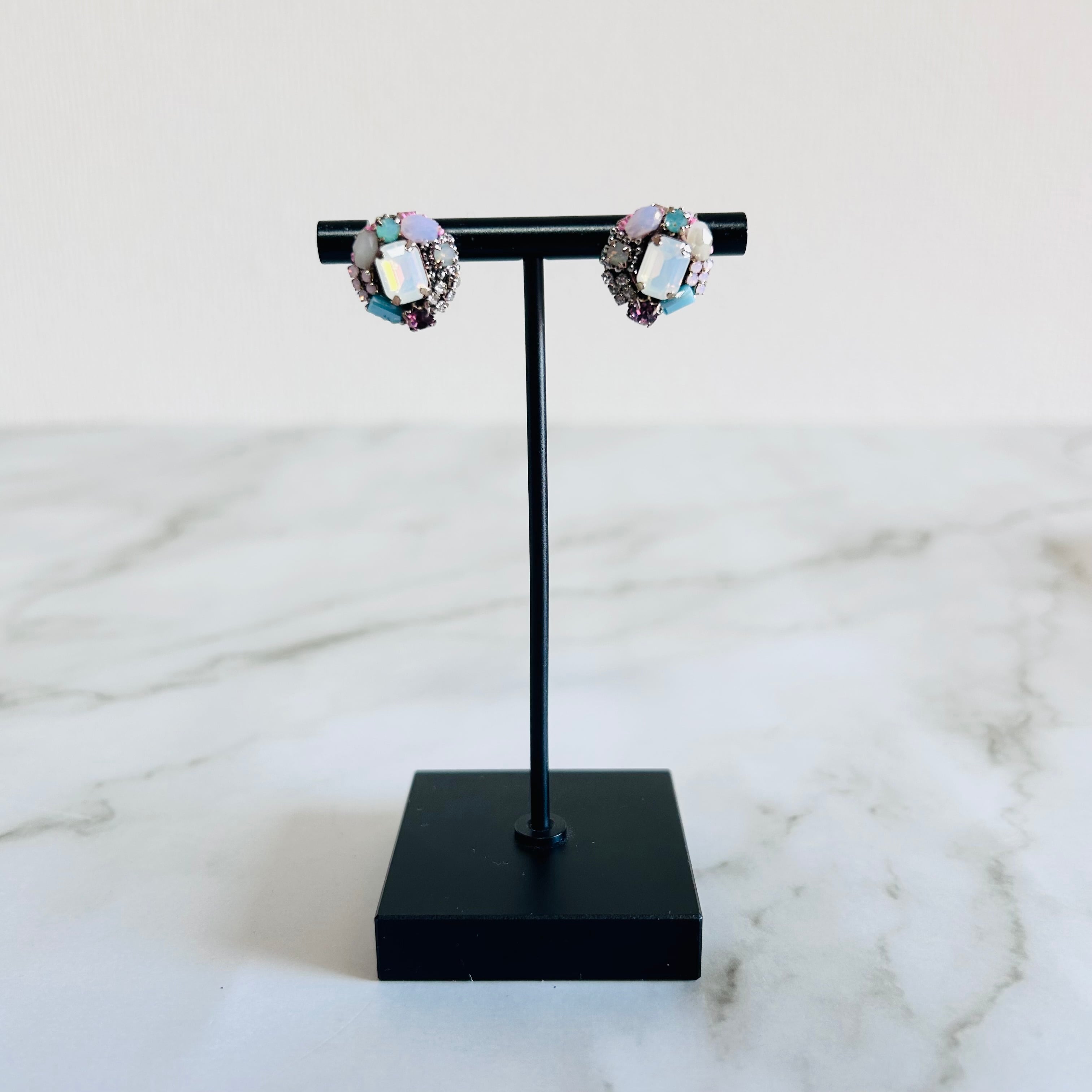優しい色合いのクリスタルストーンをバランスよく組み合わせた、繊細で華やかなピアス・イヤリングです。