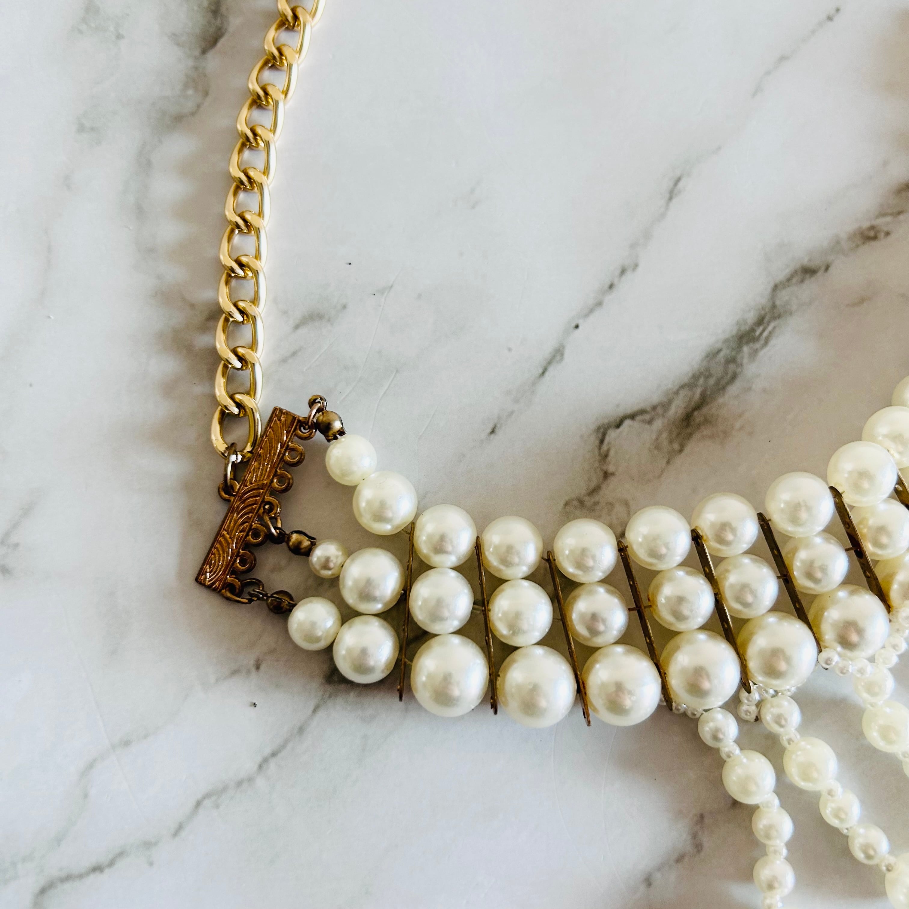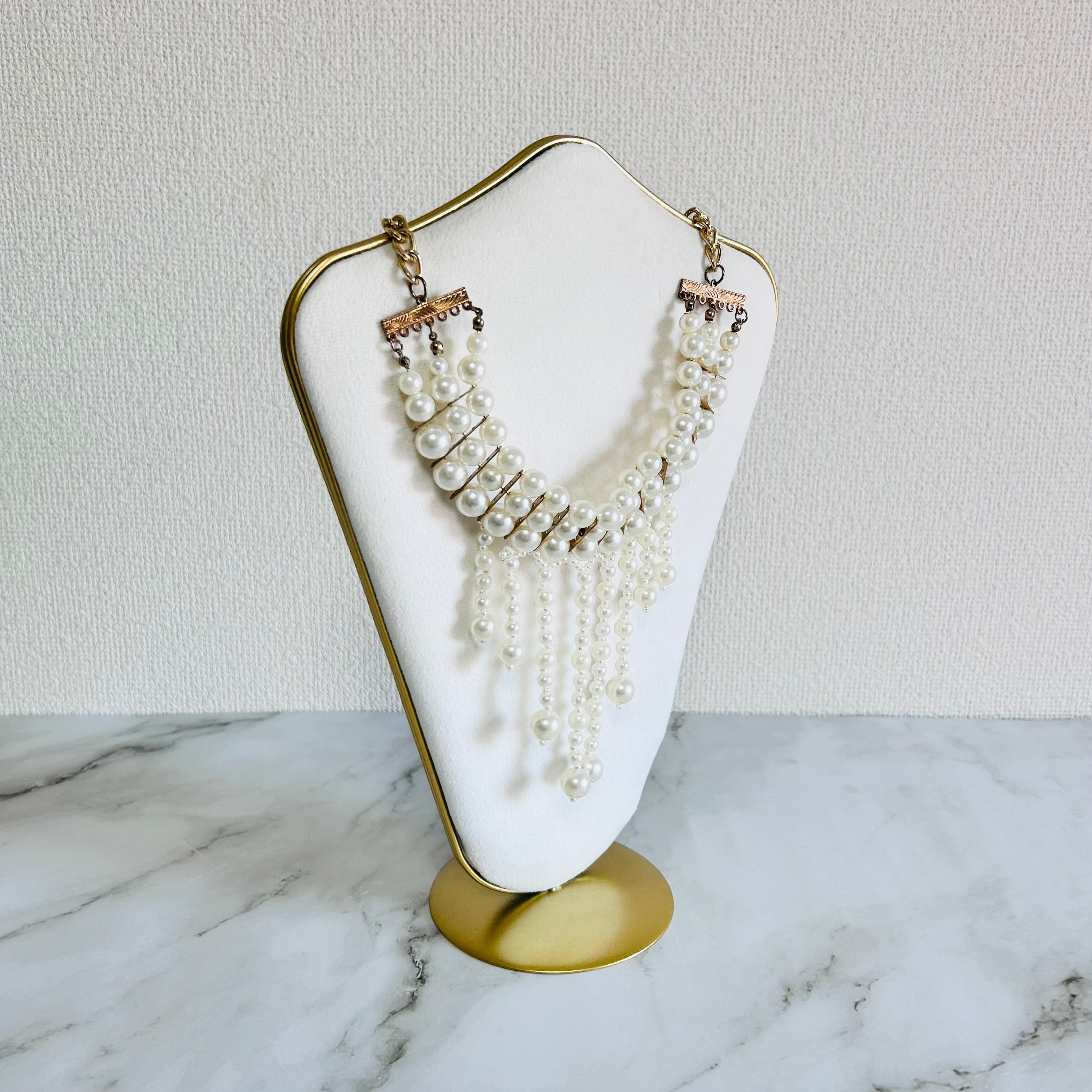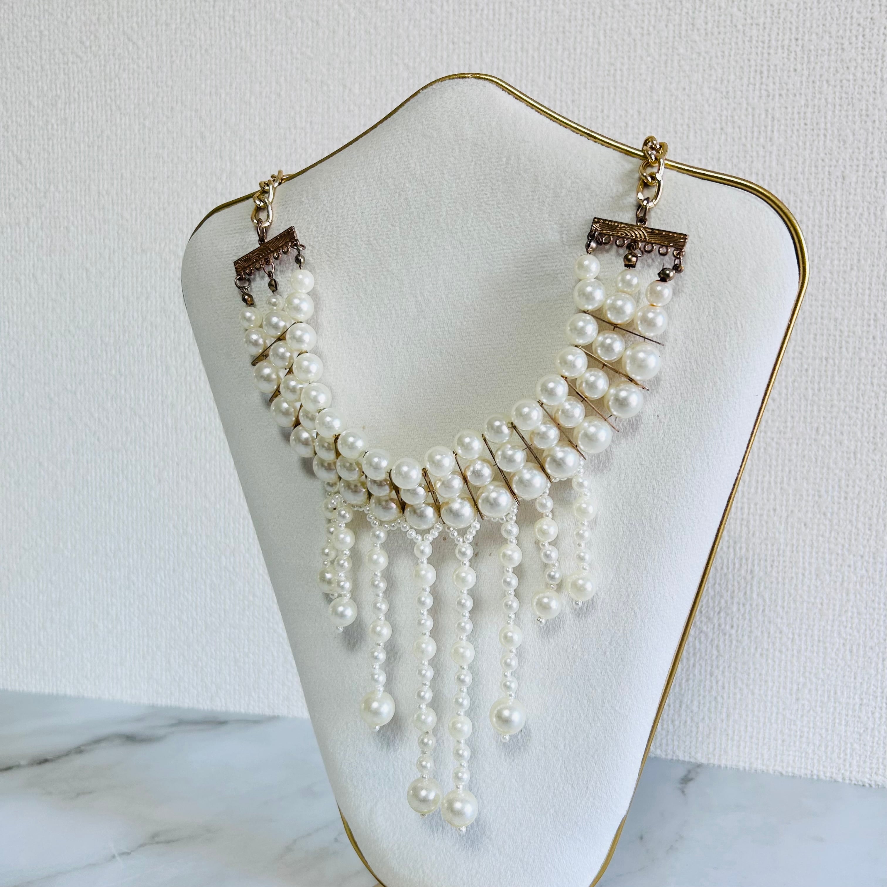 艶やかなパールを贅沢に連ね、流れるようなフリンジデザインに仕上げた、気品漂うネックレスです。