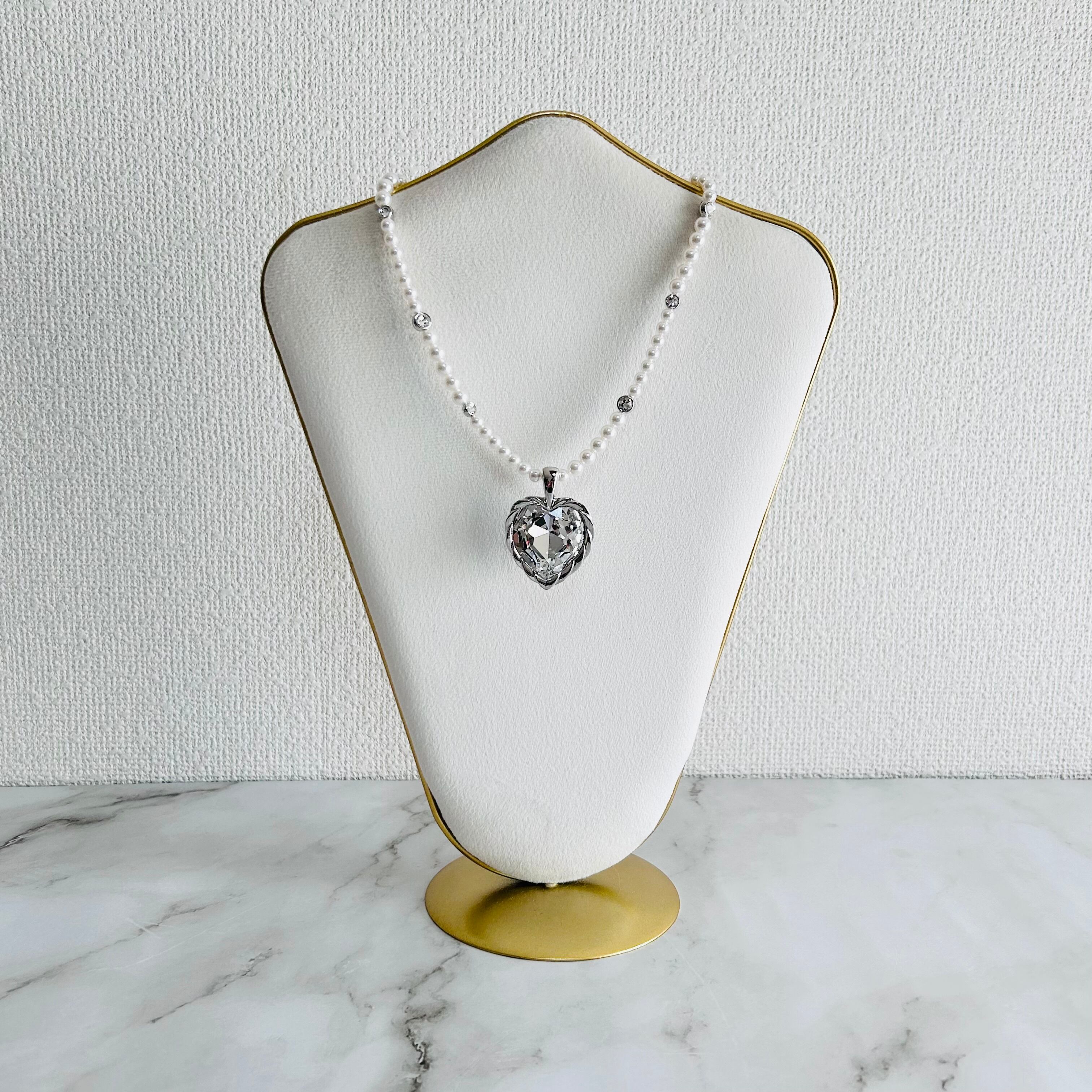 スワロフスキー社の上質なパールと、繊細に輝くクリスタルを贅沢にあしらい、トップには美しい煌めきのクリスタルハートをプラスした