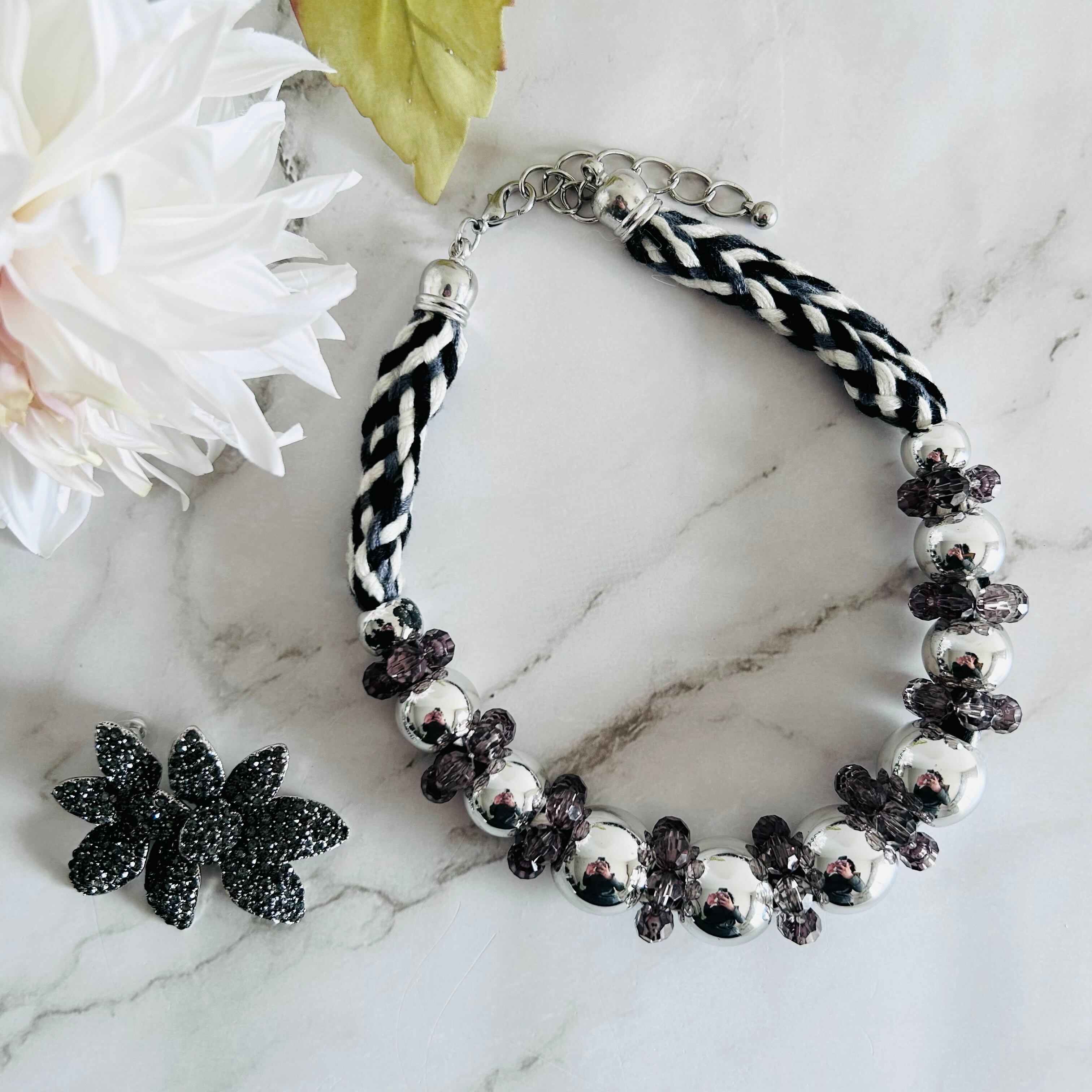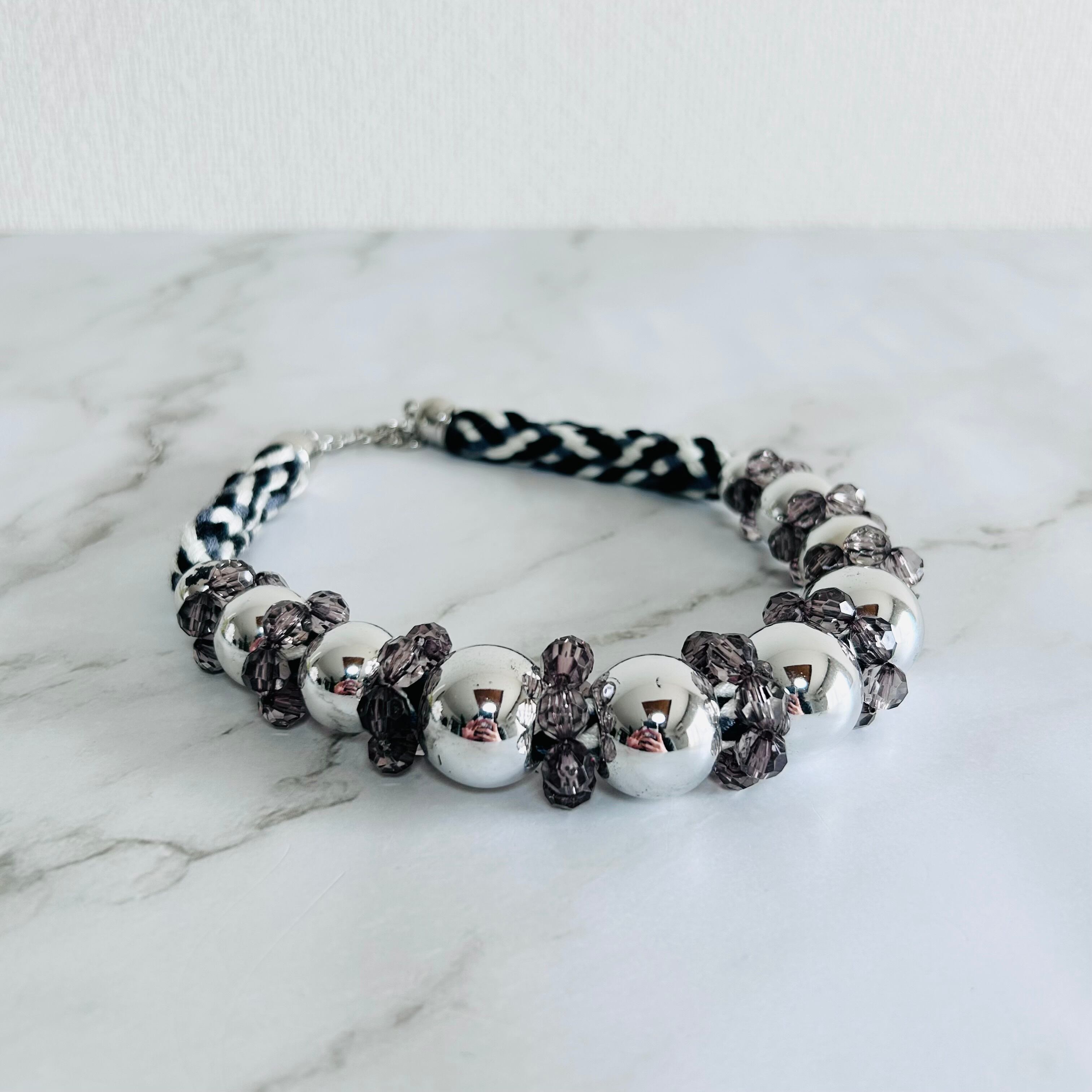 スモーキーカラーのビーズボールを花のようにあしらい、
