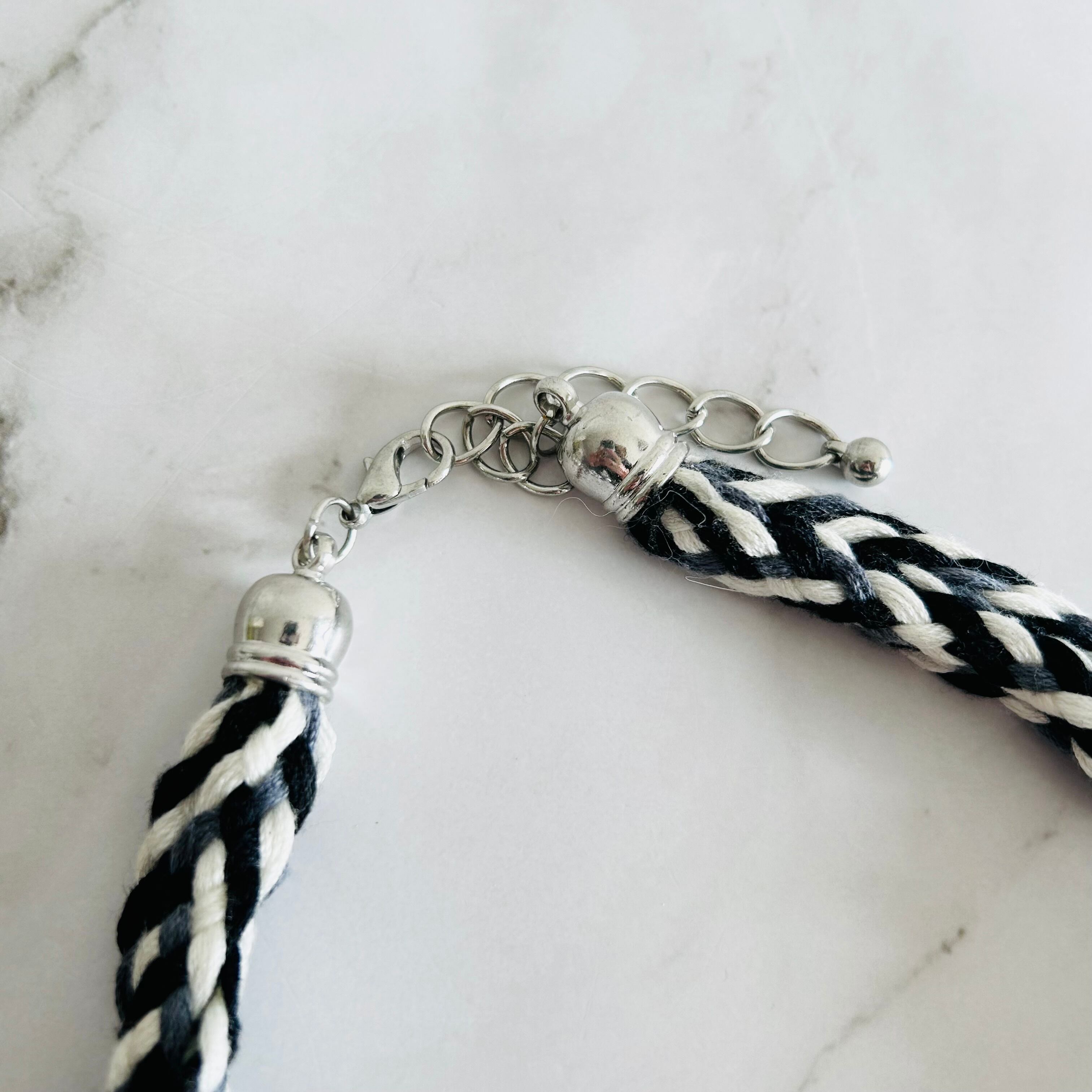 ブラックとホワイト、グレーのツイストコードを組み合わせた、