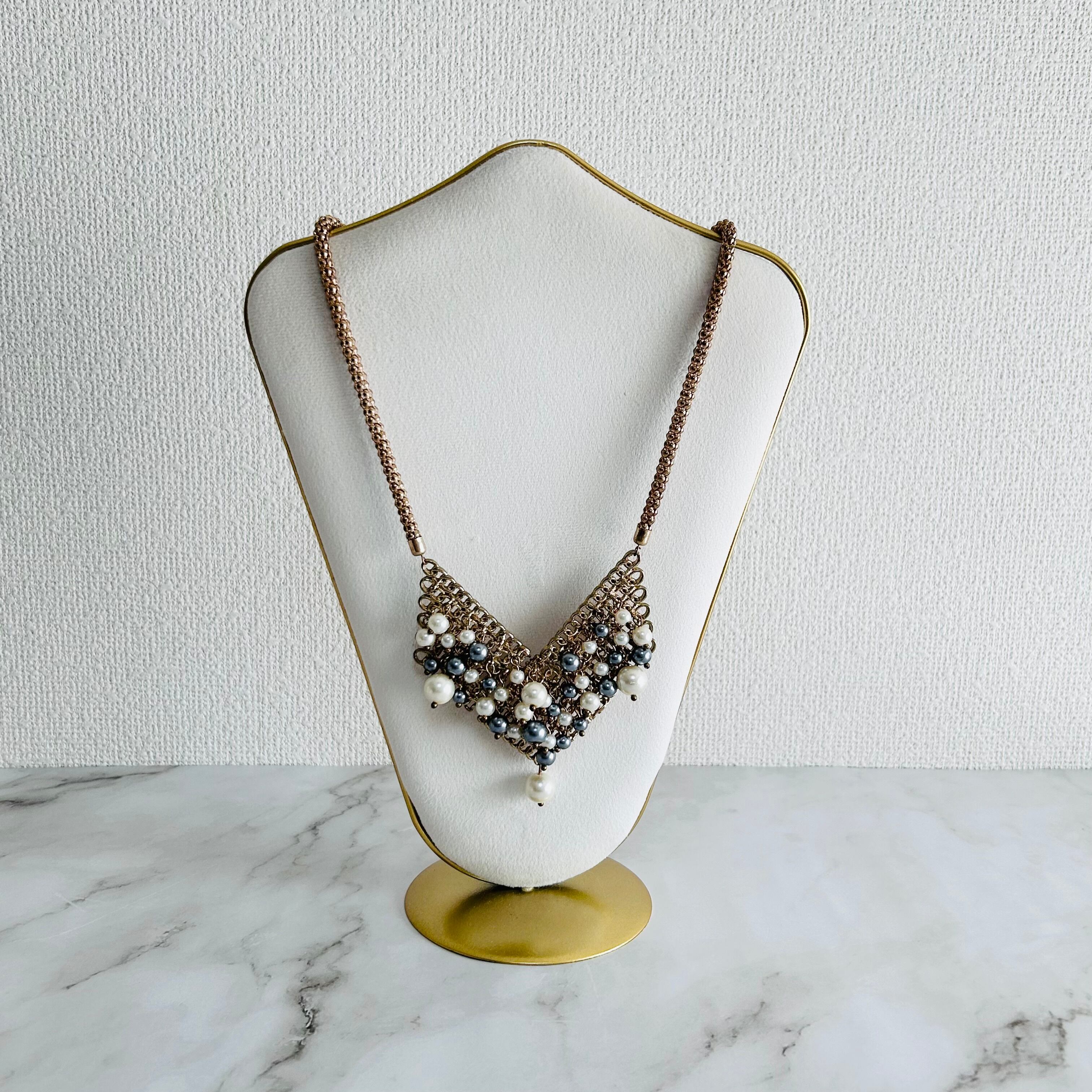 シンプルなニットや無地のワンピースに合わせると、ネックレスのデザインが引き立ち、装い全体がぐっと華やかに!