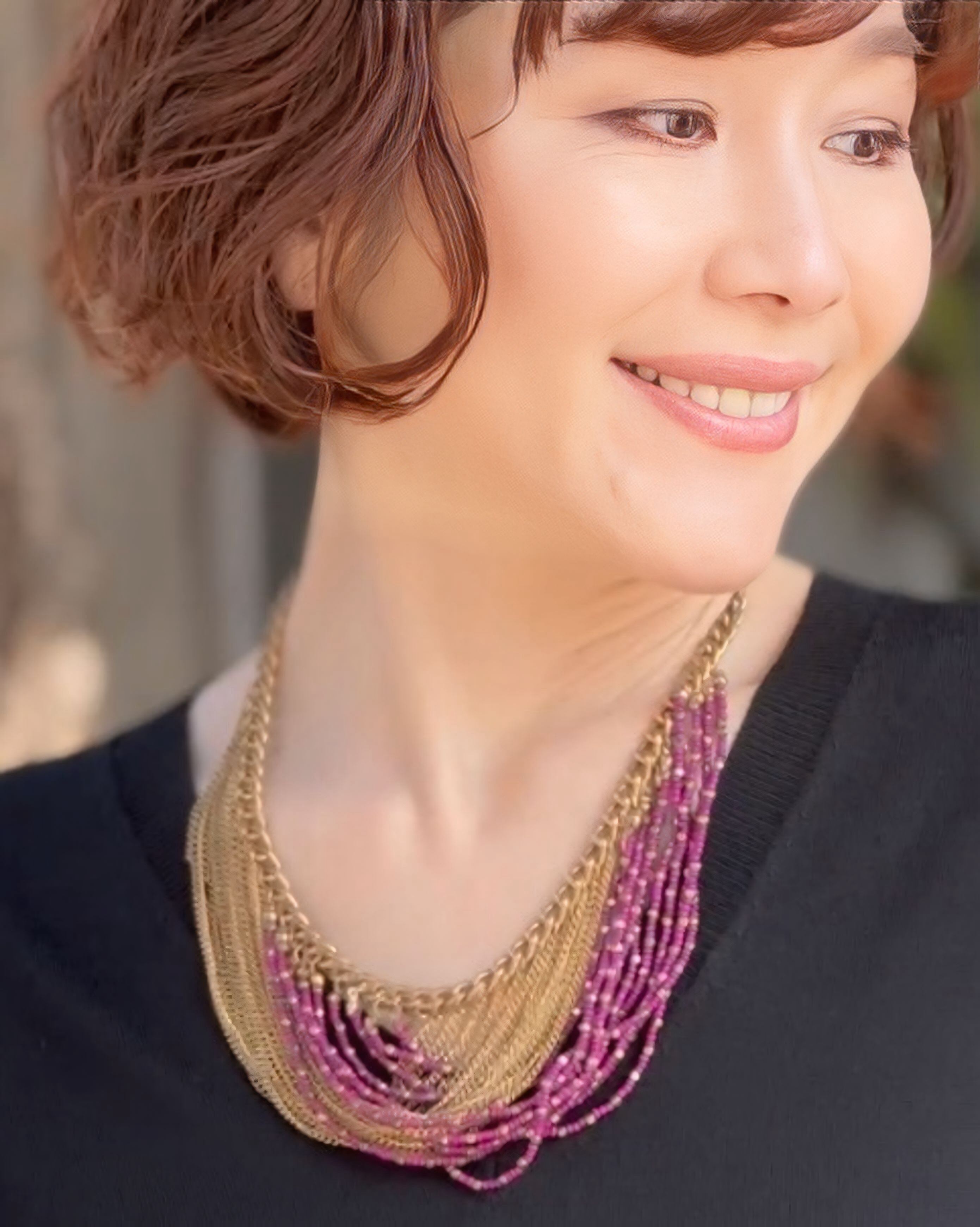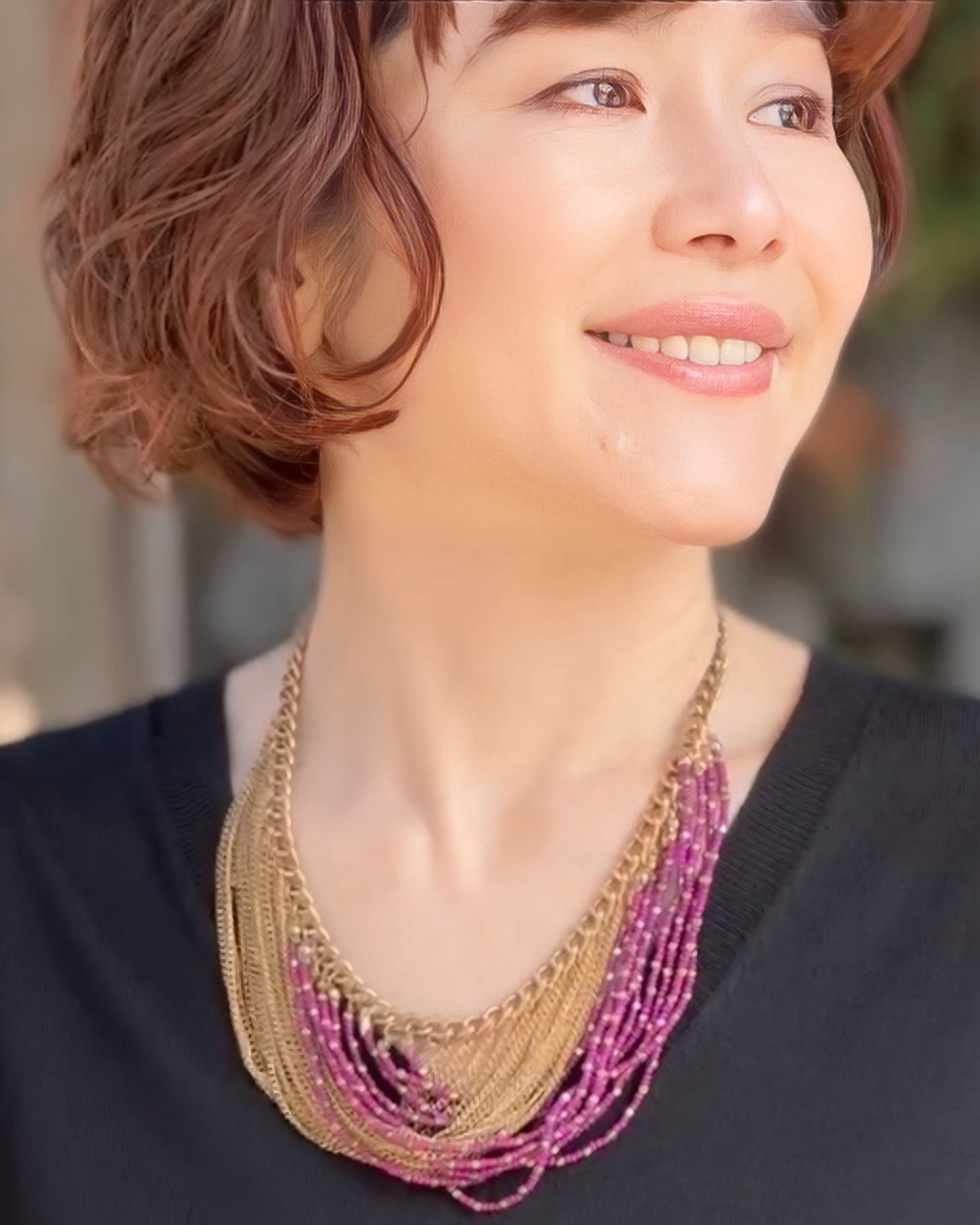 また、ワンピースやブラウススタイルに添えれば、アクセサリーが主役となり、洗練された大人の印象に仕上がります。