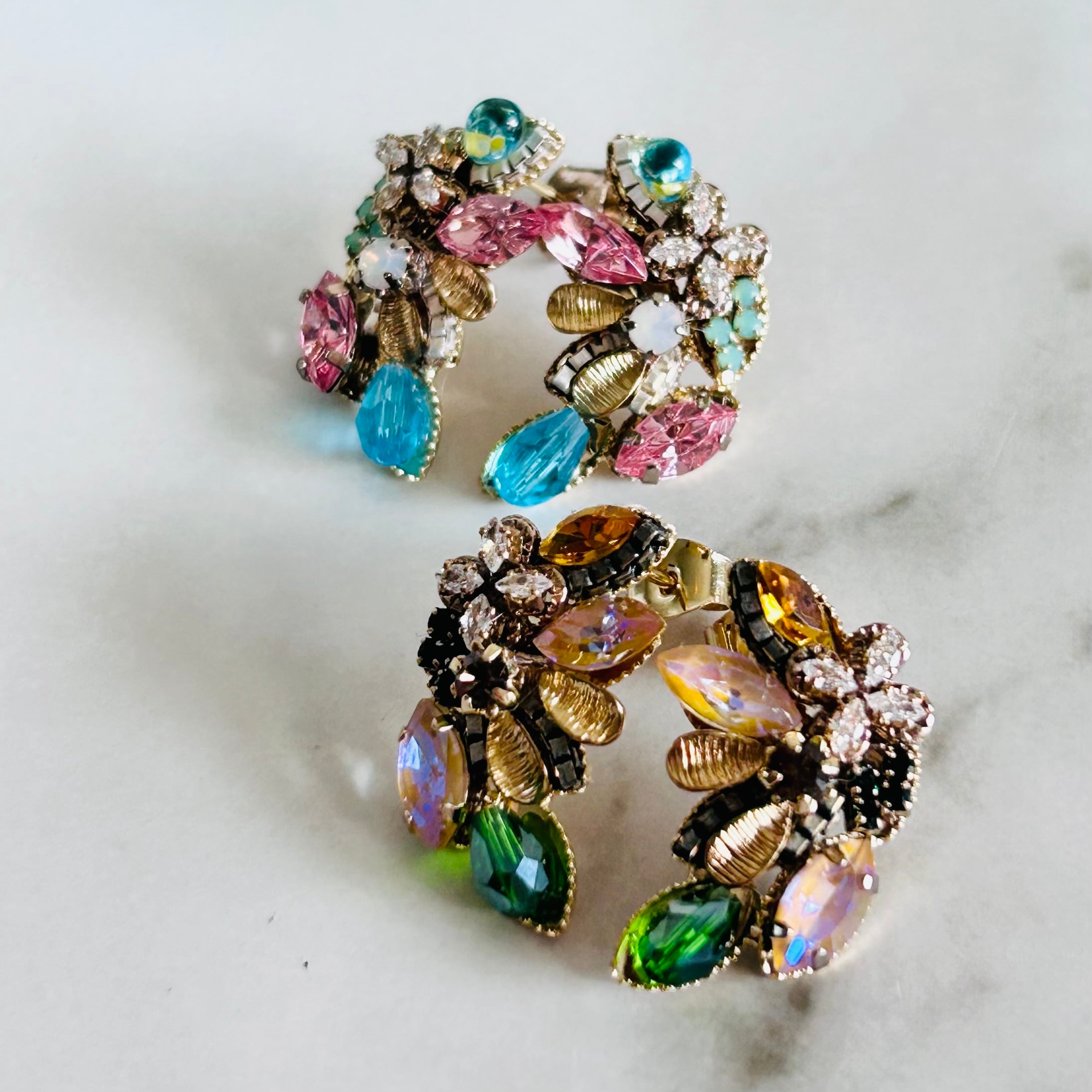 繊細なクリスタルを贅沢に重ね、立体的に仕上げた存在感のあるピアス・イヤリングです。
