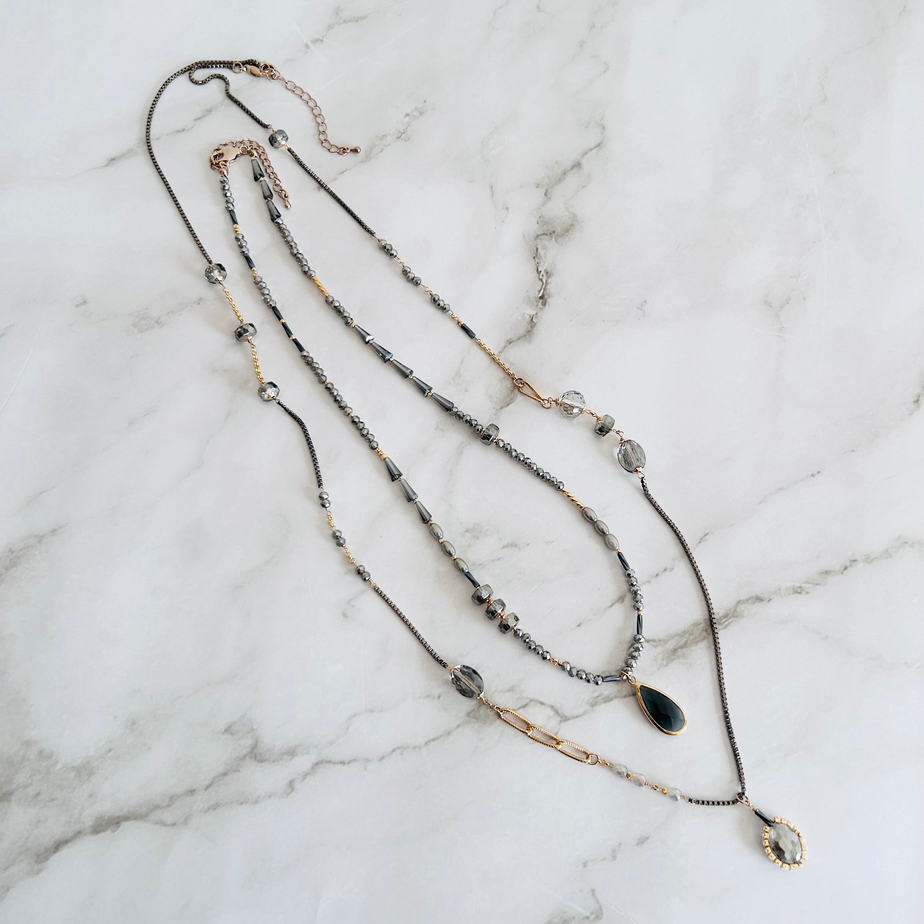 落ち着きの中に可愛らしい煌めきを忍ばせた、大人の余裕を感じさせるネックレスのセットです。