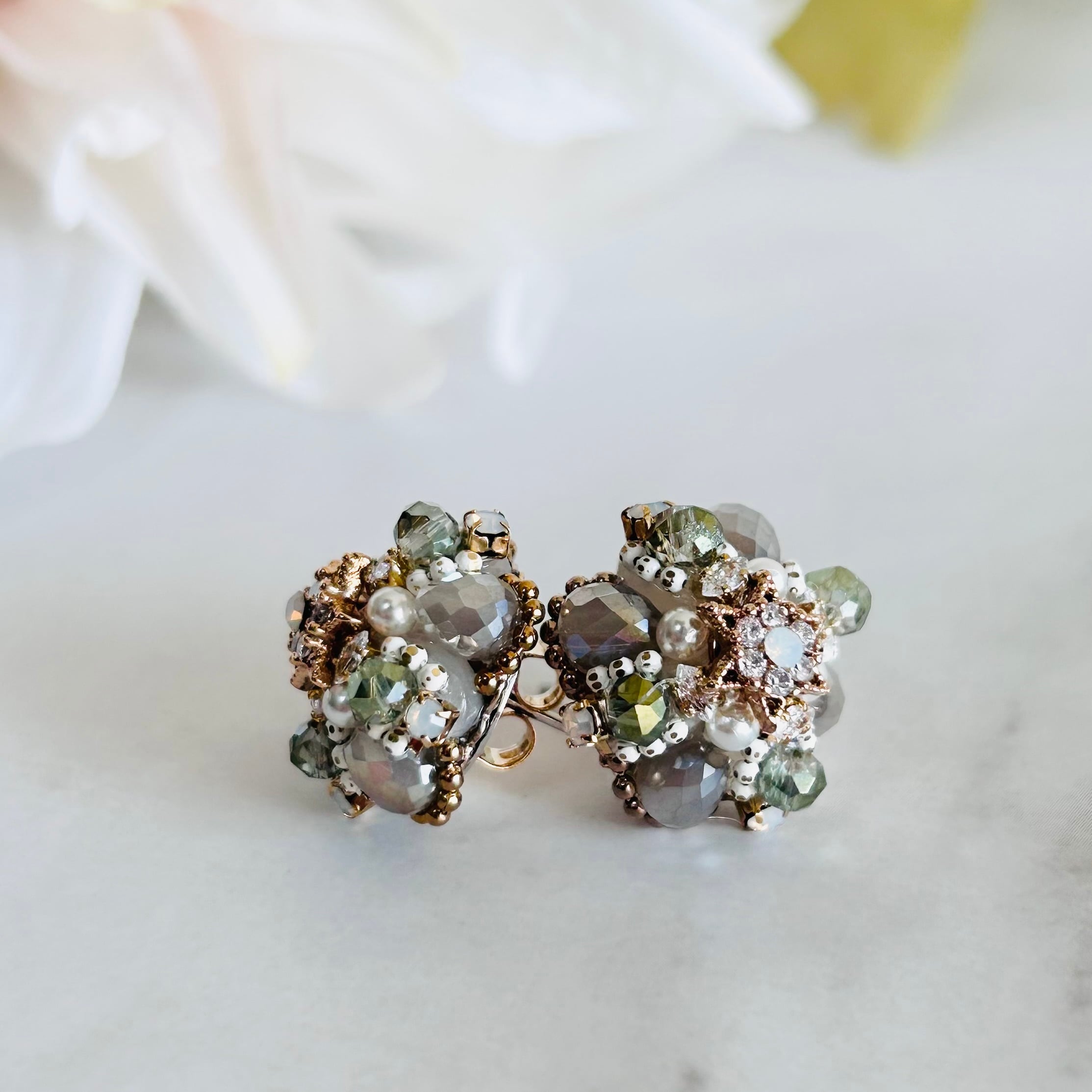 繊細なクリスタルとパールを上品にあしらった、華やかな輝きが印象的なピアス・イヤリングです。