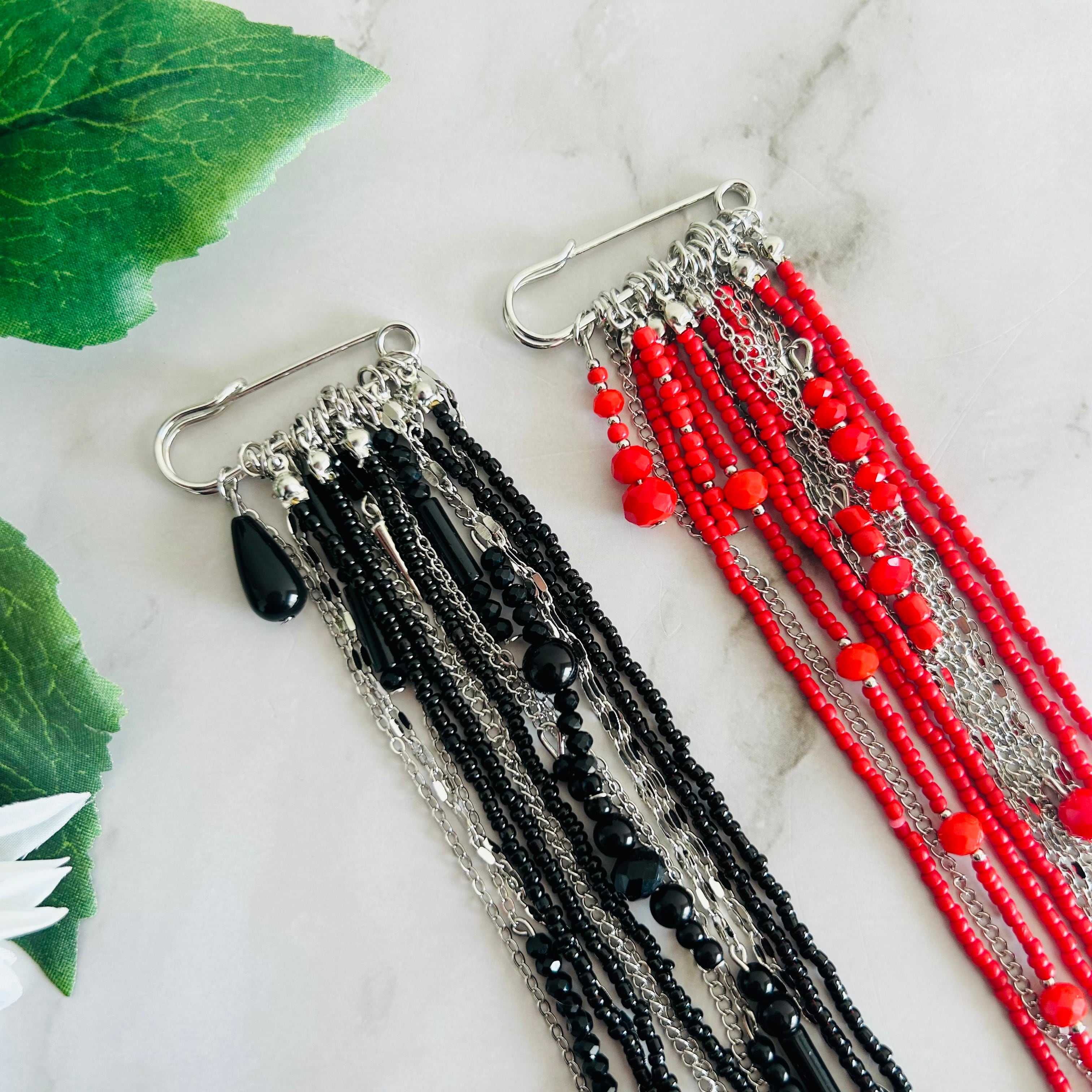 ブラックとレッド、それぞれ異なる表情を楽しめるフリンジタイプのブローチです。
