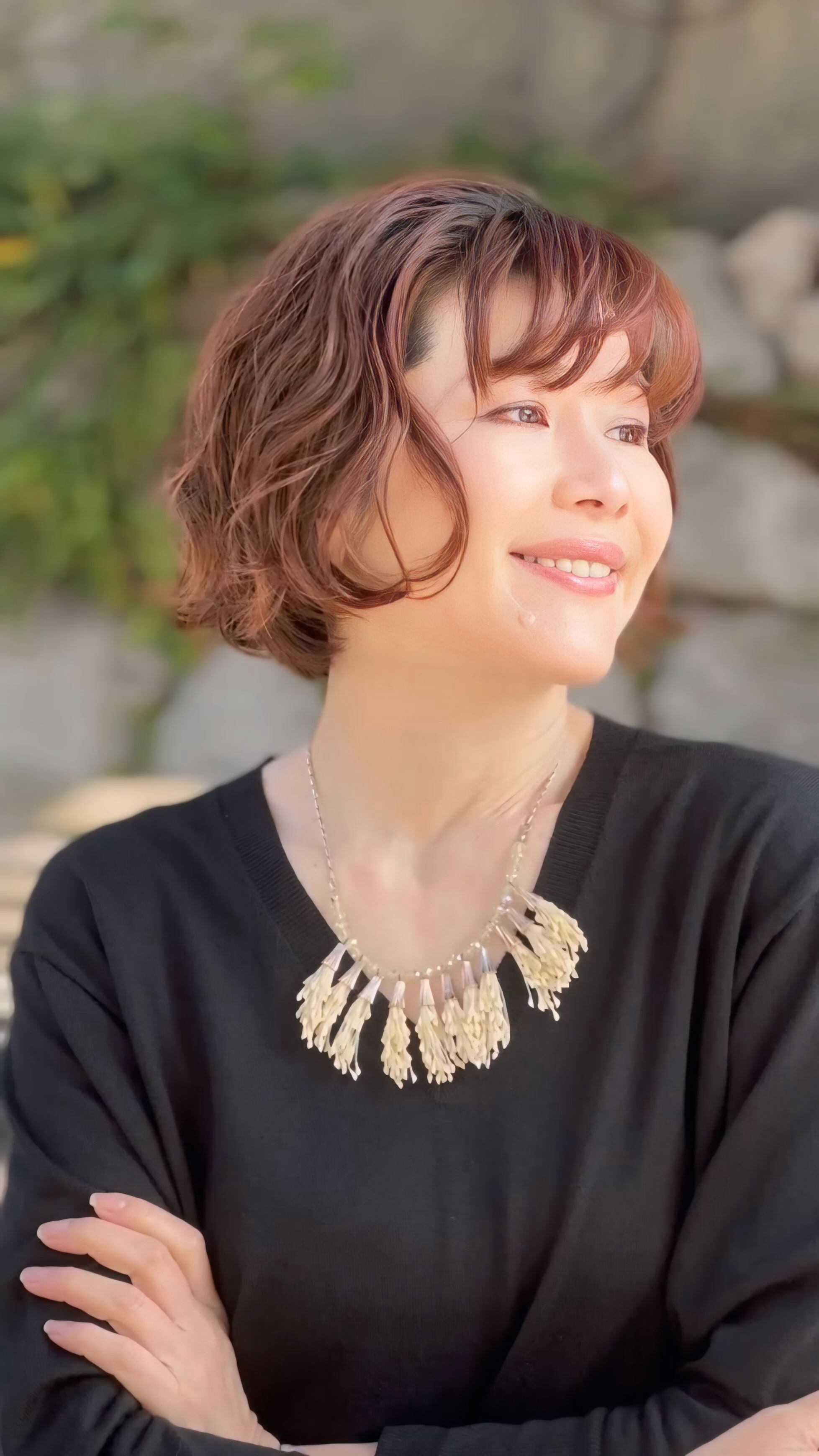 淡く透明感のあるビーズが、光を受けてさりげなくきらめき、首元に柔らかな明るさを添えてくれます。