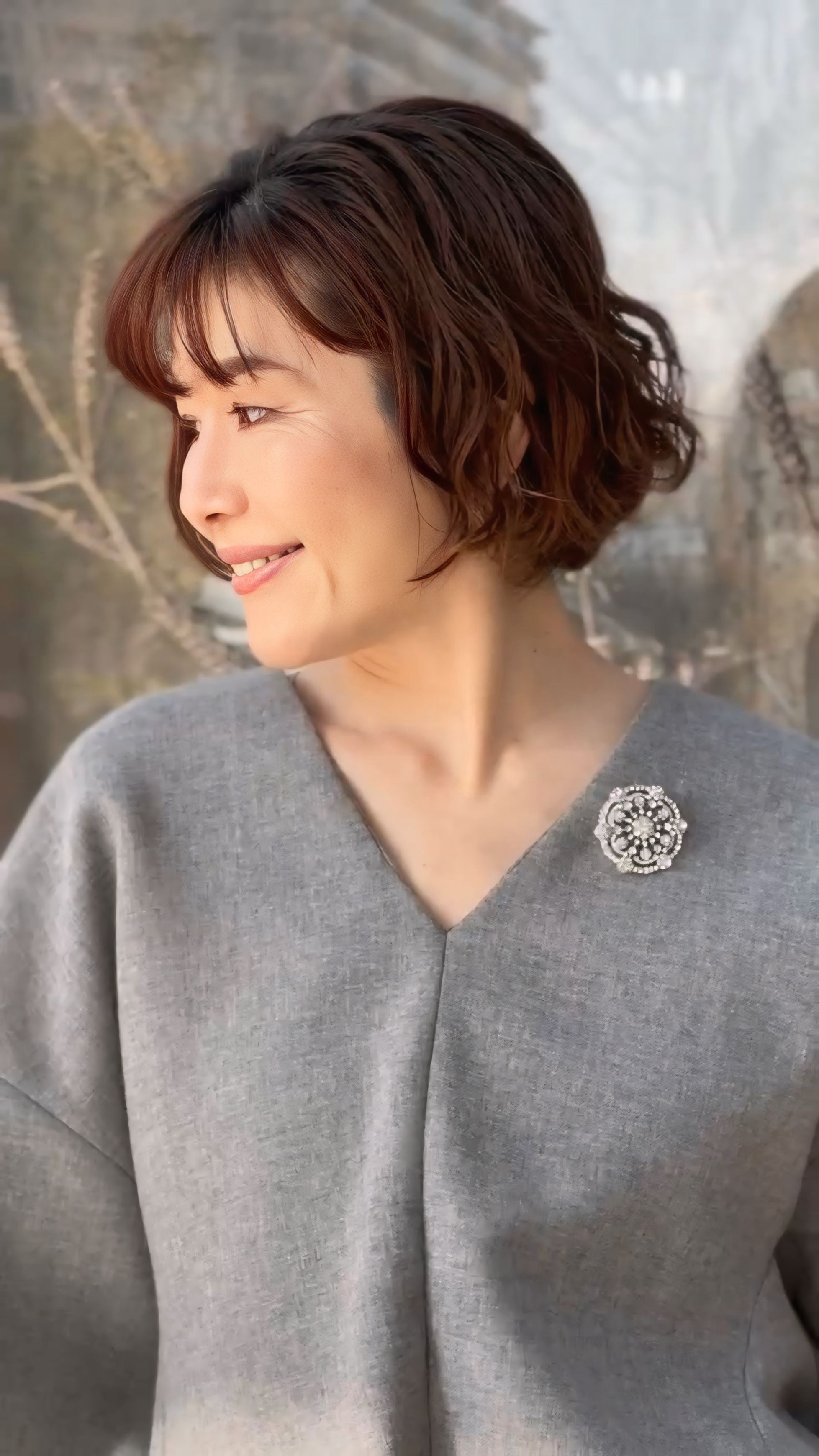 ベージュやグレーのニットに合わせれば、上品で洗練された華やぎをプラスします。