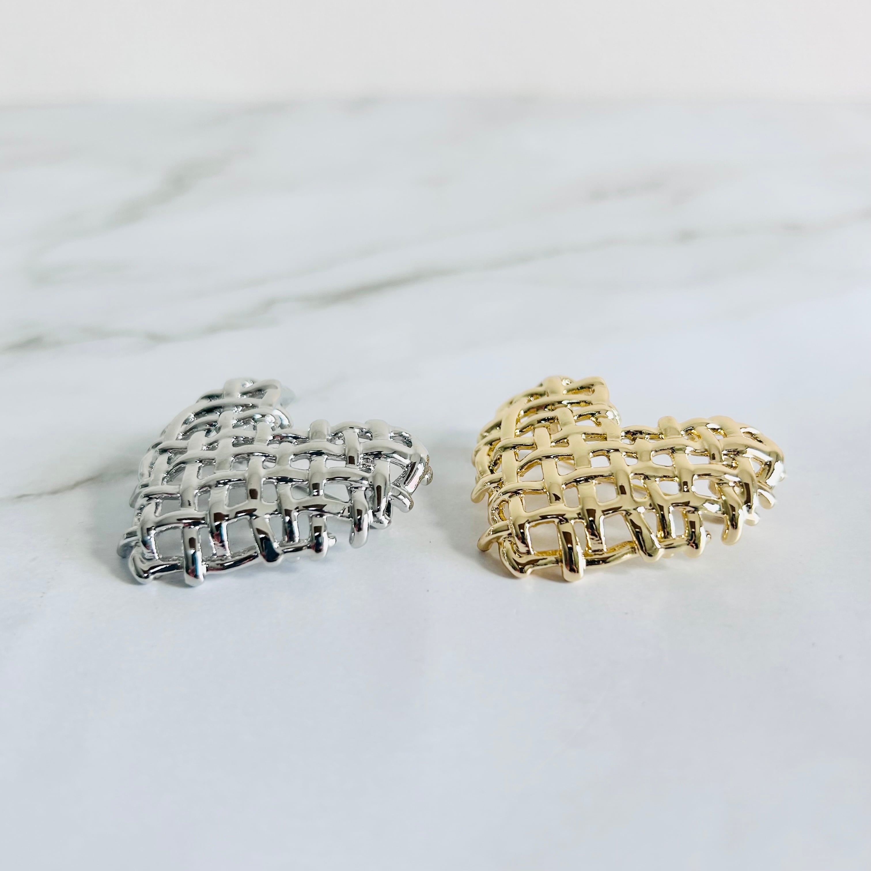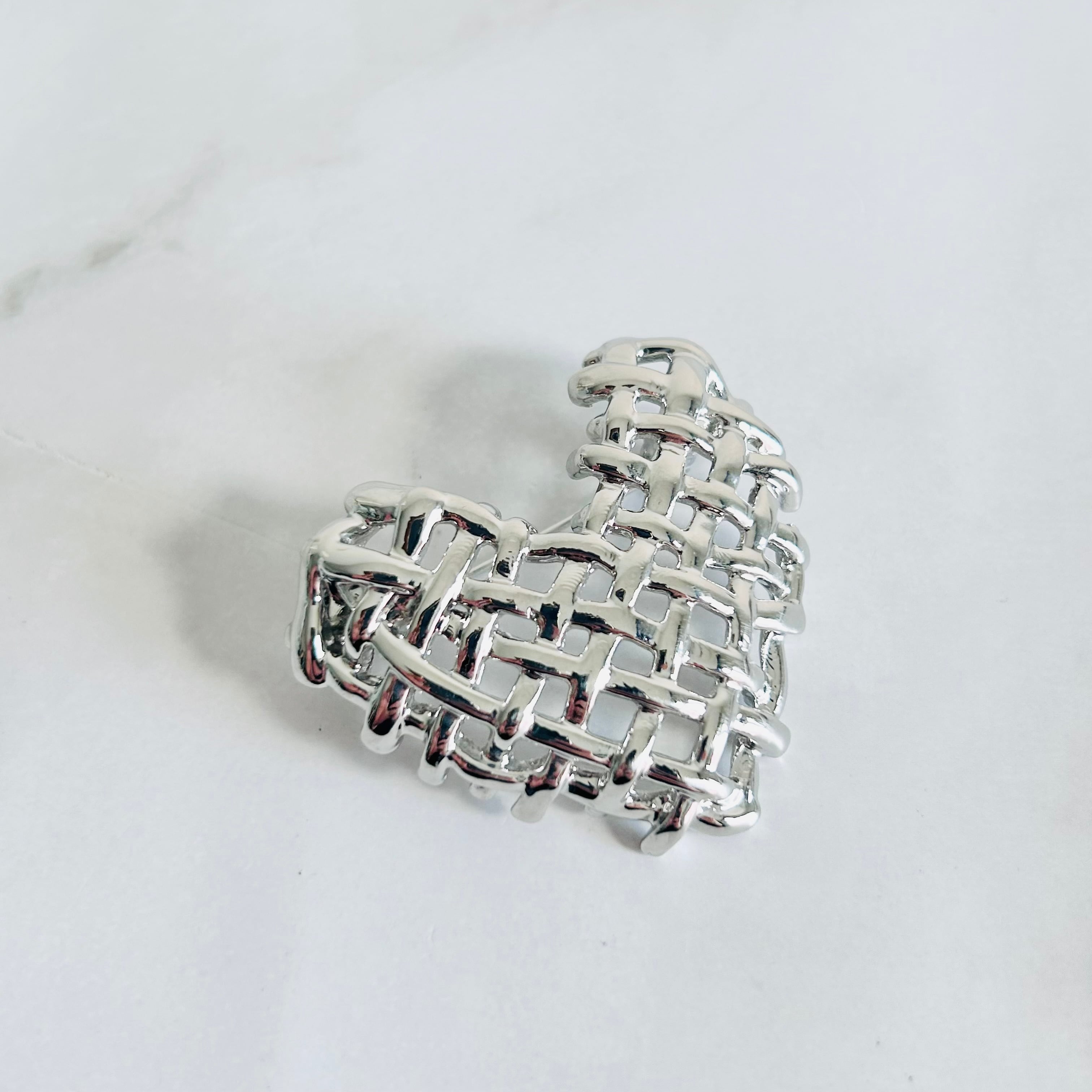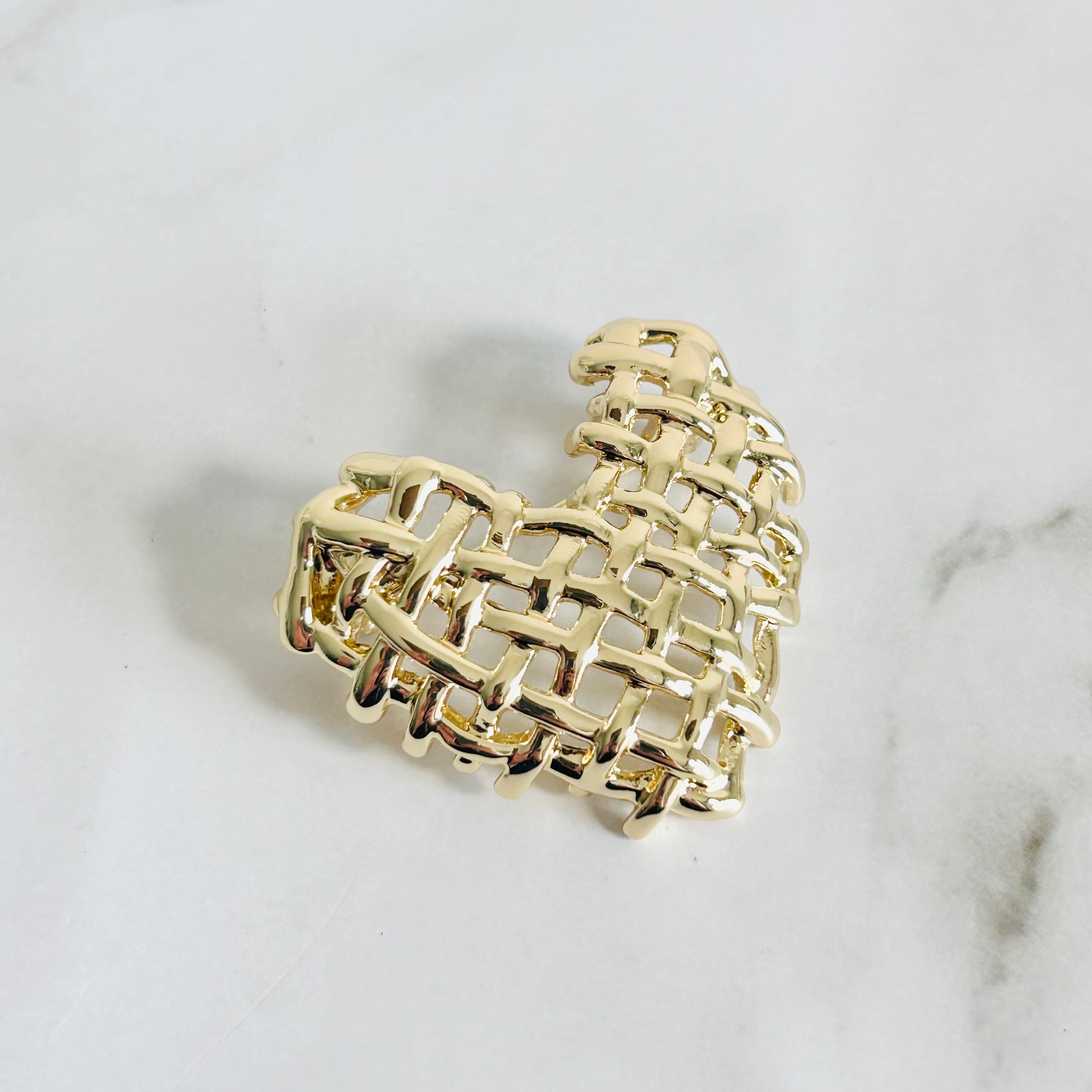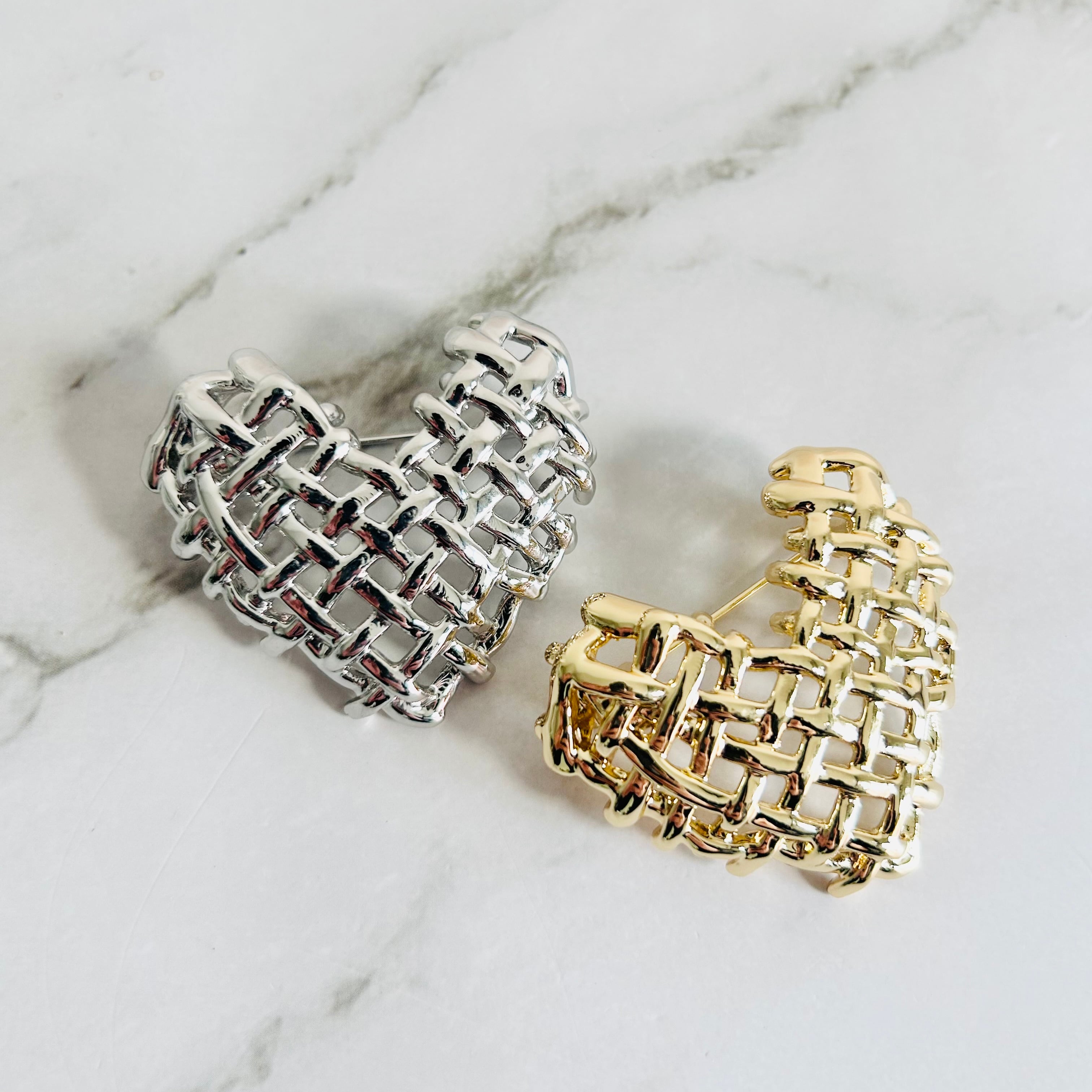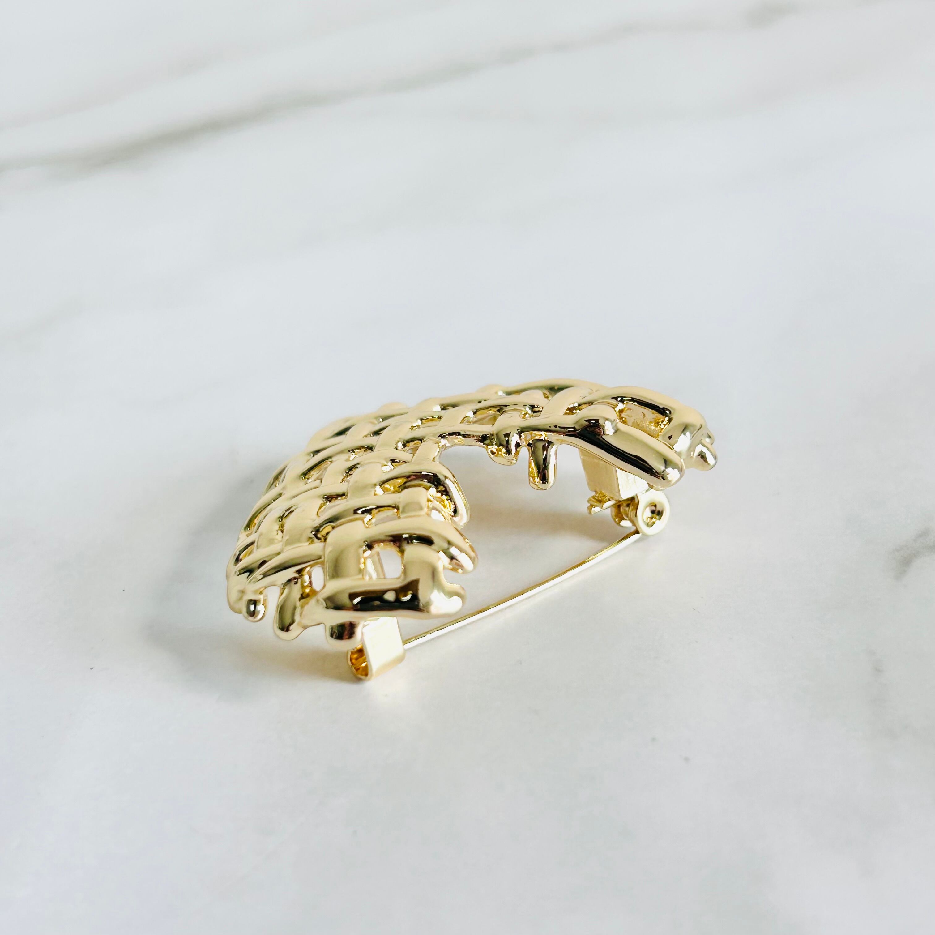 編み込まれたような立体的なメッシュデザインが印象的なブローチです。