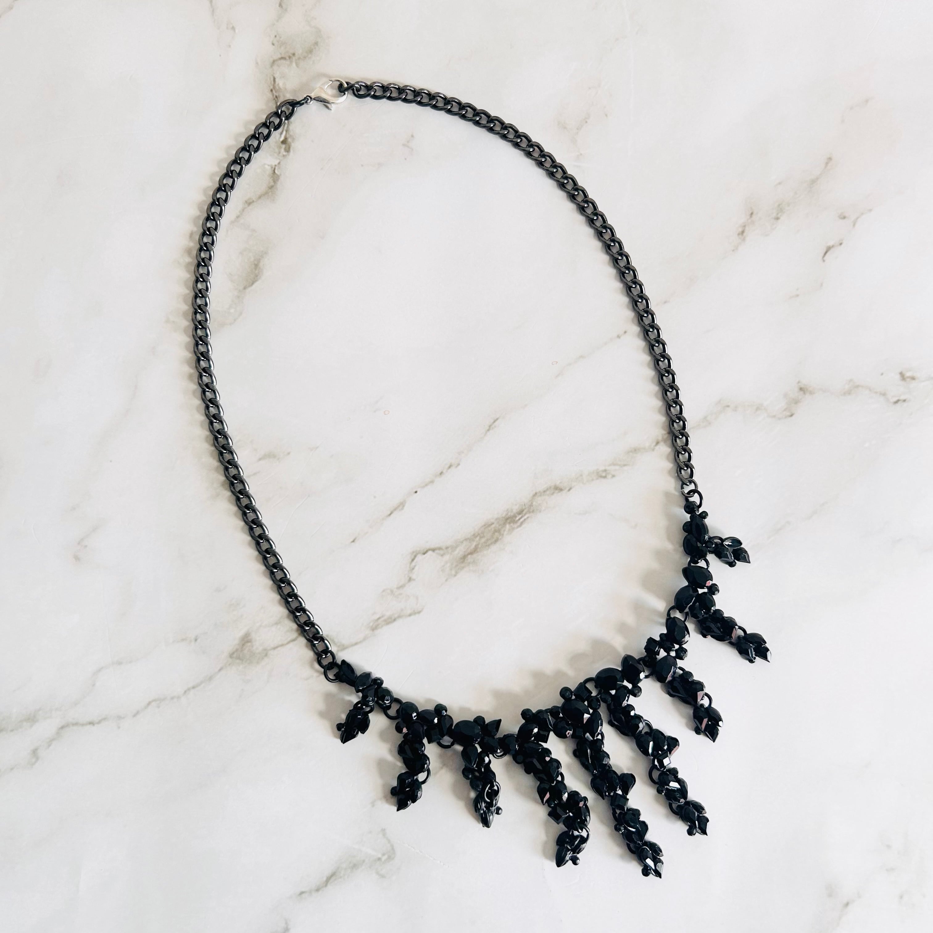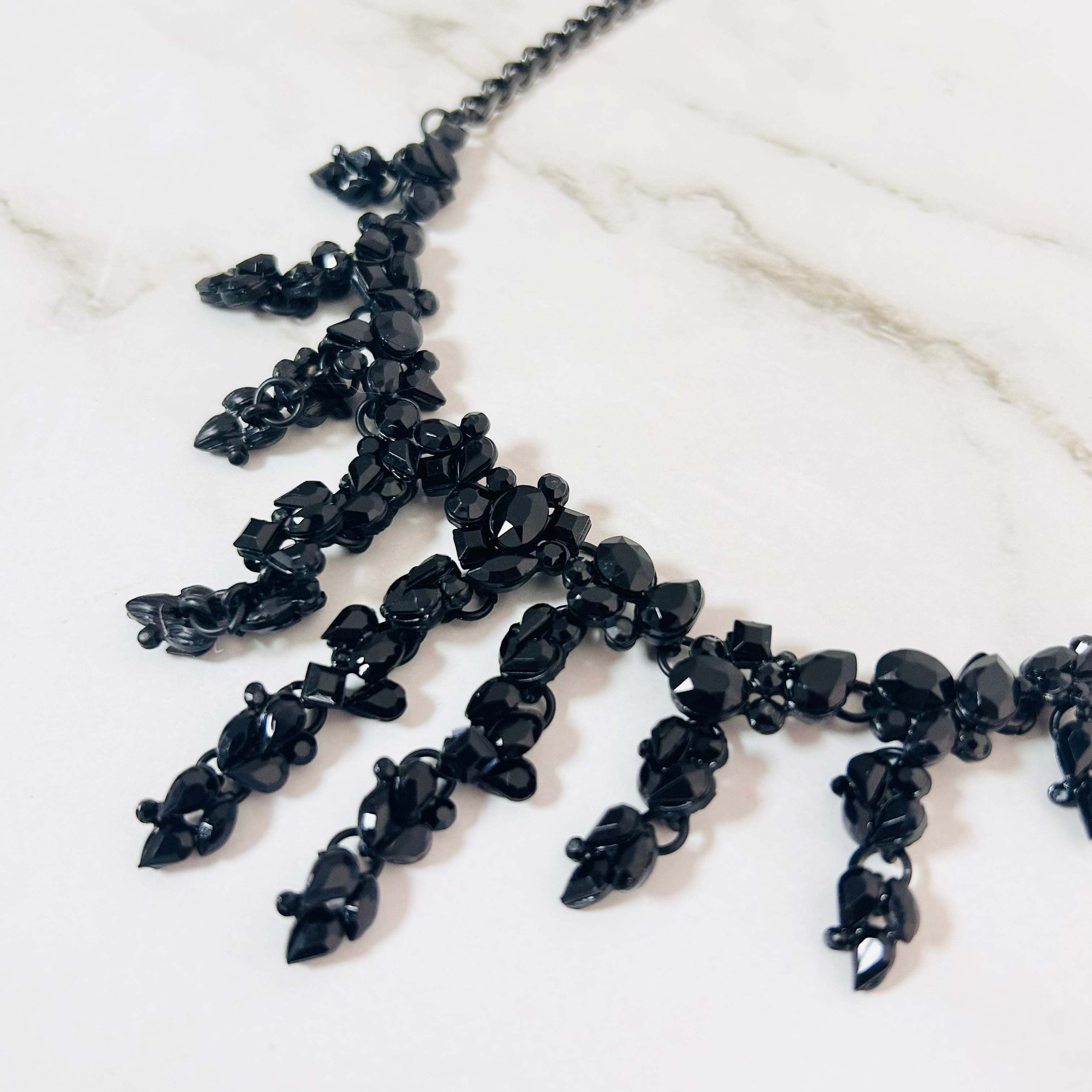 シックなブラックチェーンに、揺れるカットビーズのモチーフを贅沢にあしらったネックレスです。