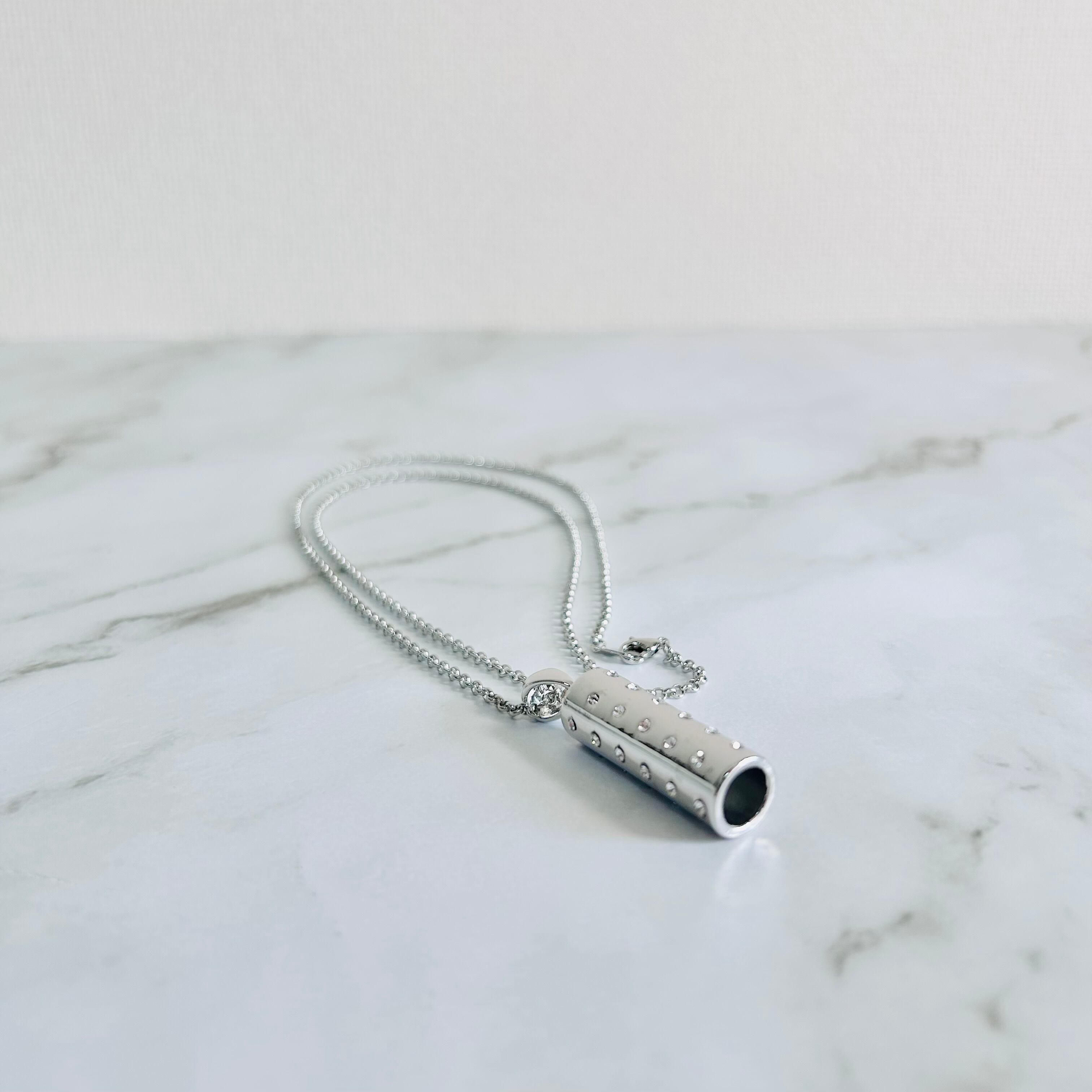 静かなきらめきが、装いに洗練をもたらすロングネックレスです。